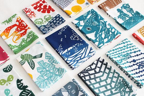 katakataの手ぬぐいは動物、昆虫、植物、風景など日常生活の中で感じられる事柄がモチーフ。