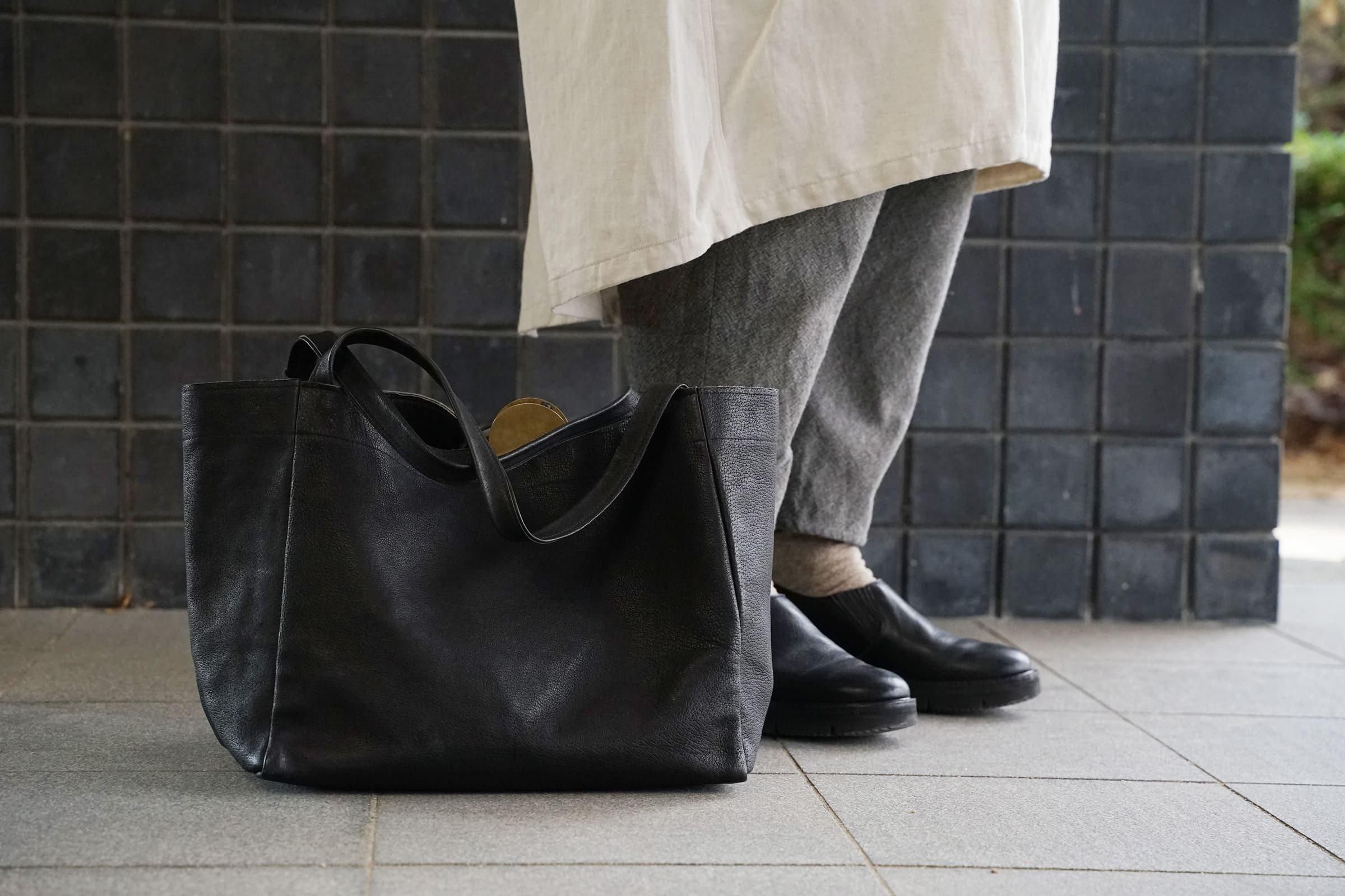 革本来の風合いを生かしたシンプルな形のバッグは、かろやかで持ちやすく、日々にやさしく寄り添います。