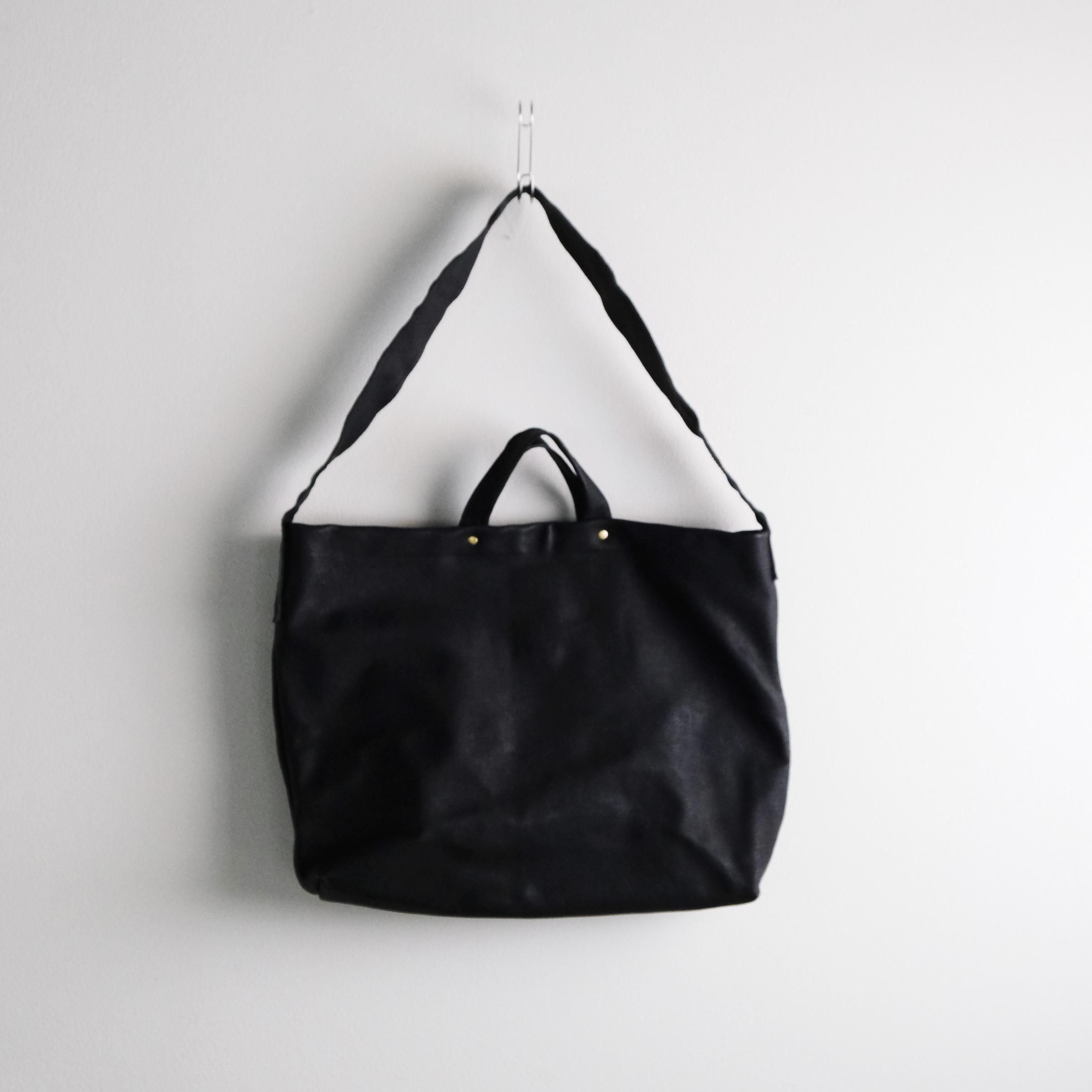 | サイズ | 縦 約35.0cm 横 約50.0cm マチ 約9.0cm 持ち手(短)約25.0cm(長)約84.0・ 重さ 約740g ※縫製後に洗う「製品洗い」を施しているため、仕上がりのサイズに誤差が生じます。予めご了承ください。 |