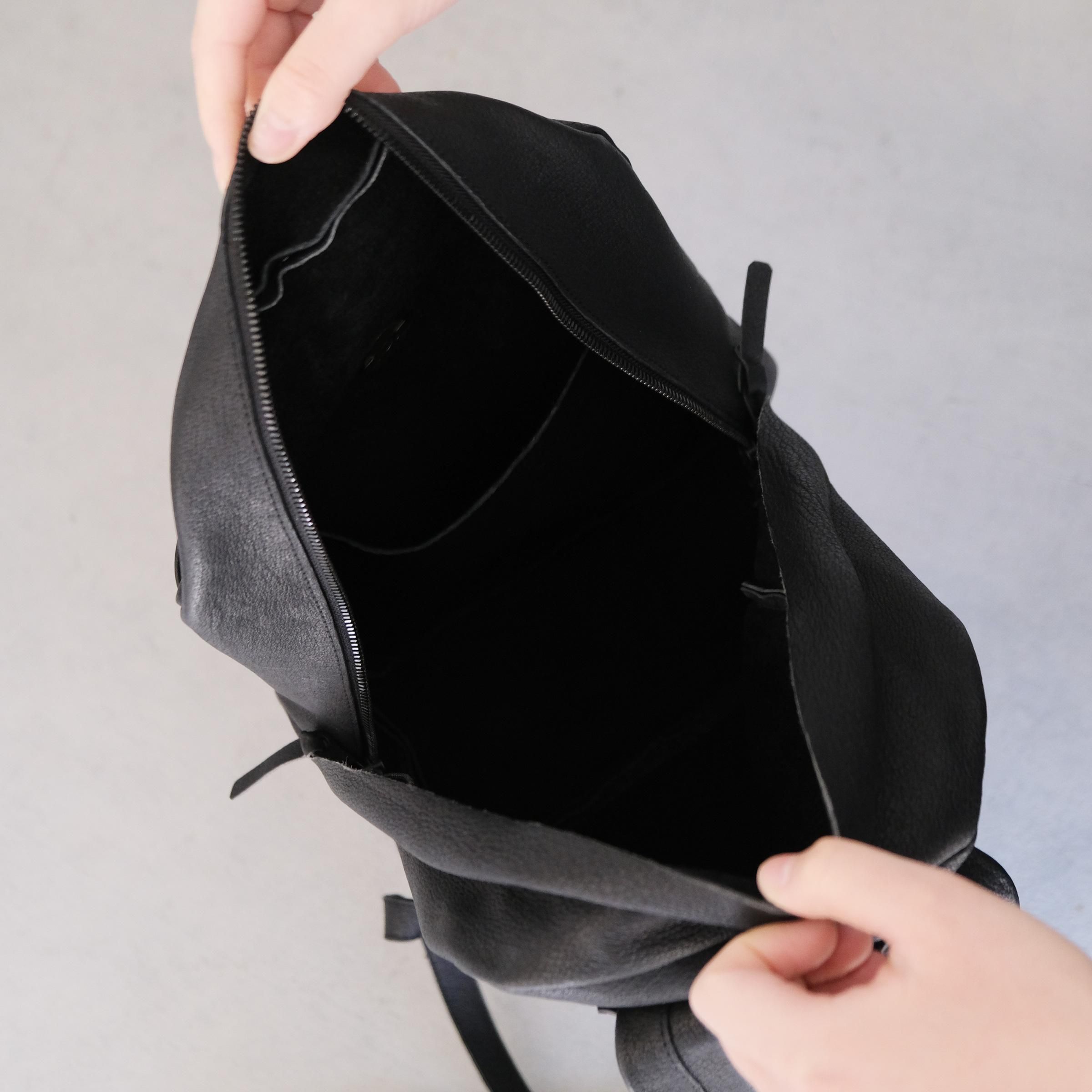 ファスナー箇所は、全てレザーでカバーされているので、洗練された印象に。