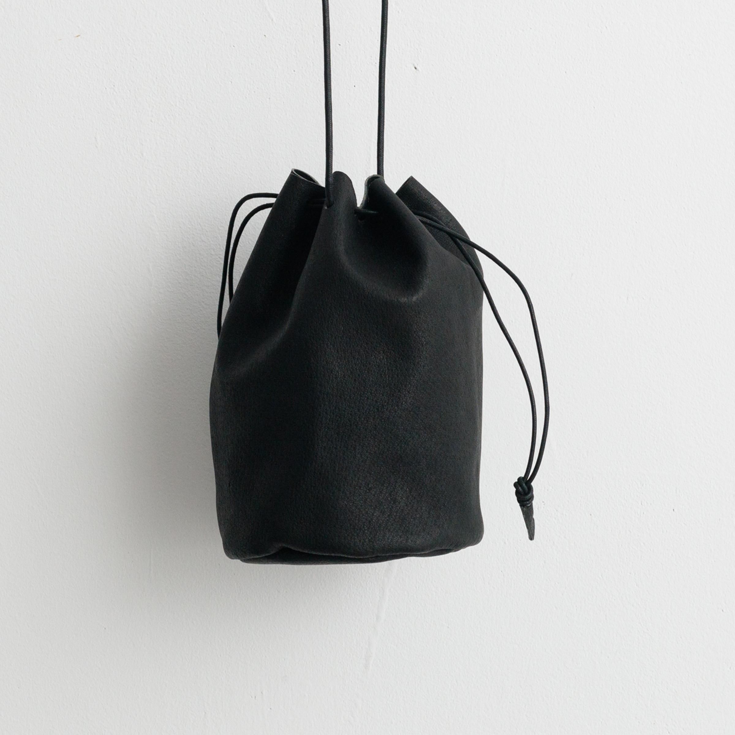 キュッと絞ったフォルムが愛らしい巾着タイプのミニバッグ。