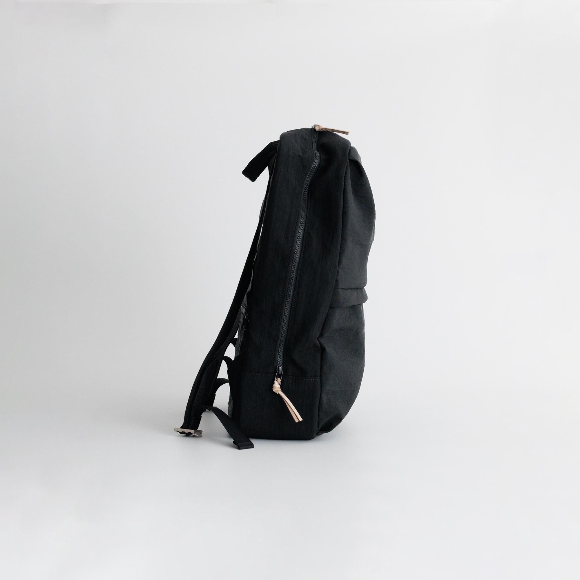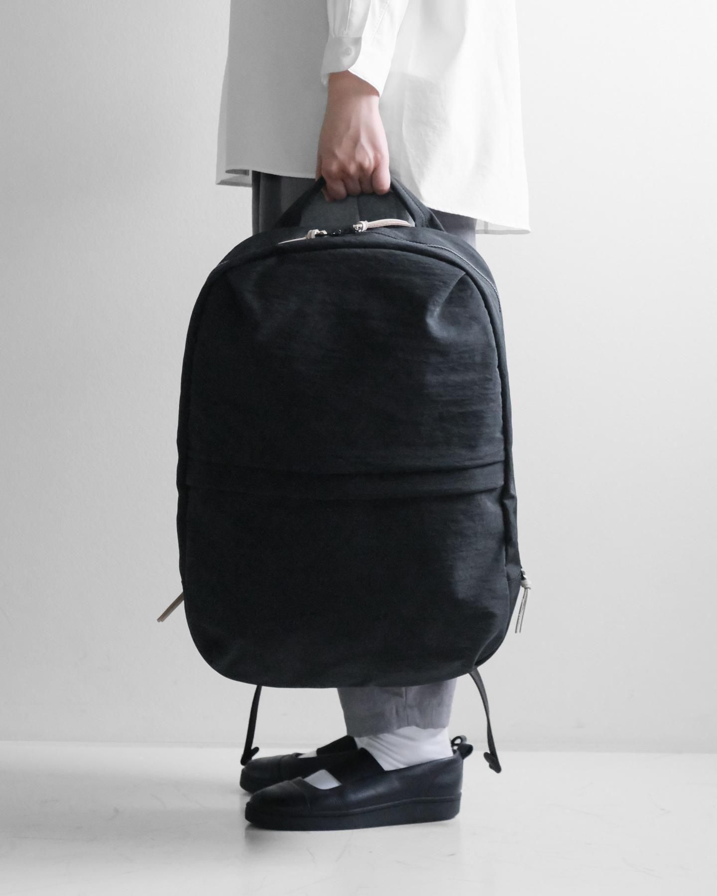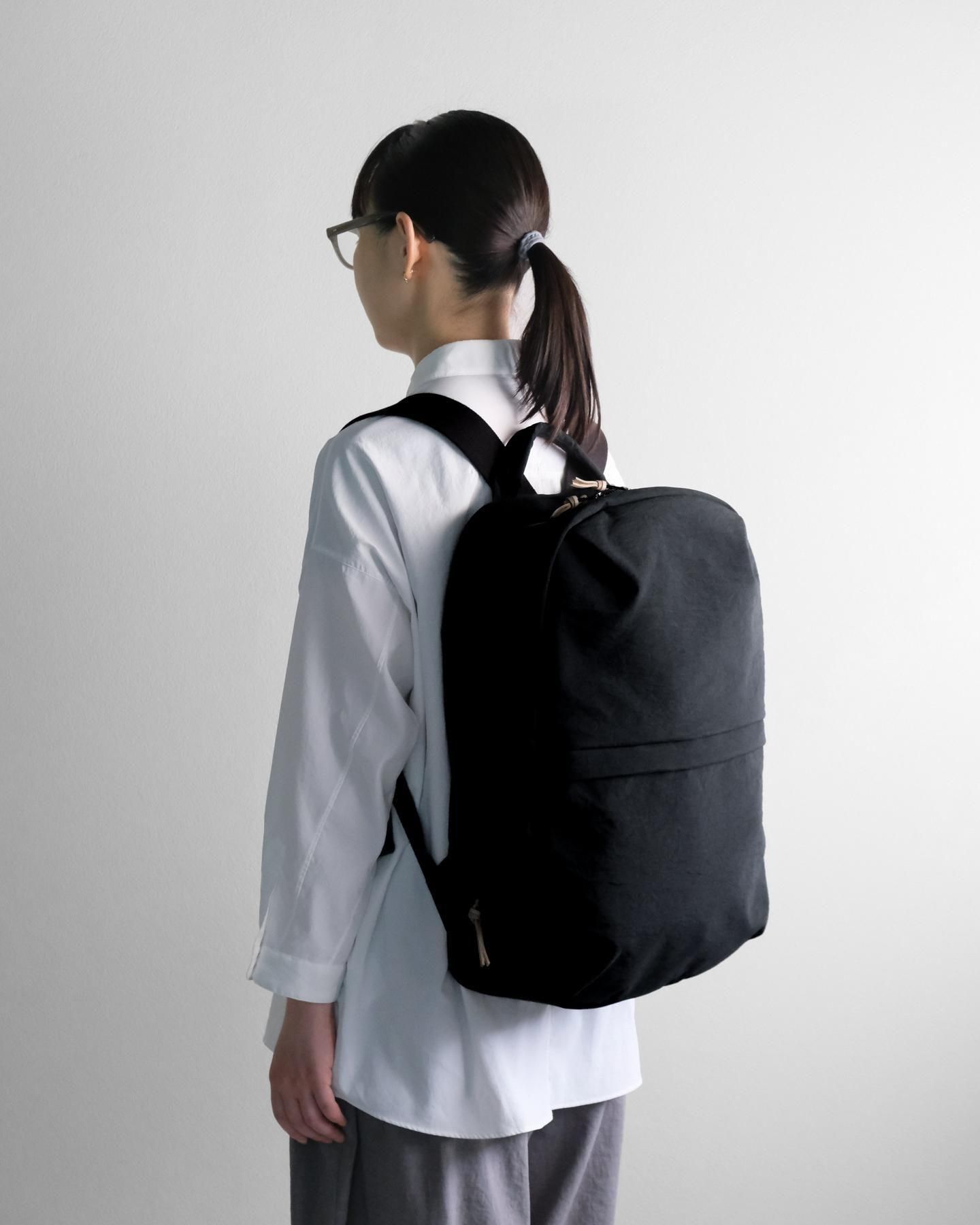 ふつうのナイロンの黒リュックとはひと味違います。 モノトーンコーデもカッコよくきまります。