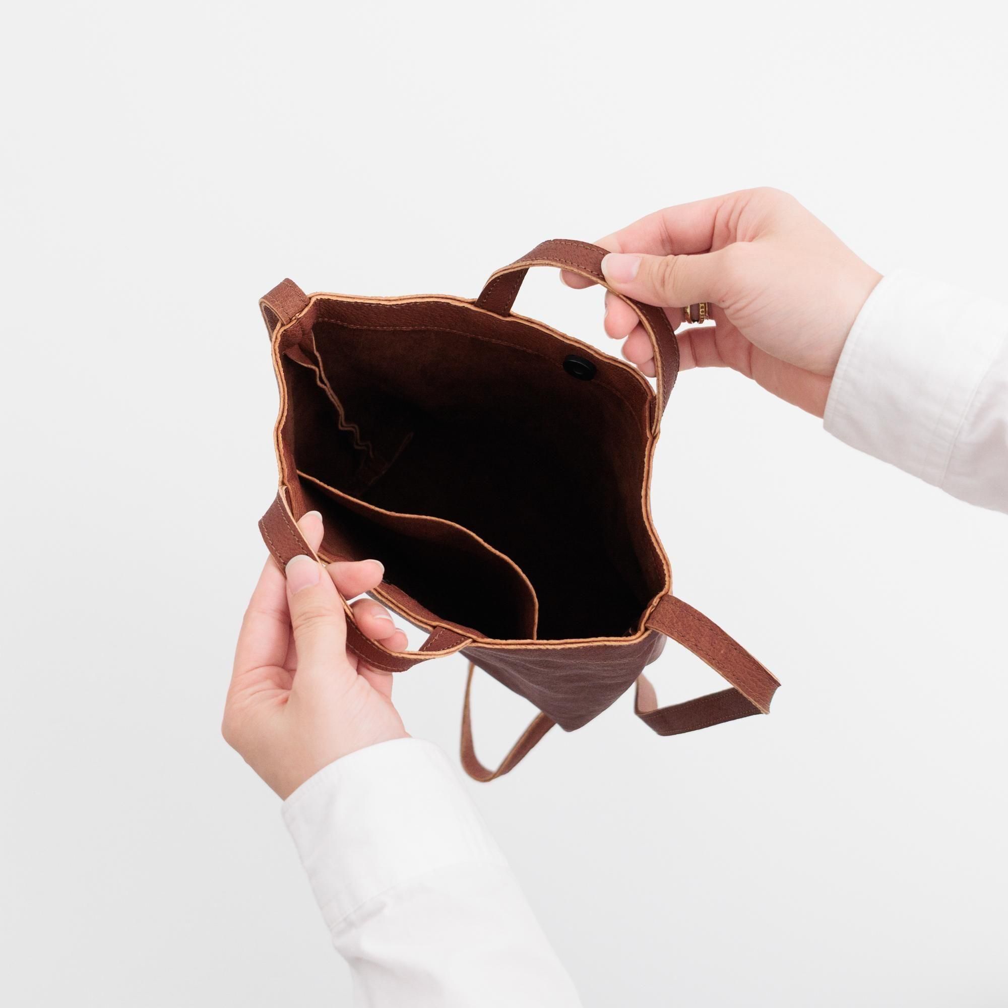 革本来の風合いを生かしたシンプルな形のバッグは、かろやかで持ちやすく、日々にやさしく寄り添います。