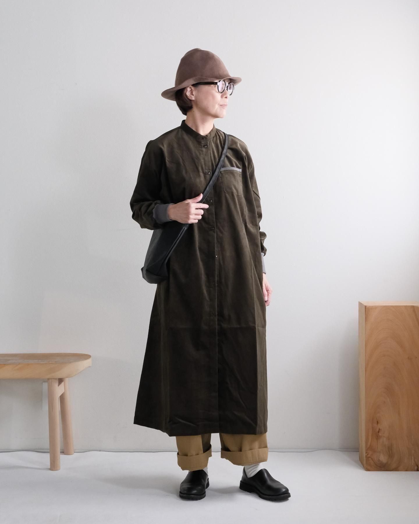 深みのあるダークトーンのカーキは、重くなりすぎずほどよく全体を引き締めてくれる絶妙なカラーです。