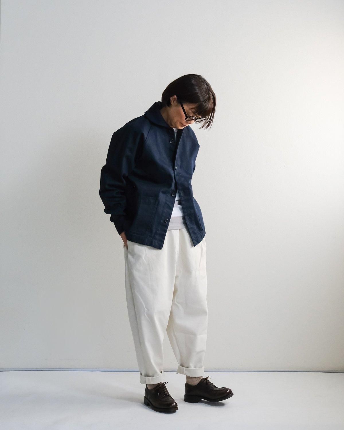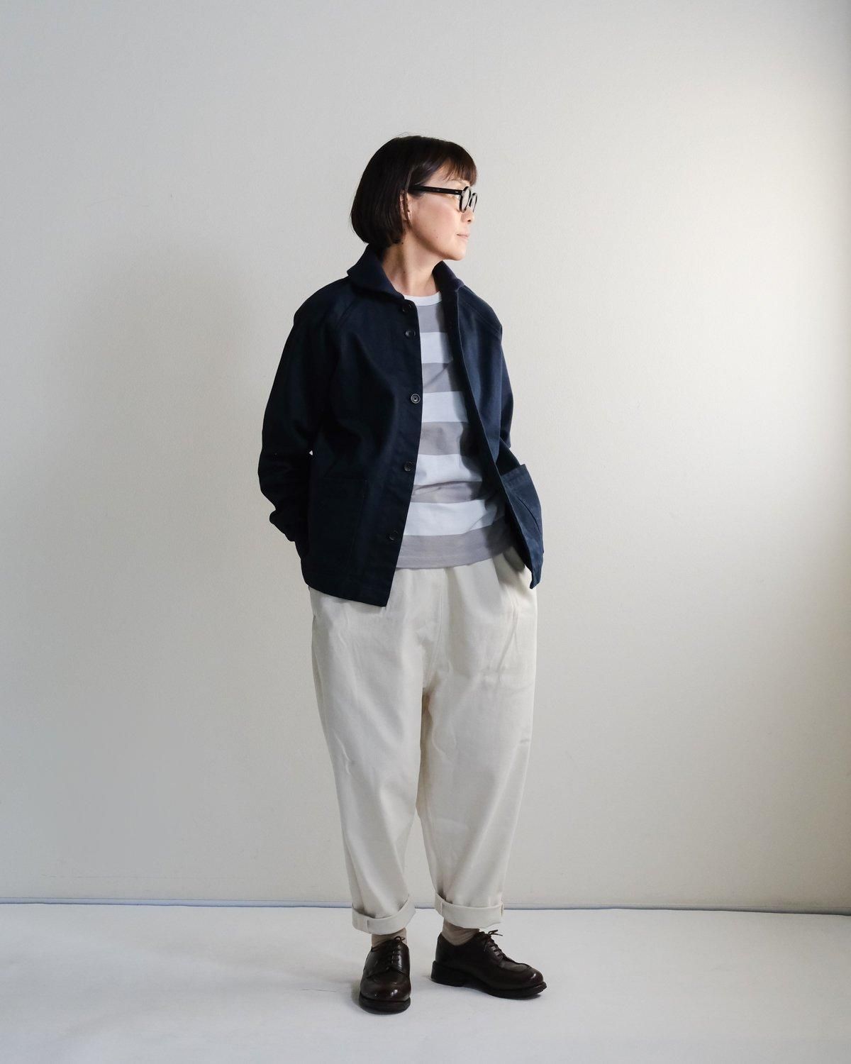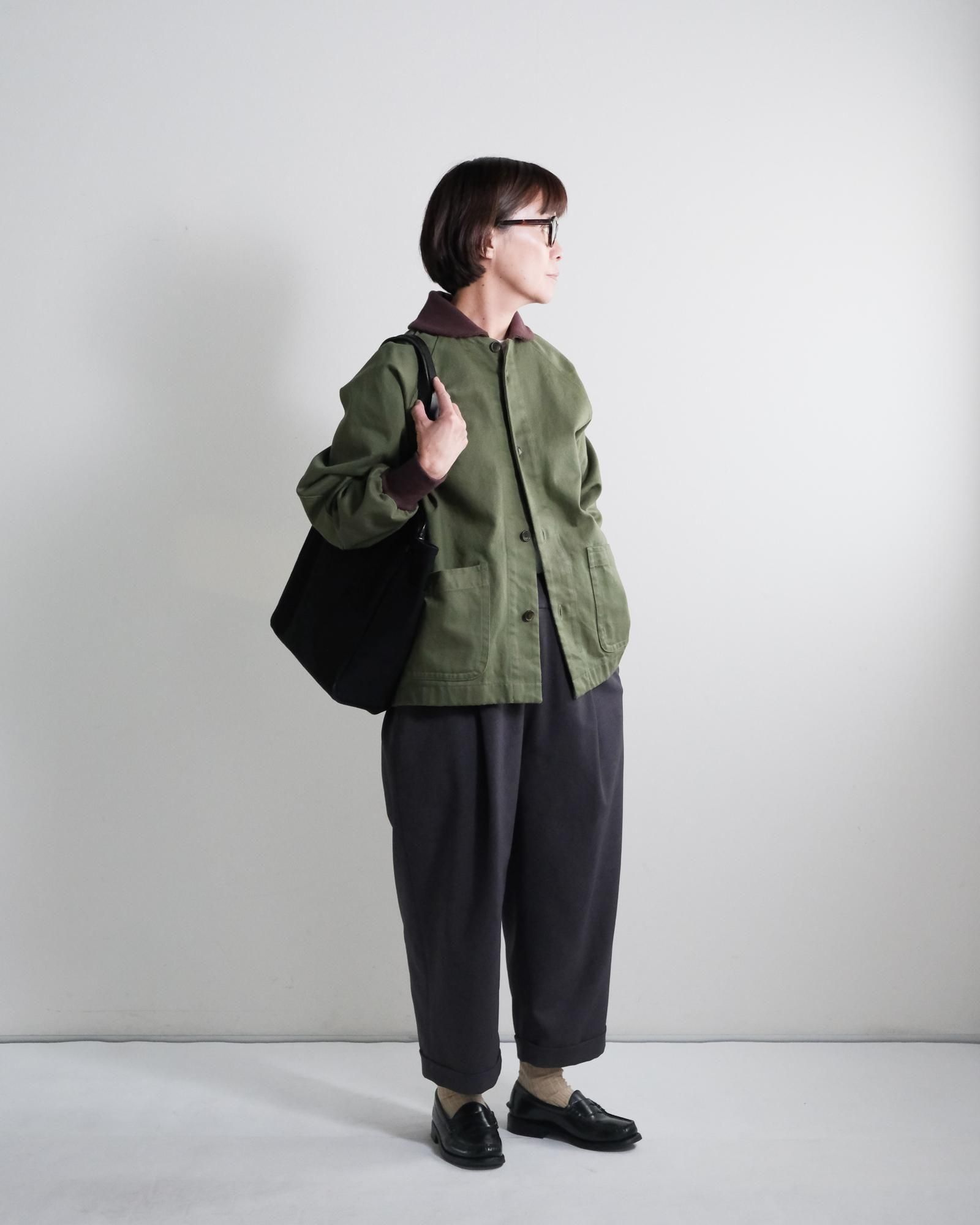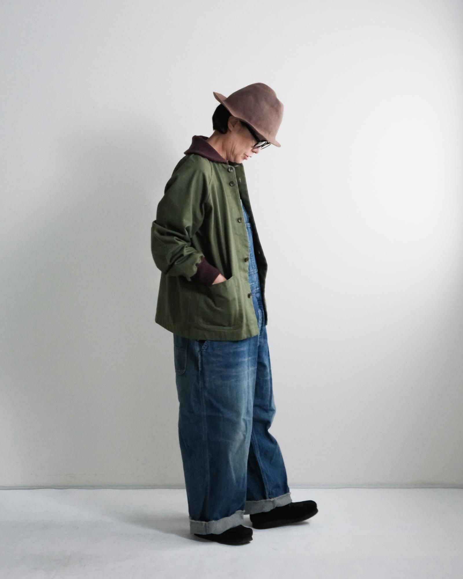クラシックなワークウェアのポイントがありつつも、やわらかな雰囲気もある絶妙なバランス。