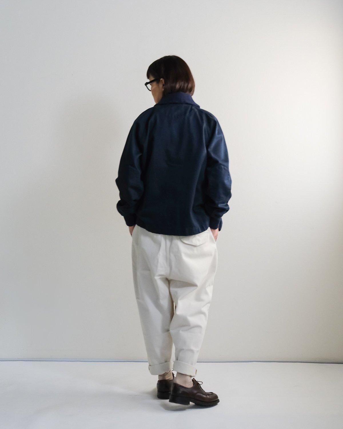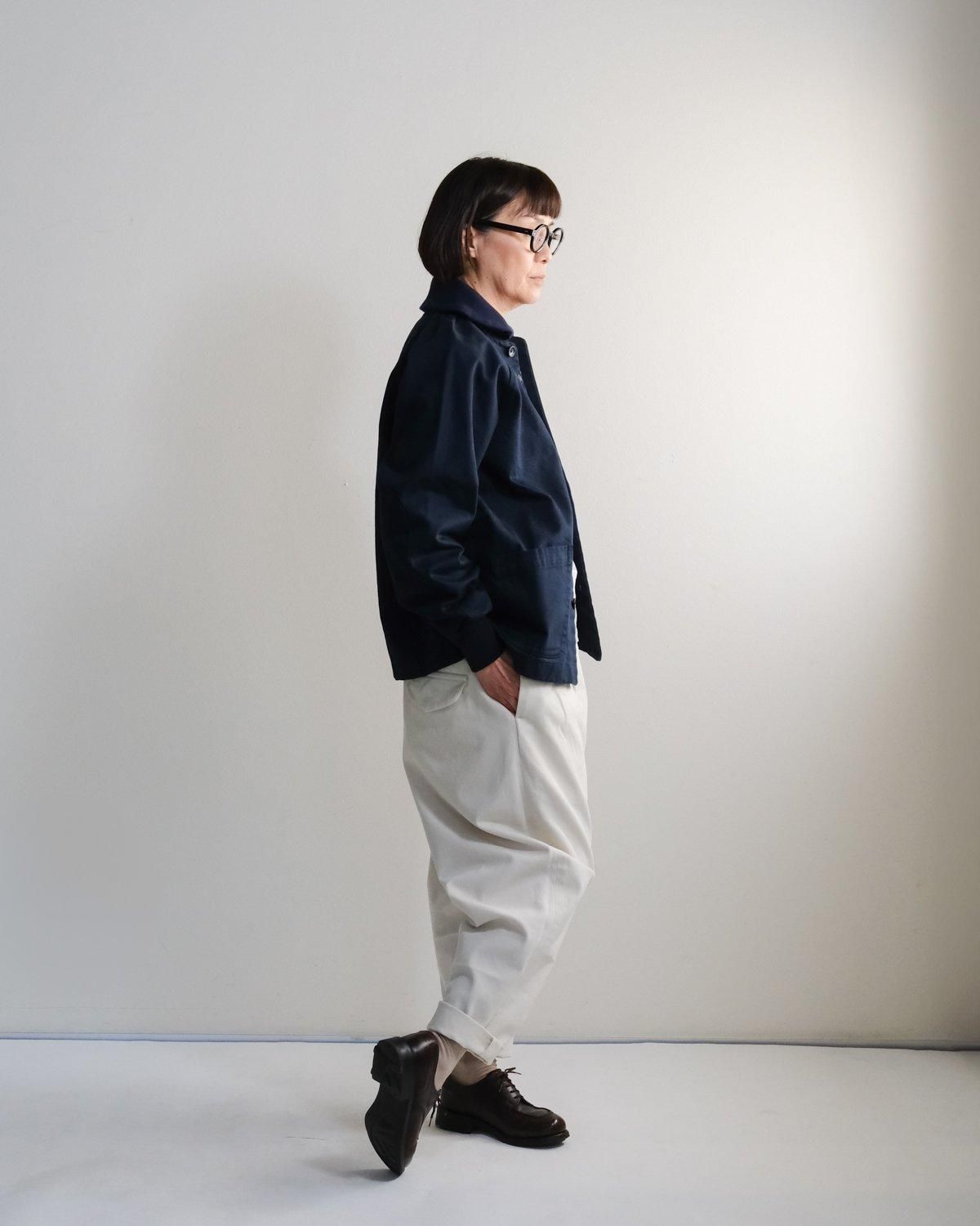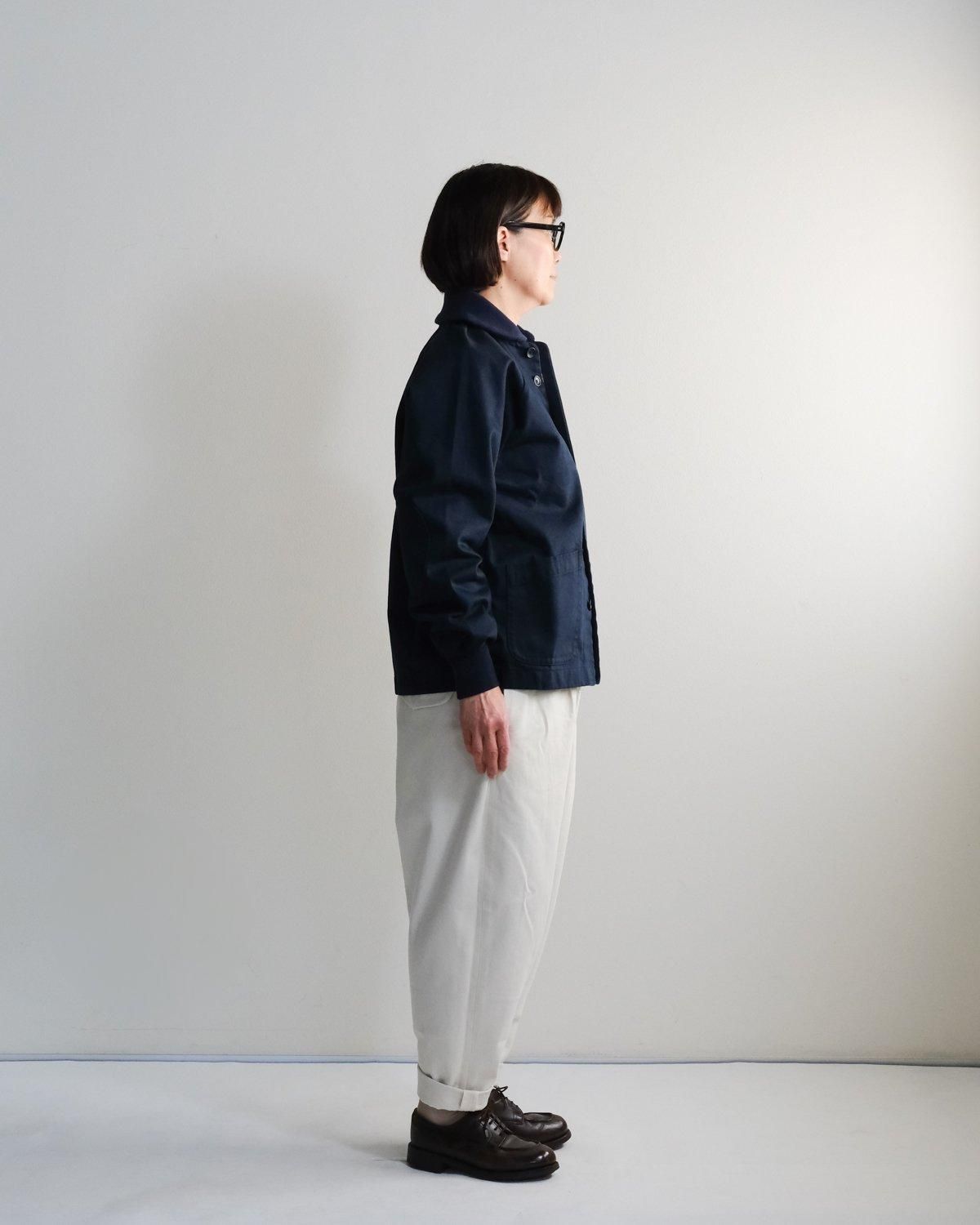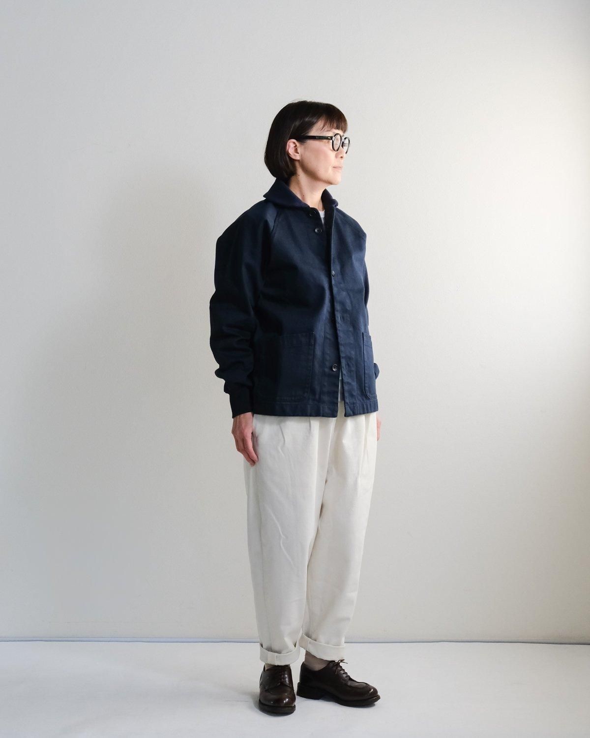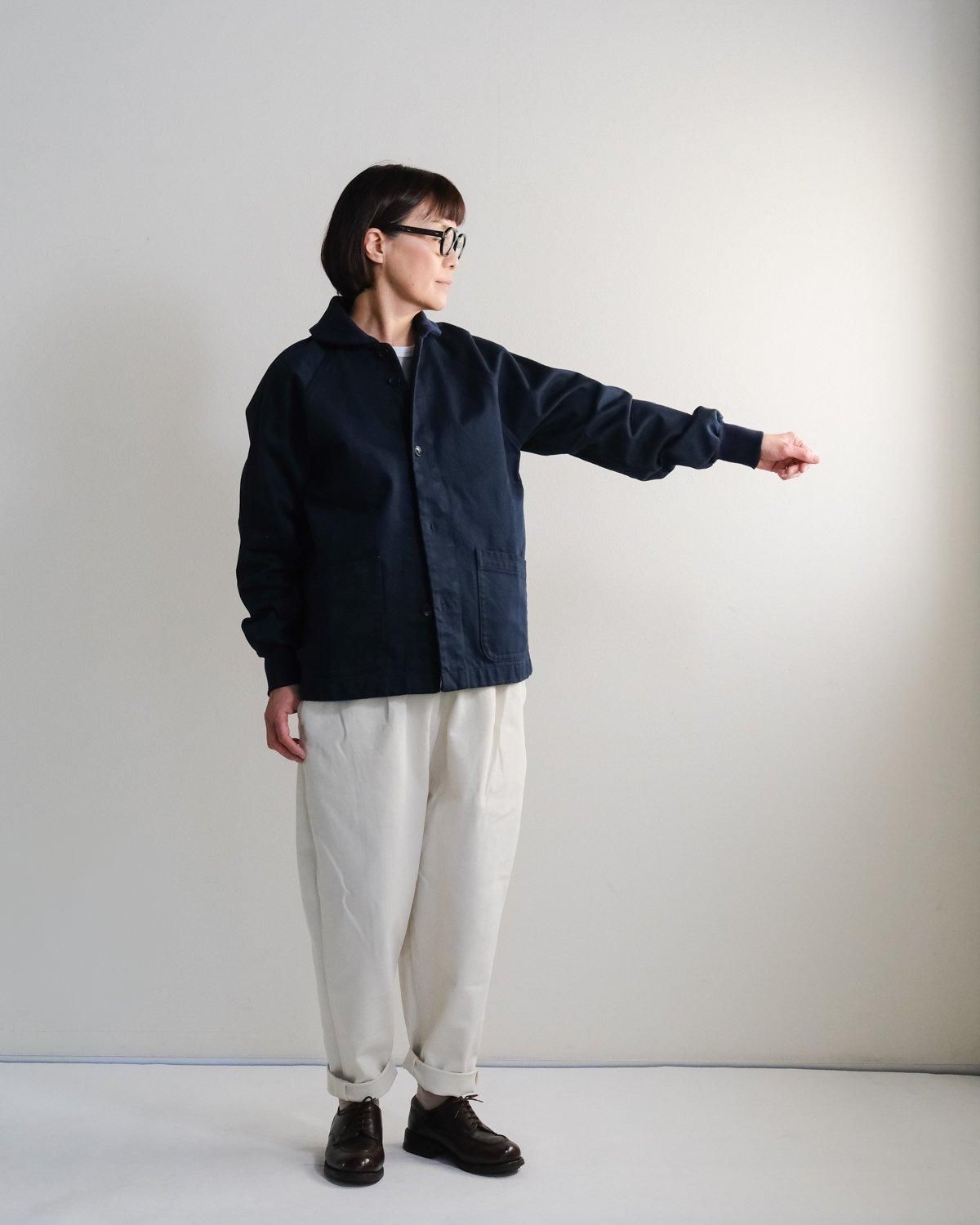 クラシックなワークウェアのポイントがありつつも、やわらかな雰囲気もある絶妙なバランス。