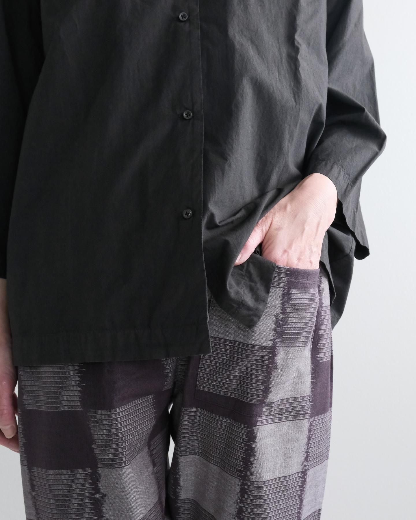 柄が出るように染めた糸で織られた生地なので、プリントのようなはっきりととした印象ではなく、 ゆらぎのある やわらかな風合いに。