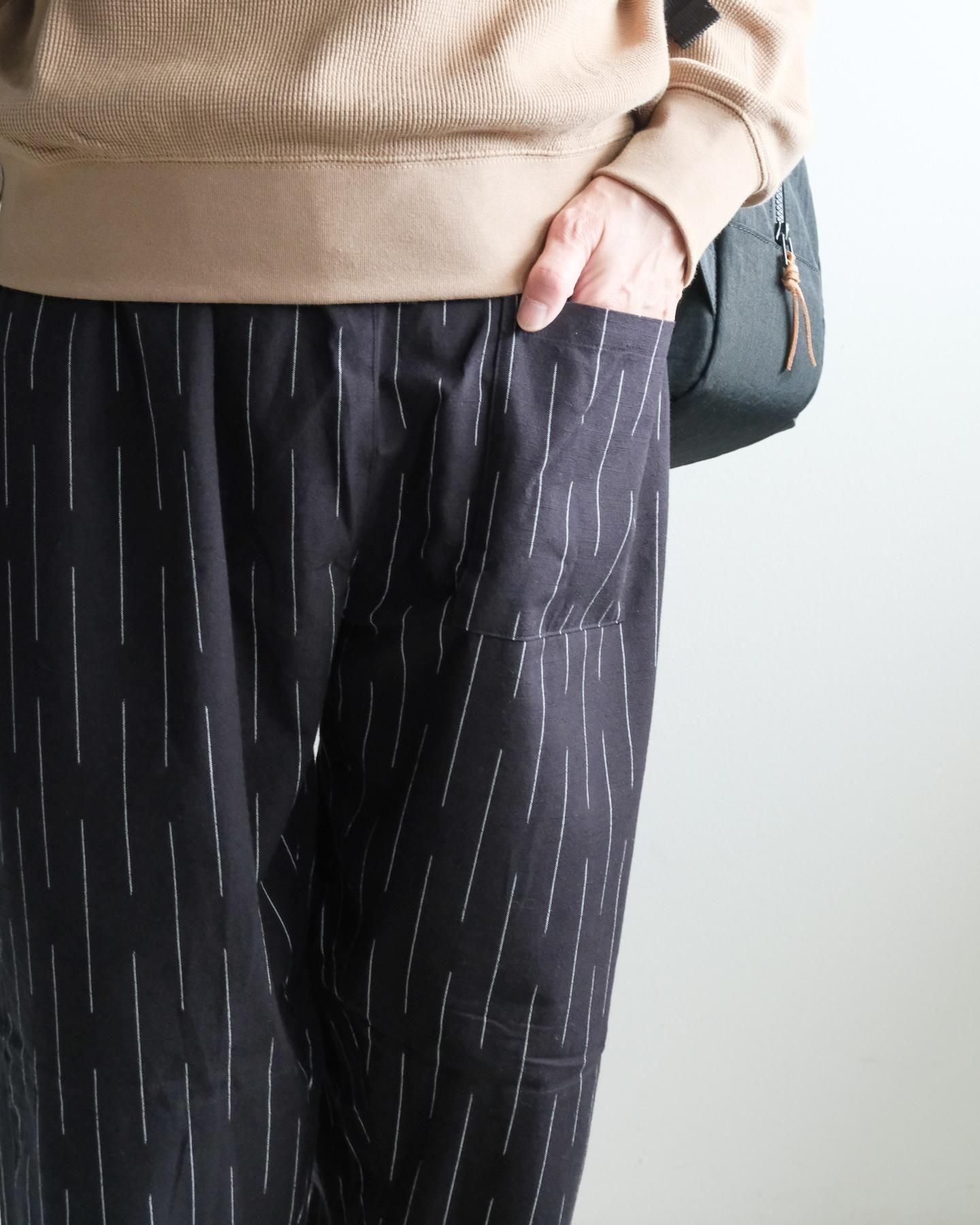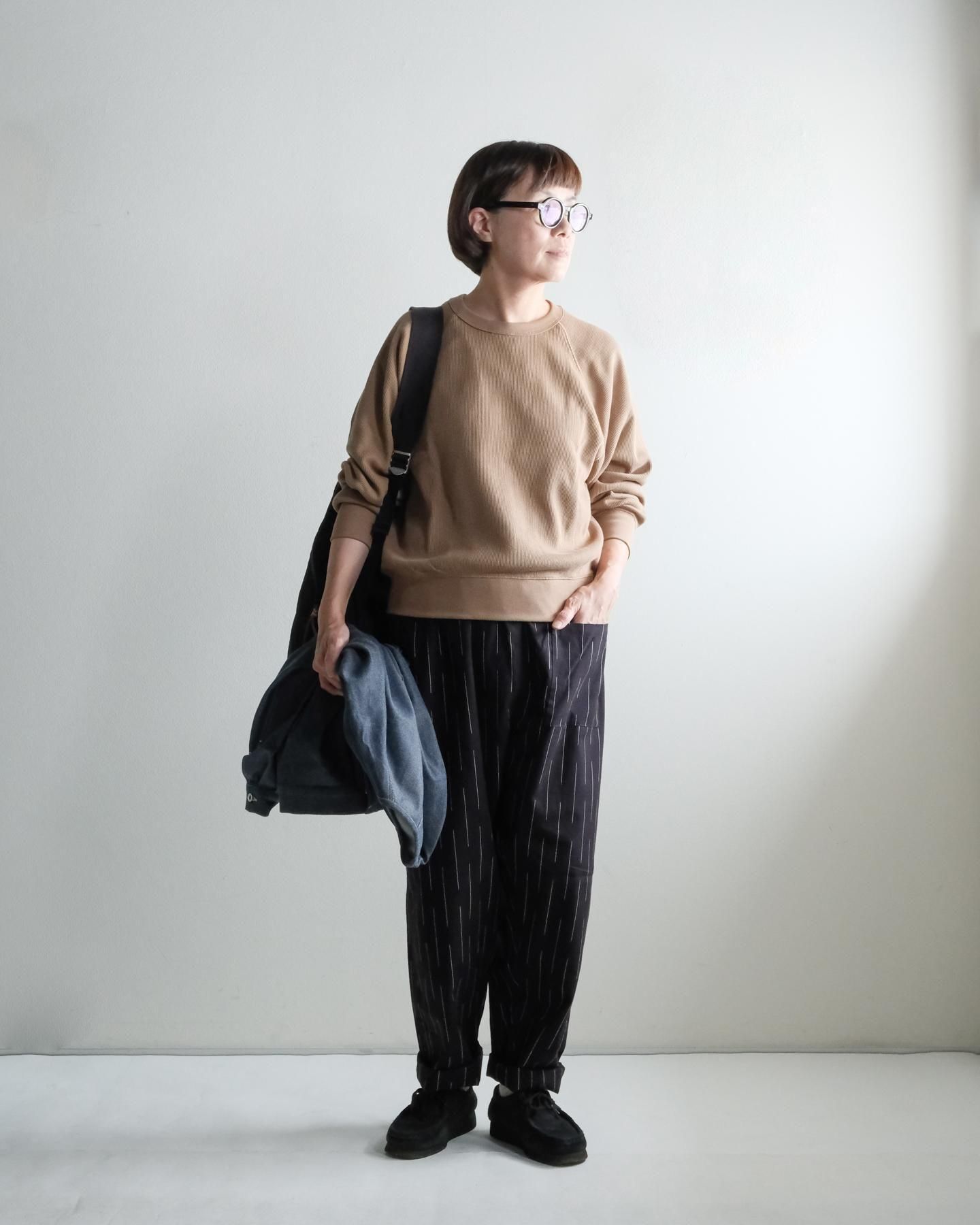 特にオーバーサイズが好きな方や、ゆったりはきたい方にご好評だったこの形を、カタカナが織元さんのもとへ足を運び、生地を選んでつくっていただきました!