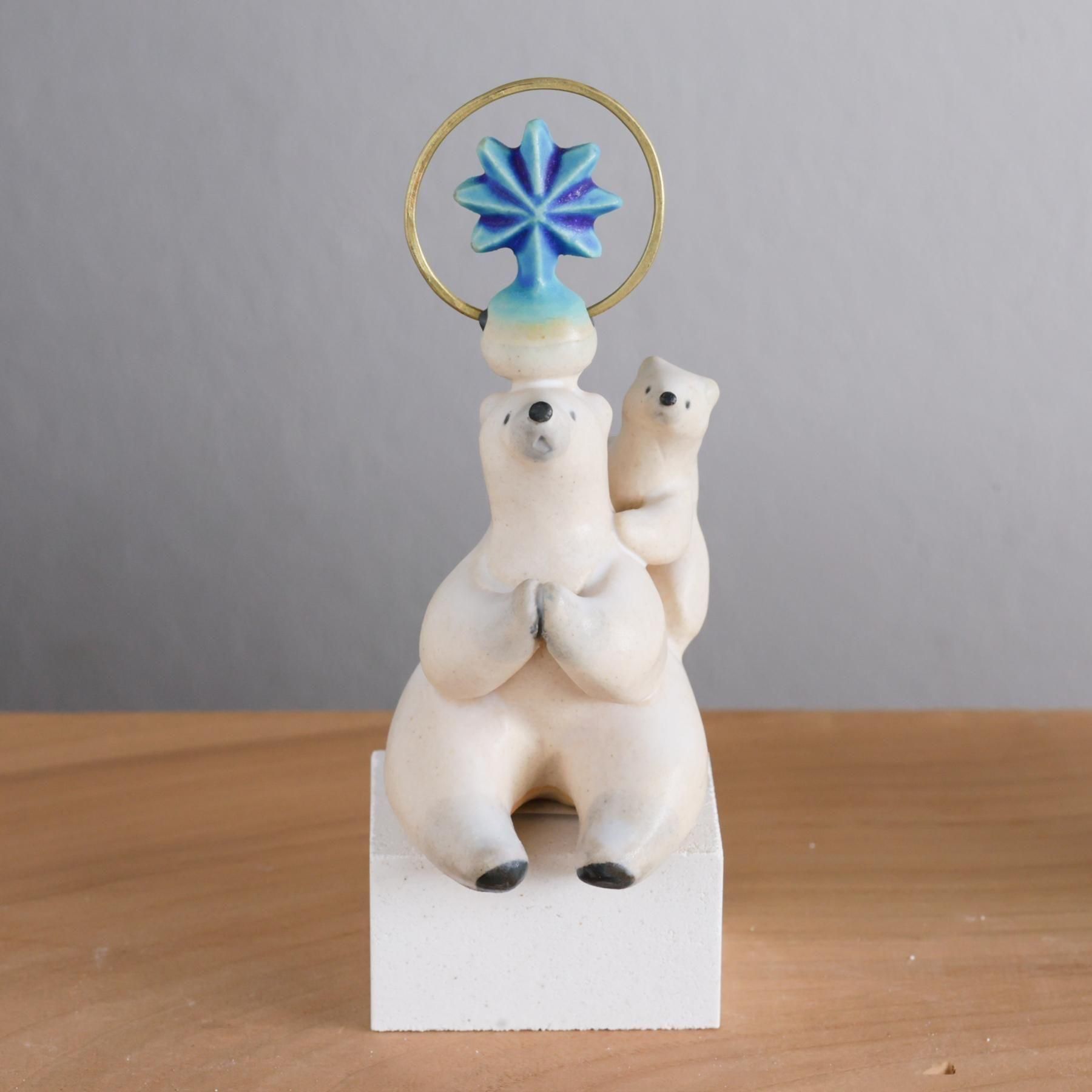 青い作品を中心に、動物の置物や人形など「ほっこり」をテーマに制作しています。