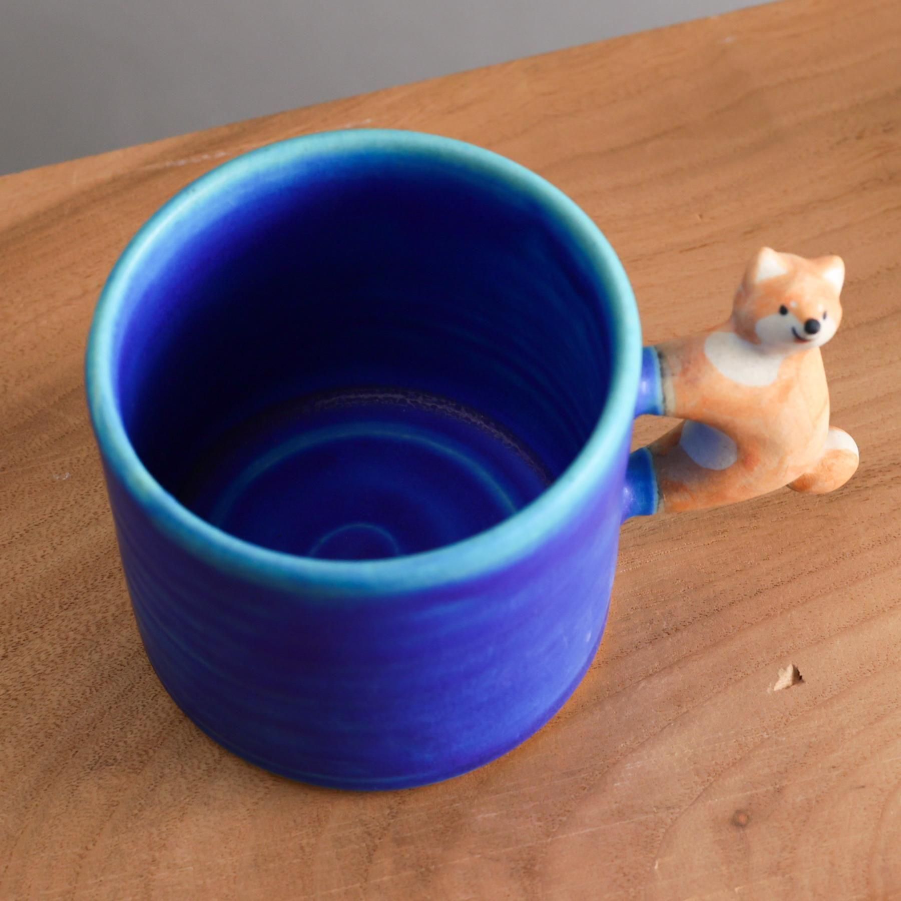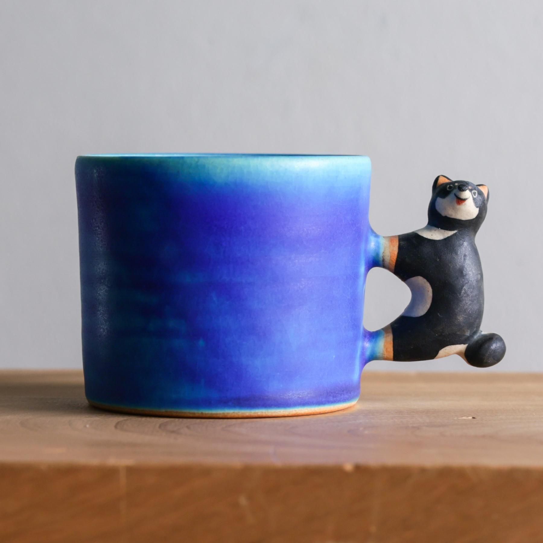 青い作品を中心に、動物の置物や人形など「ほっこり」をテーマに制作しています。