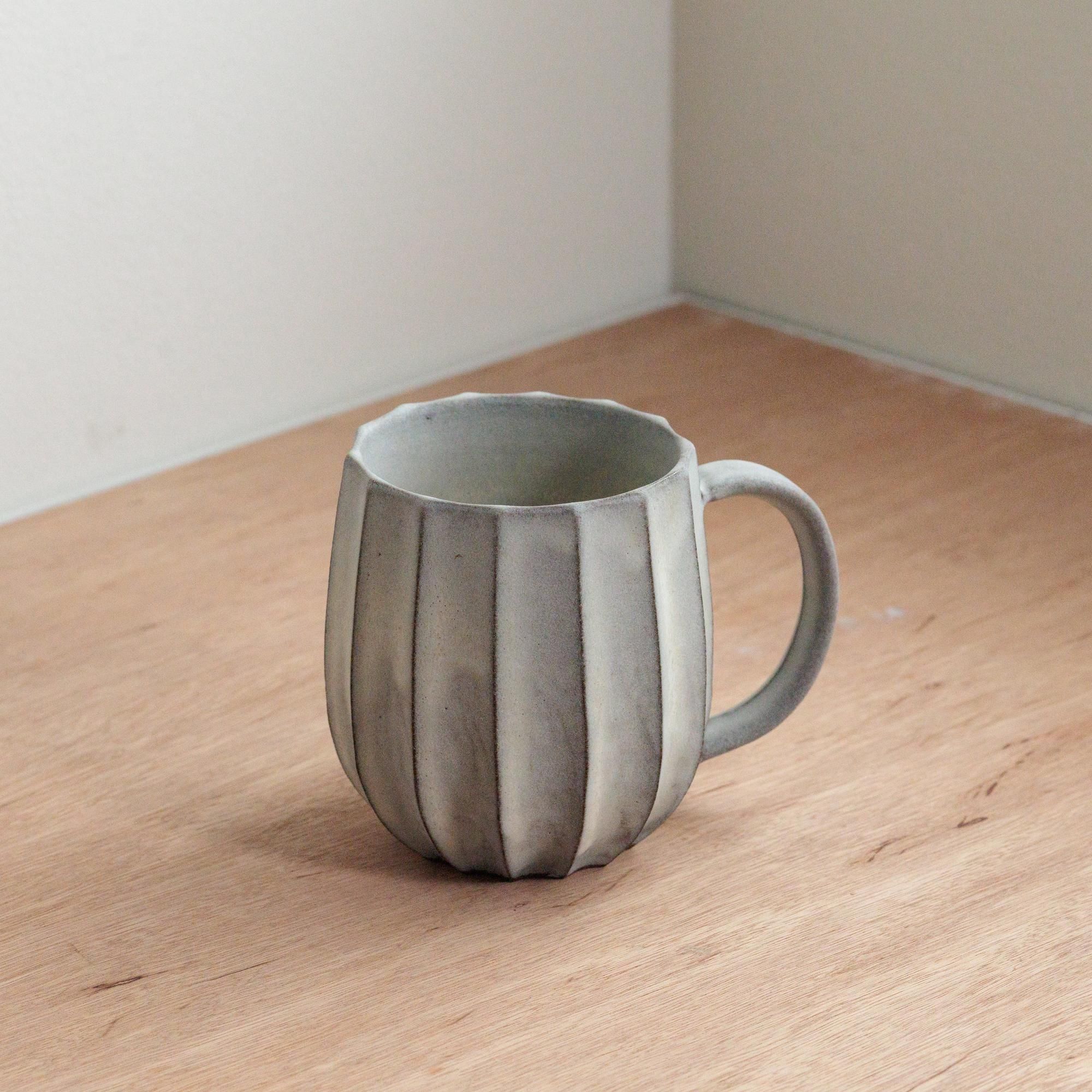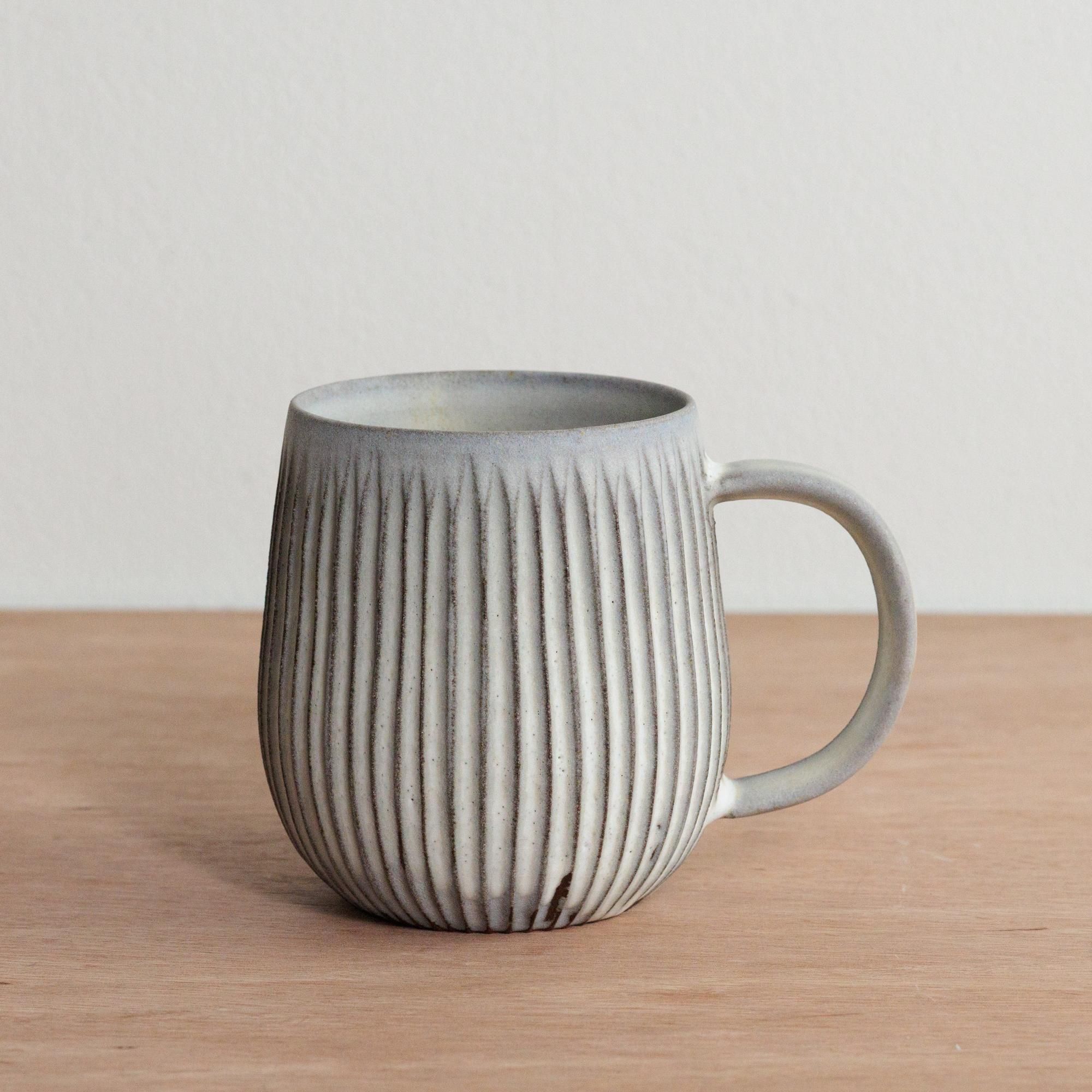 釉薬はオリジナルの調合で、白のなかにグレーだったり黄味を帯びた部分があったり。