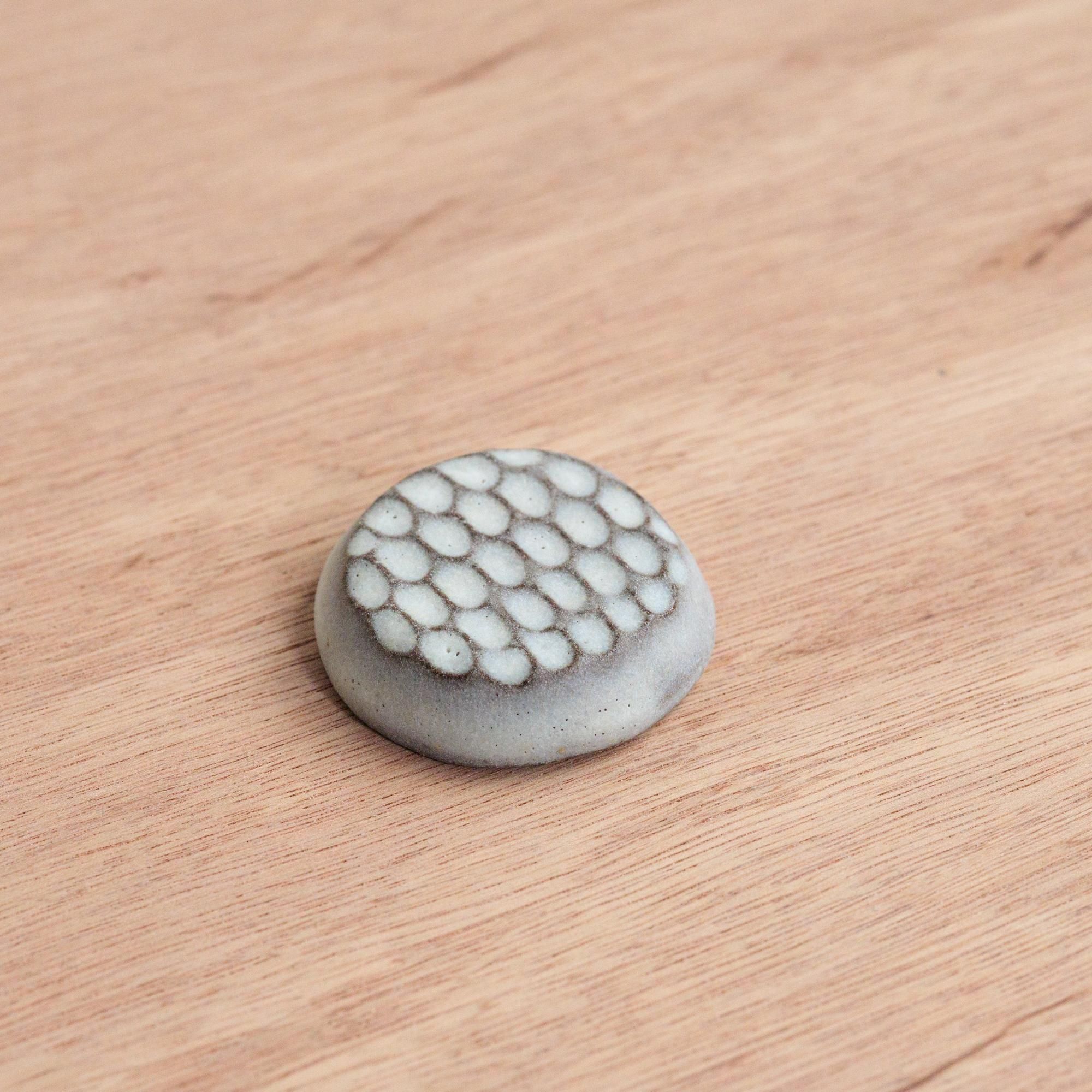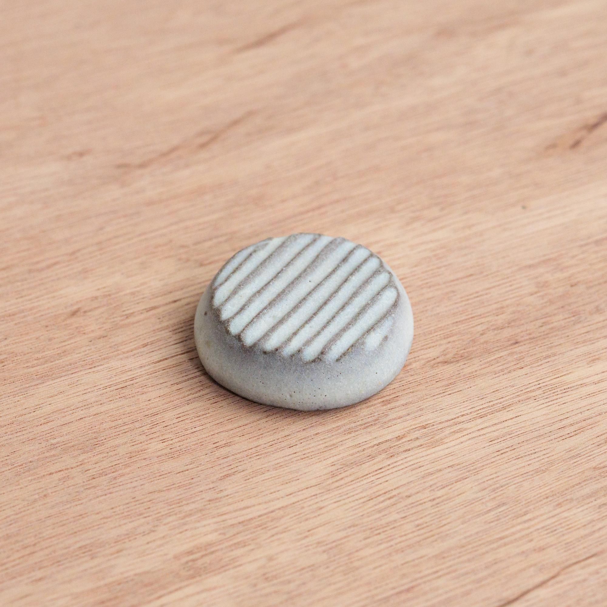 釉薬はオリジナルの調合で、白のなかにグレーだったり黄味を帯びた部分があったり。