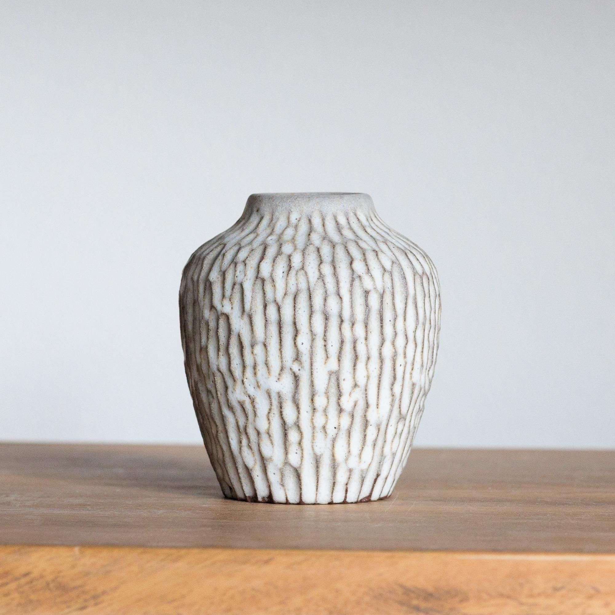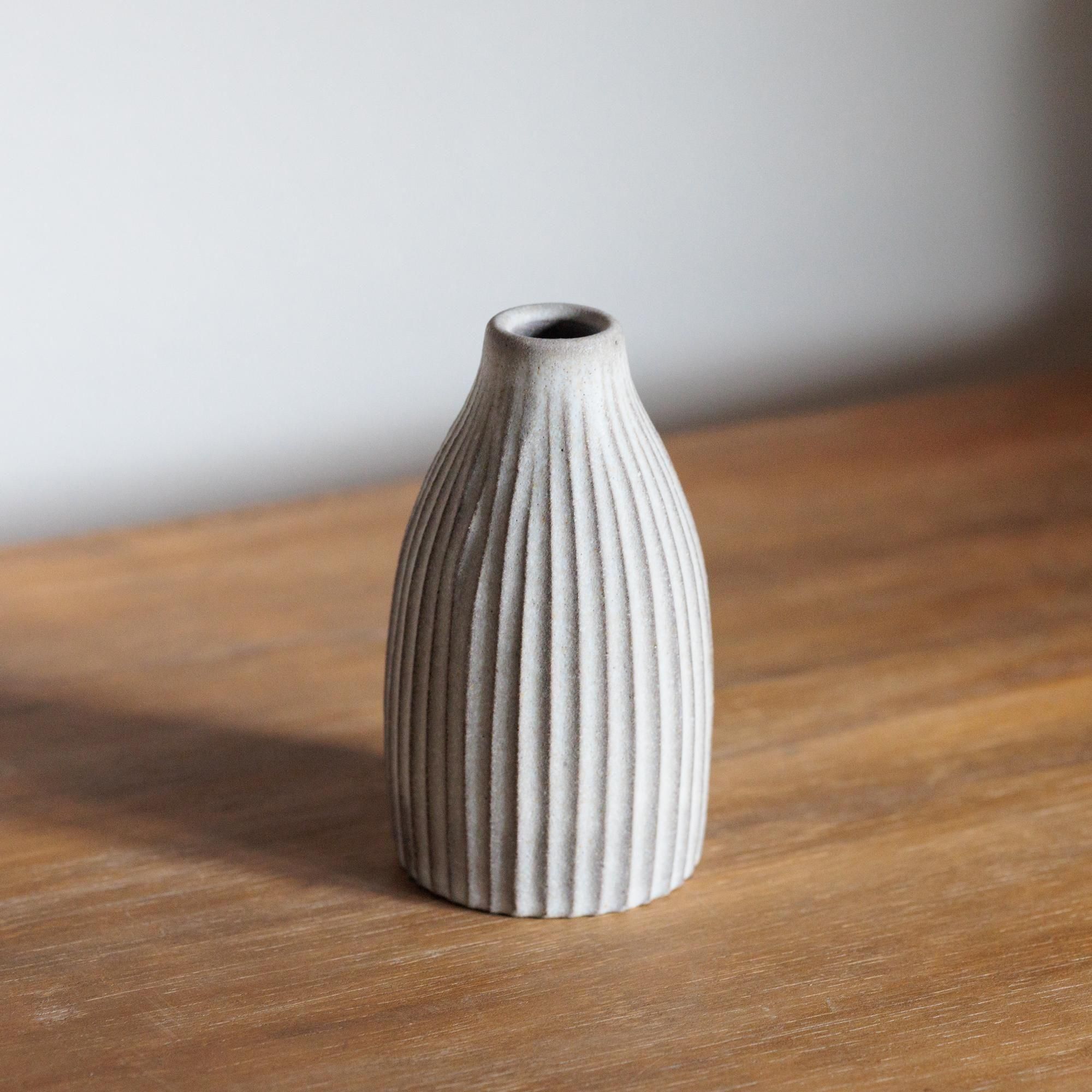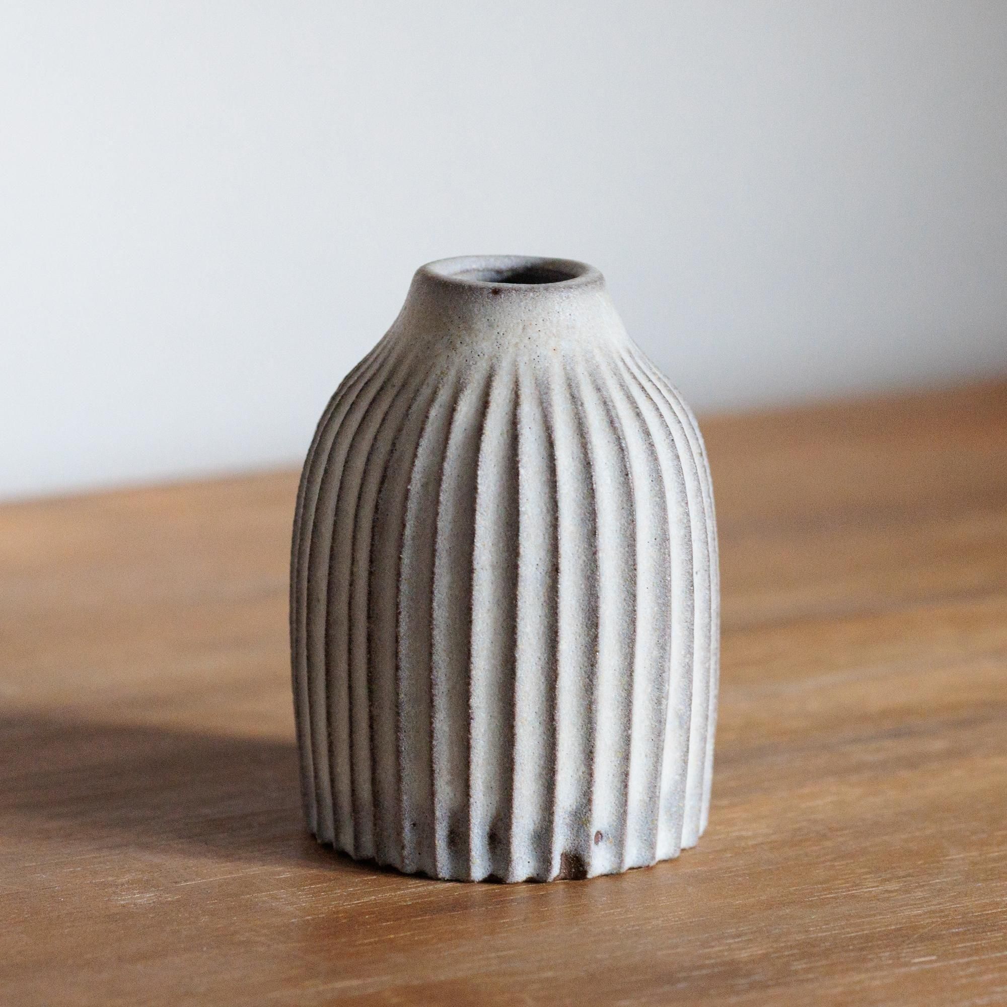 釉薬はオリジナルの調合で、白のなかにグレーだったり黄味を帯びた部分があったり。