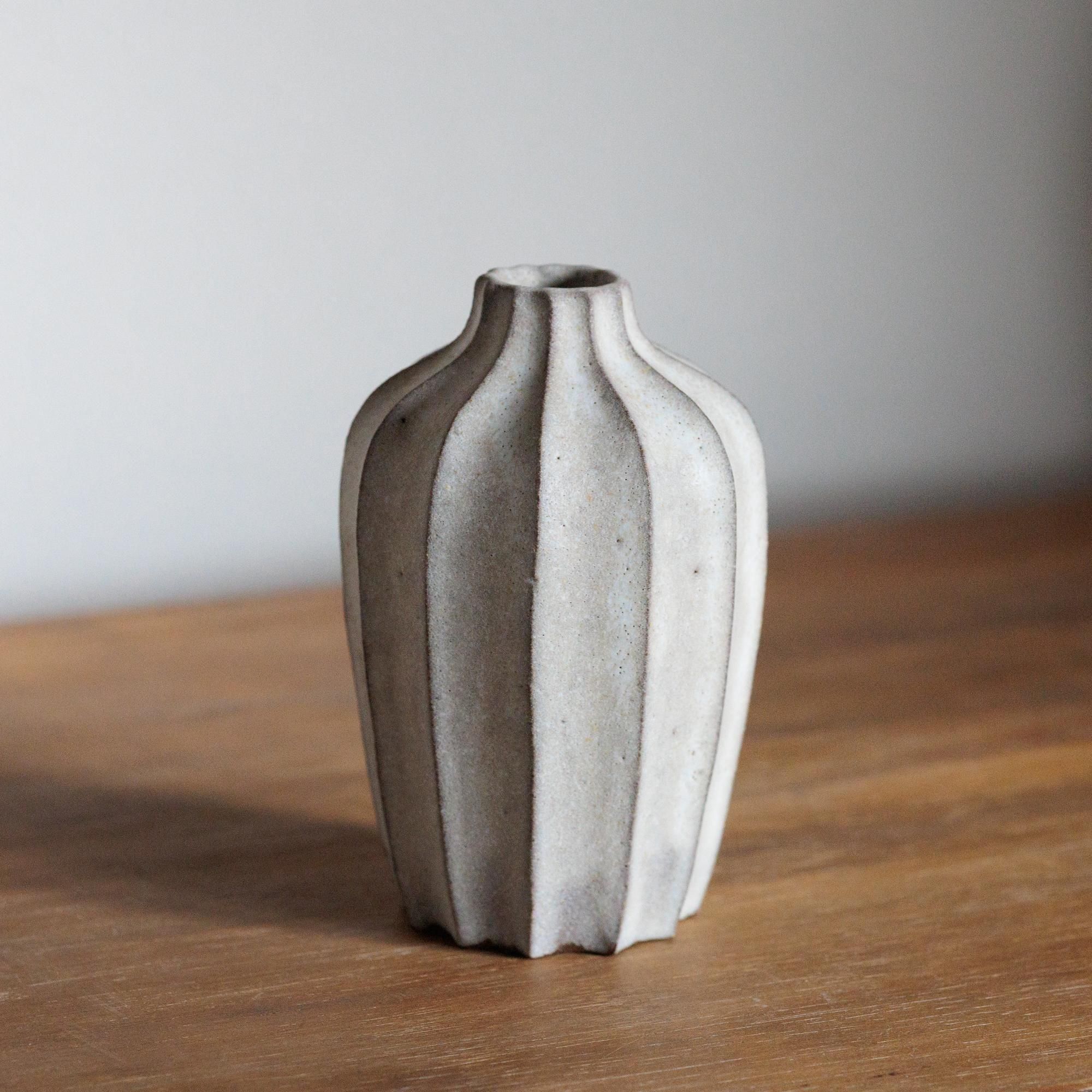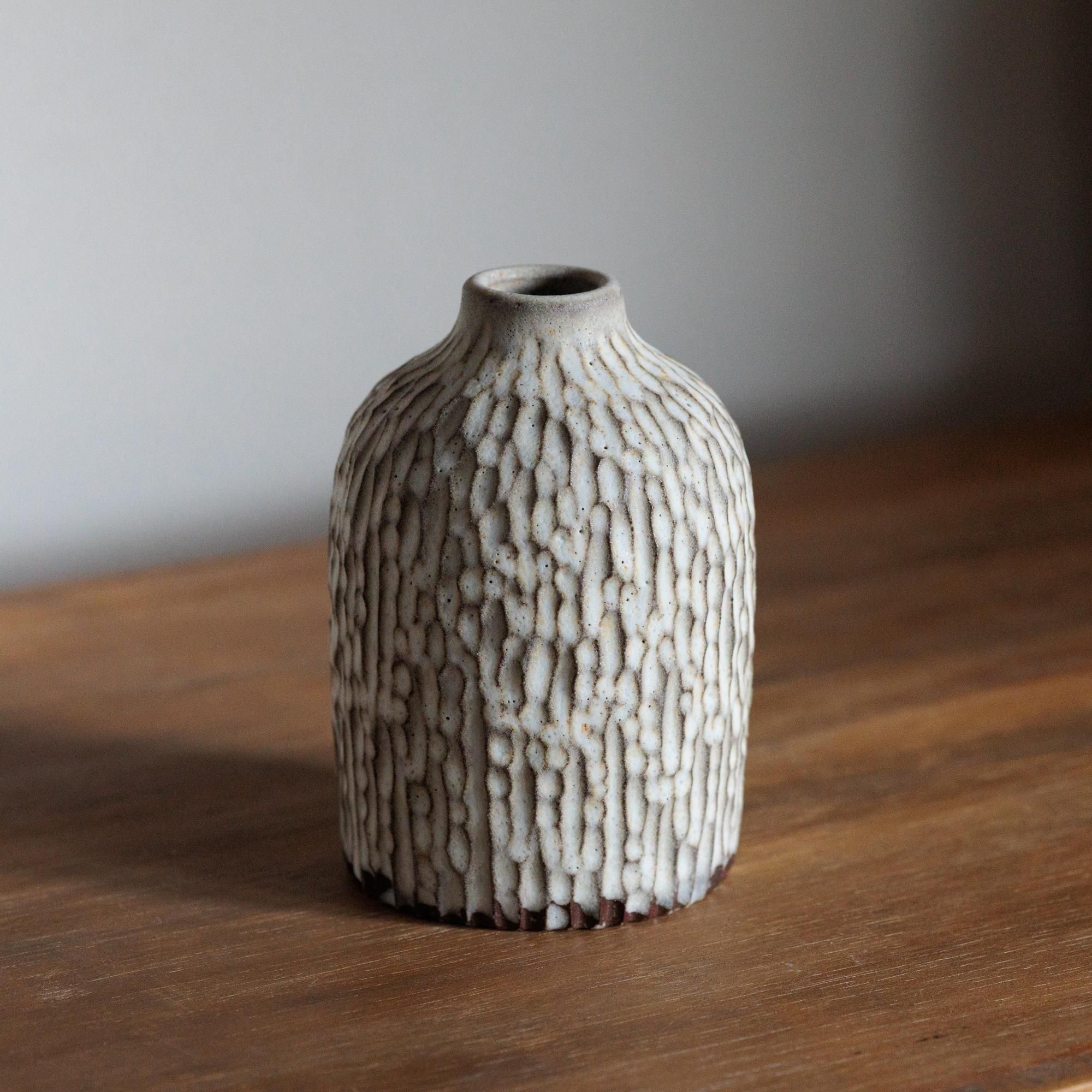 釉薬はオリジナルの調合で、白のなかにグレーだったり黄味を帯びた部分があったり。