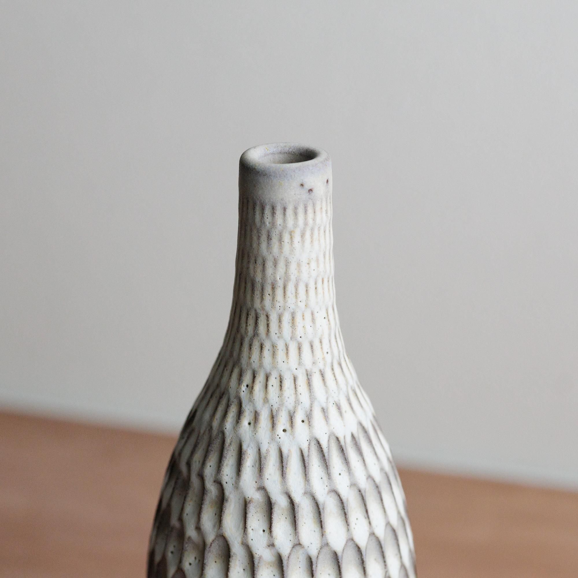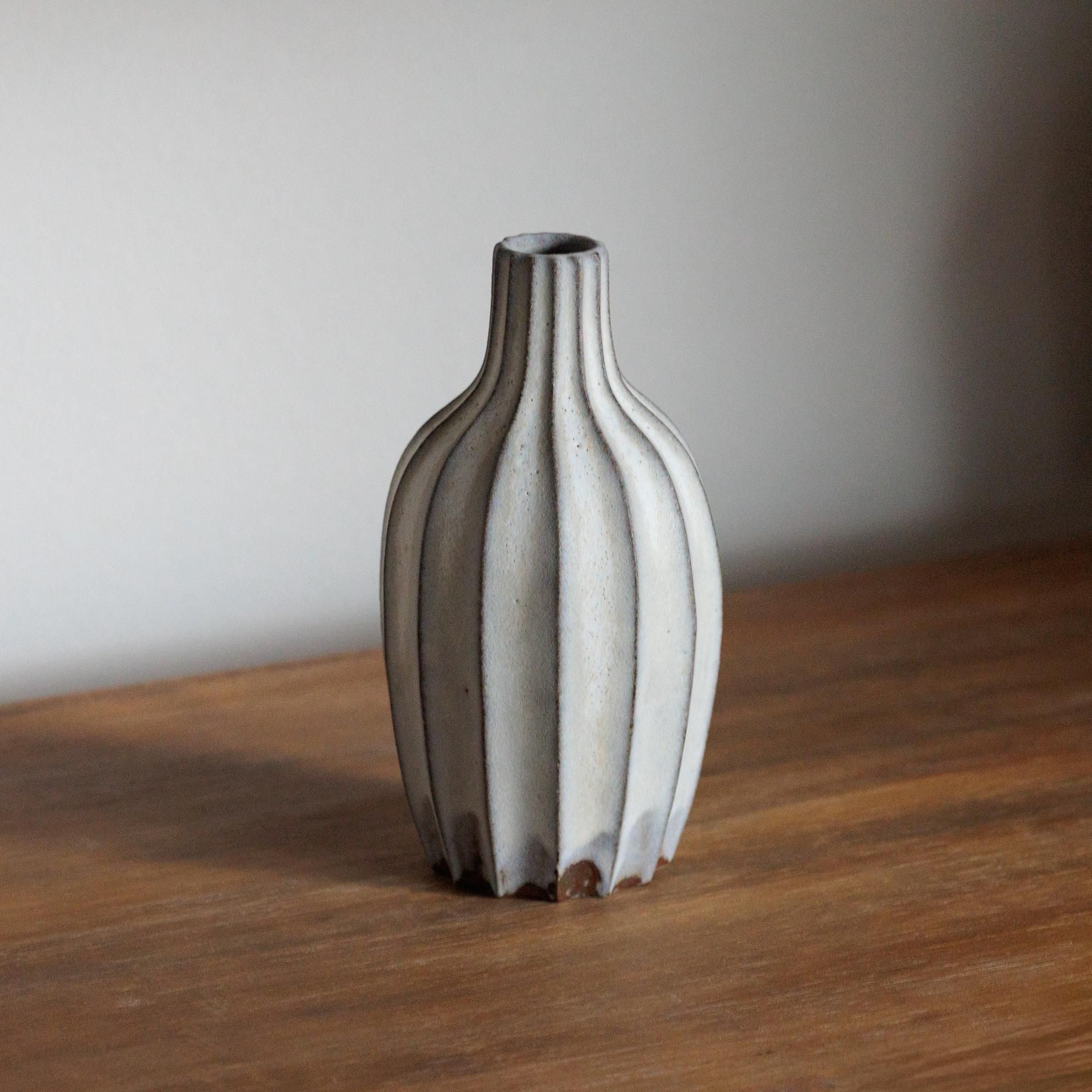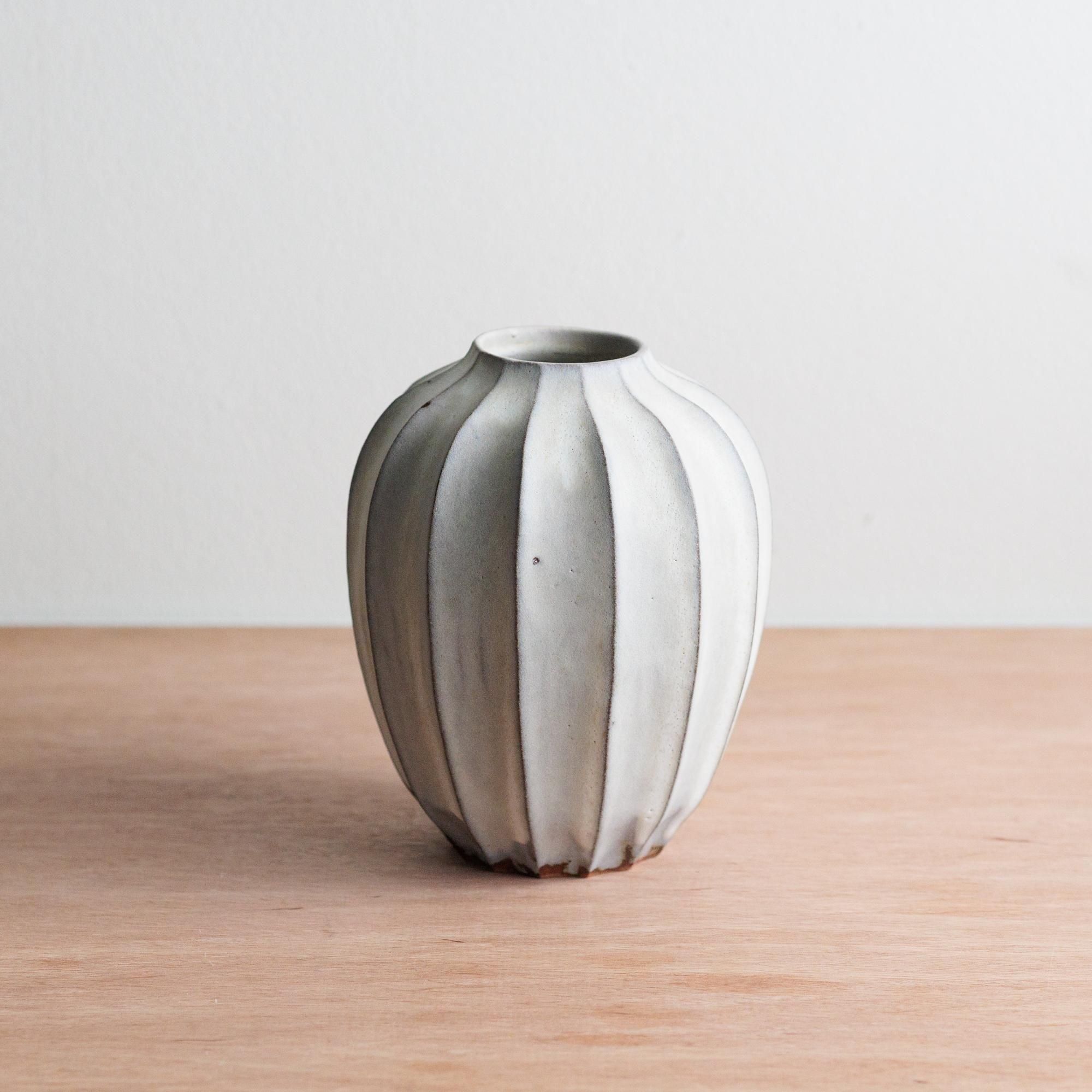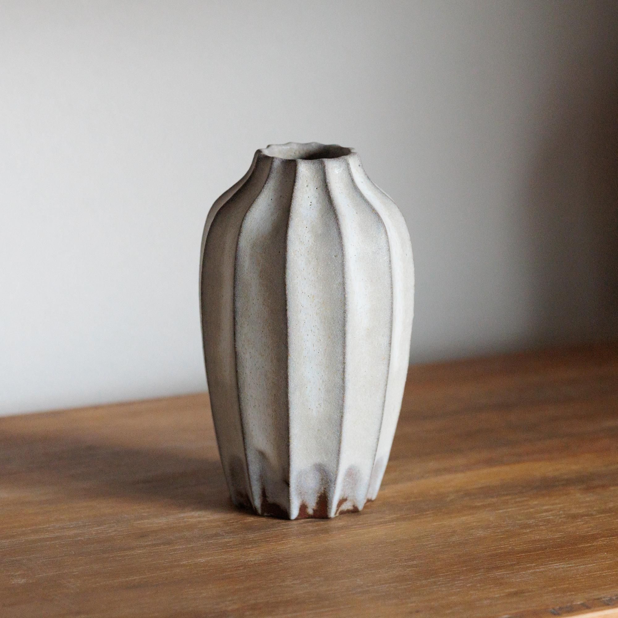釉薬はオリジナルの調合で、白のなかにグレーだったり黄味を帯びた部分があったり。