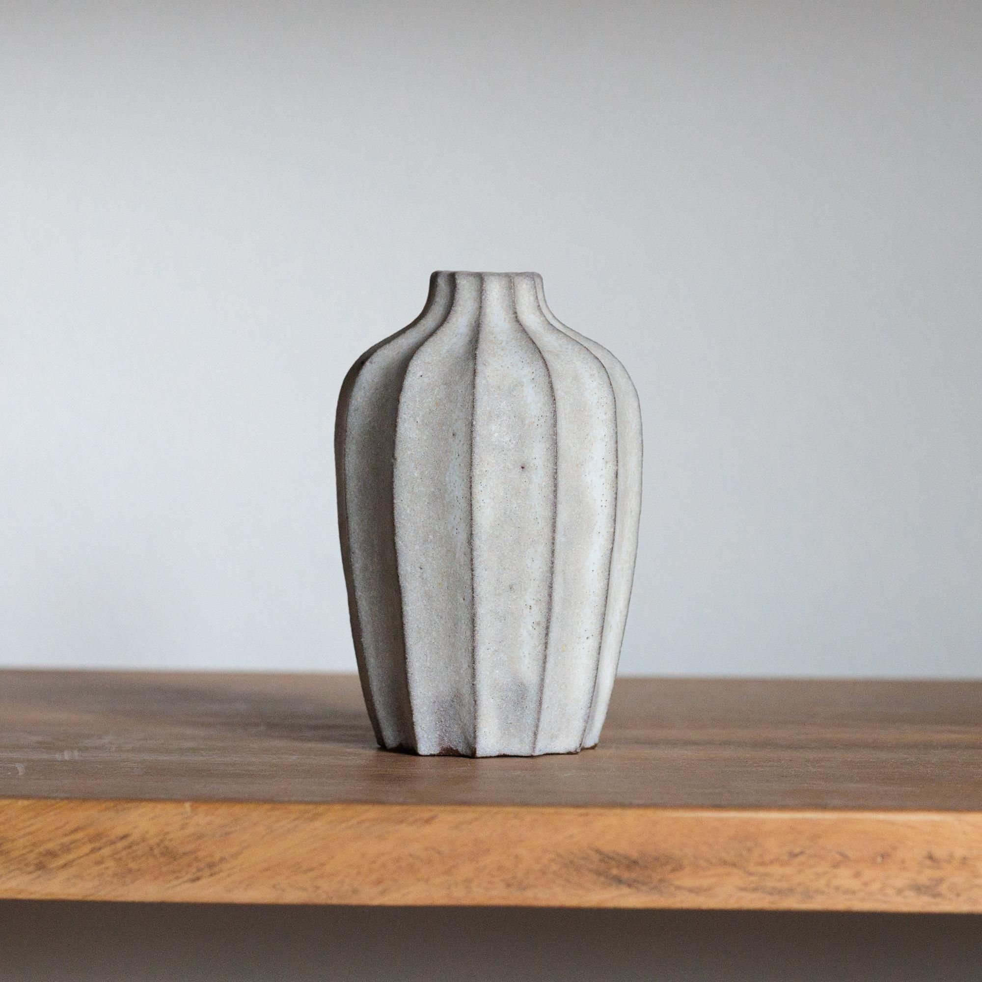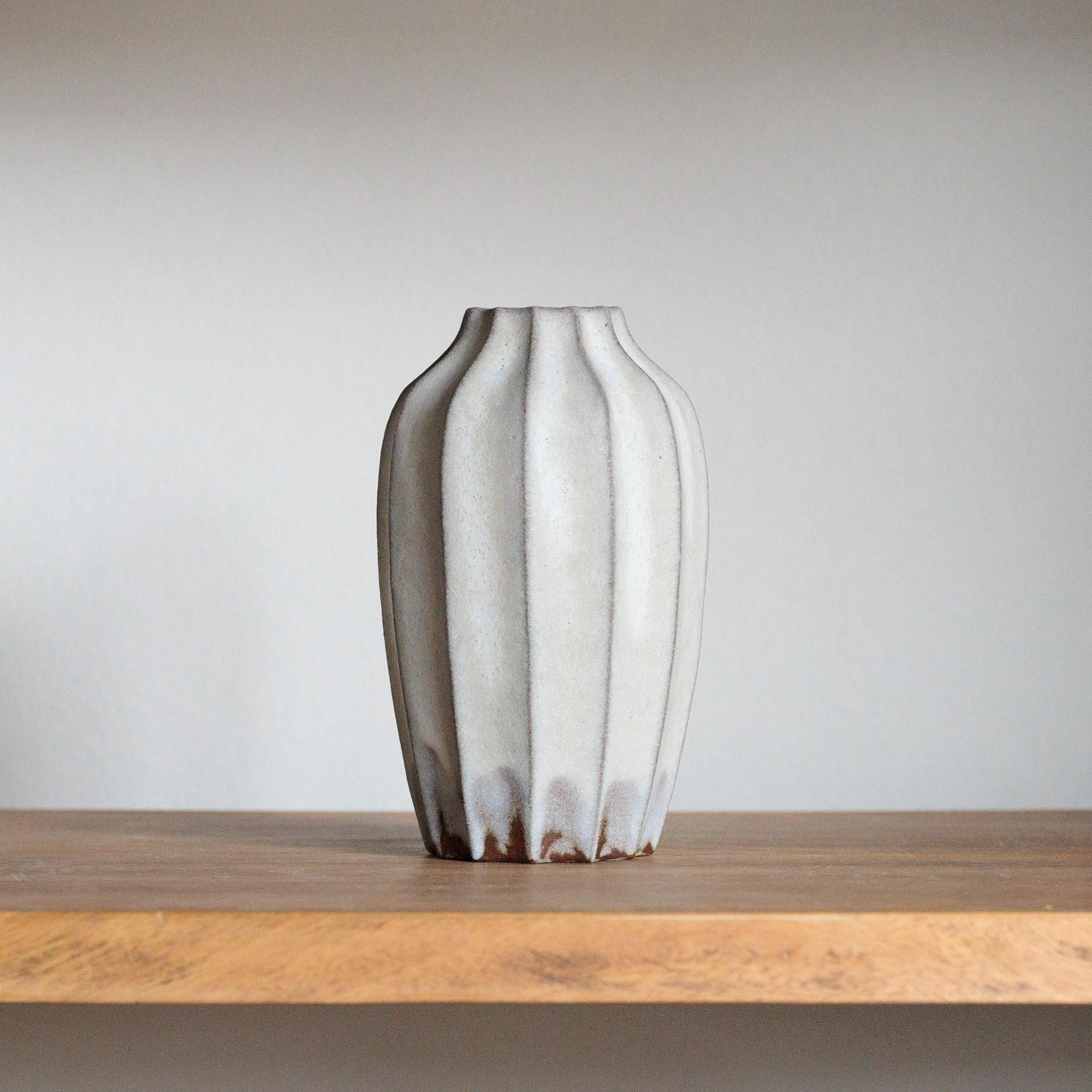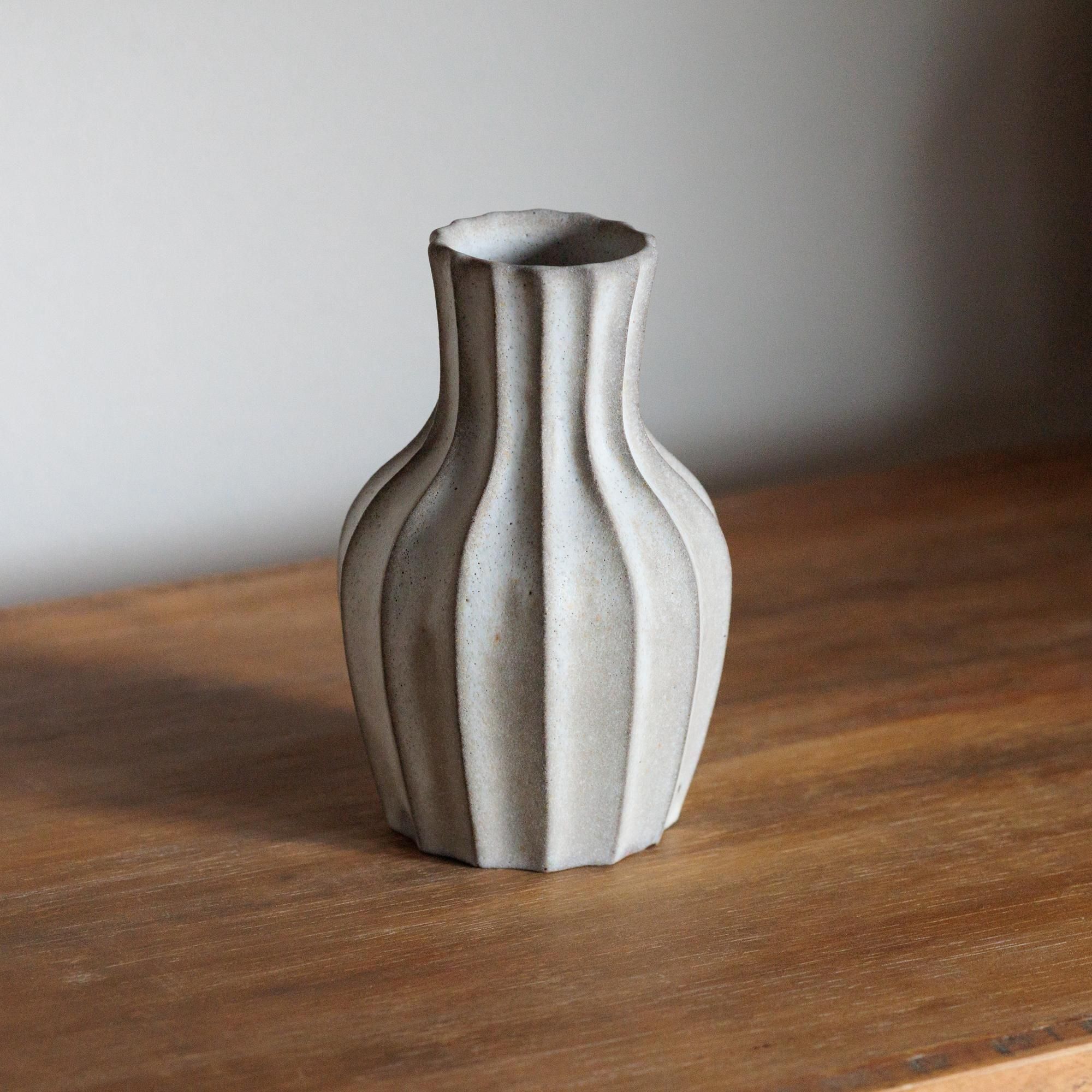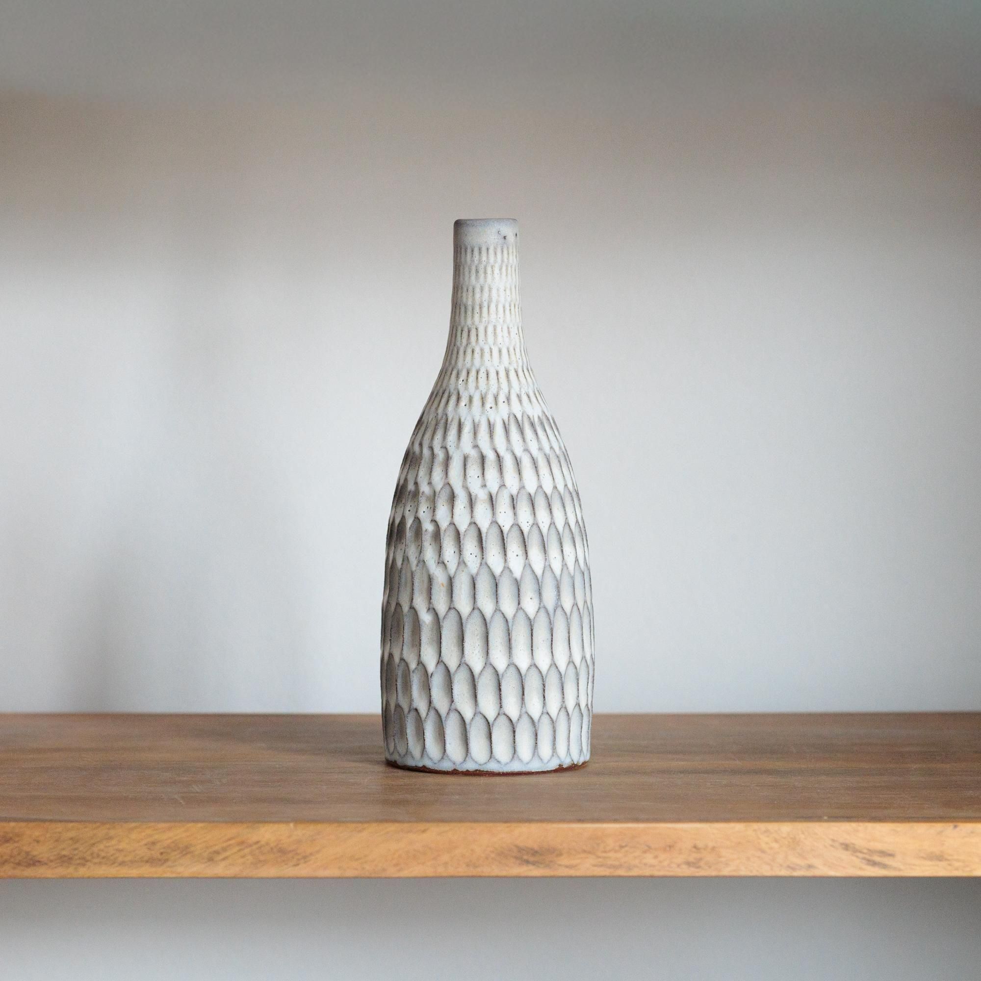釉薬はオリジナルの調合で、白のなかにグレーだったり黄味を帯びた部分があったり。