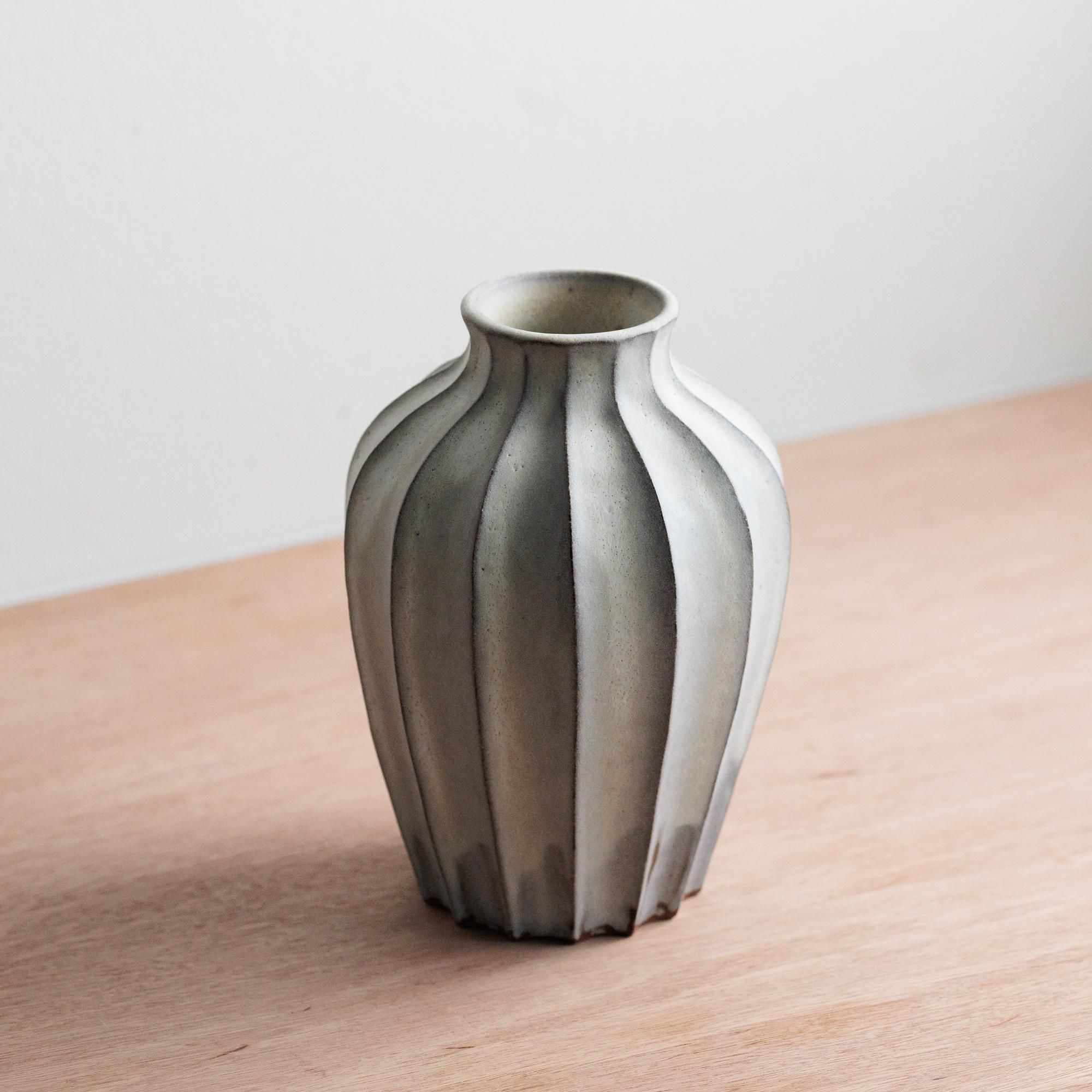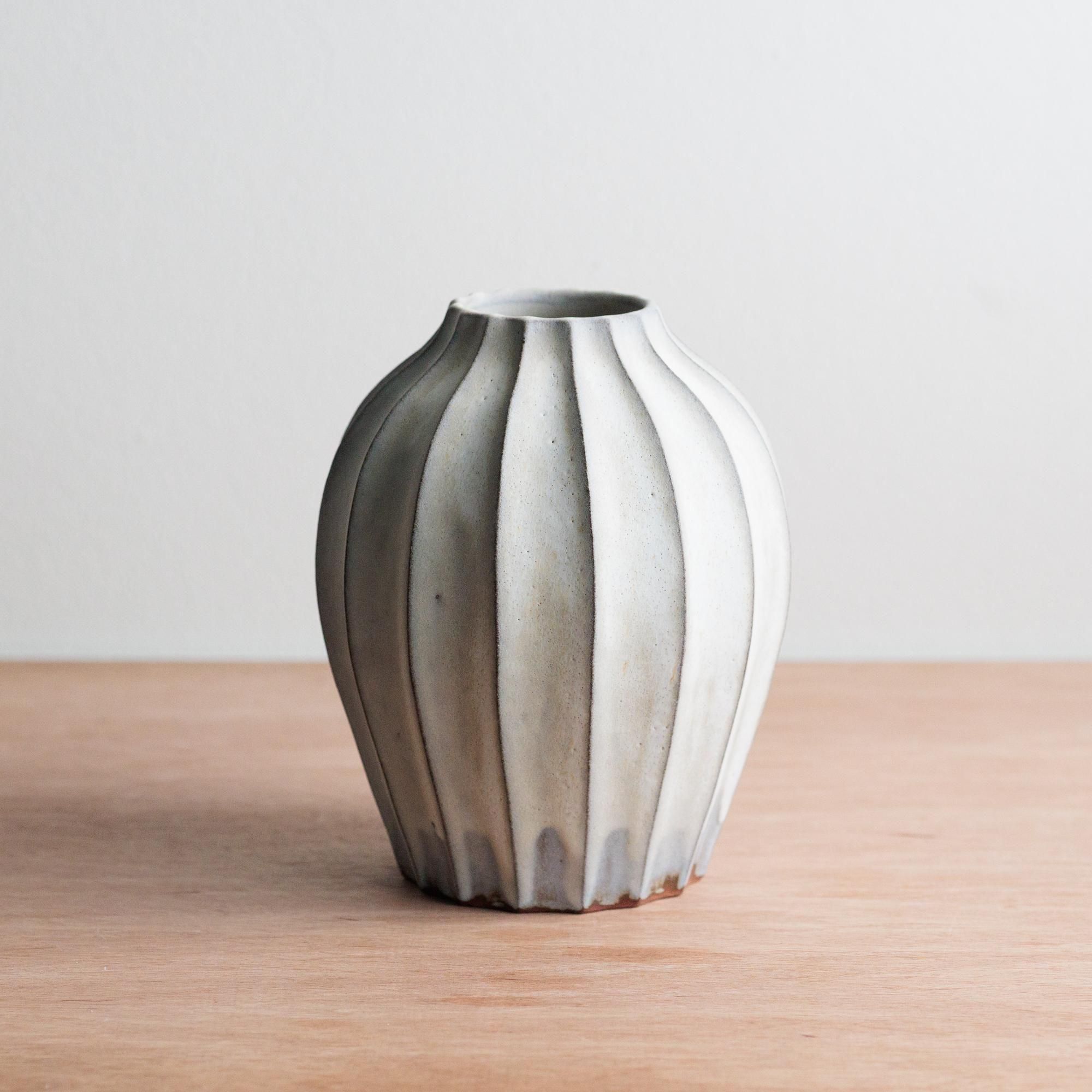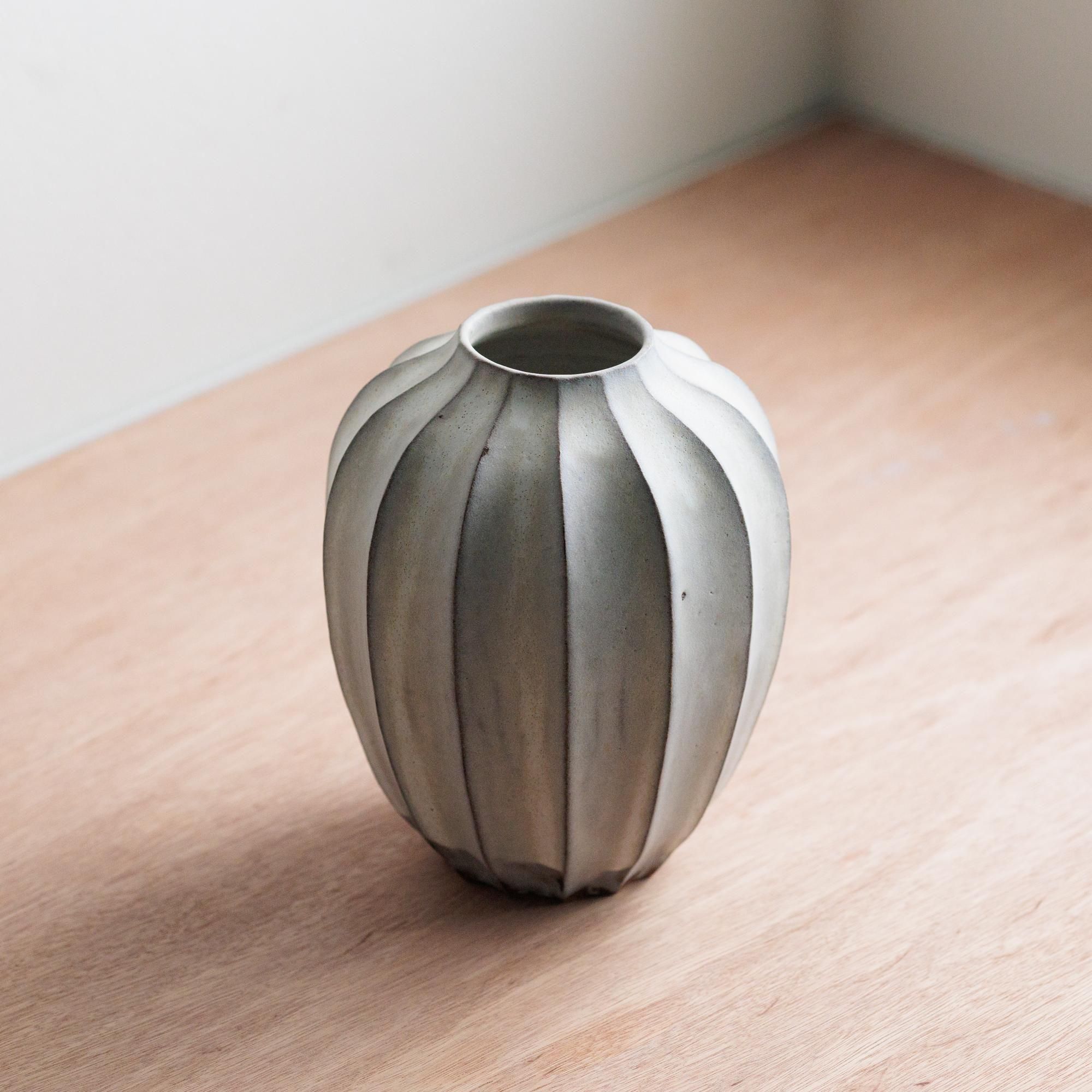 釉薬はオリジナルの調合で、白のなかにグレーだったり黄味を帯びた部分があったり。