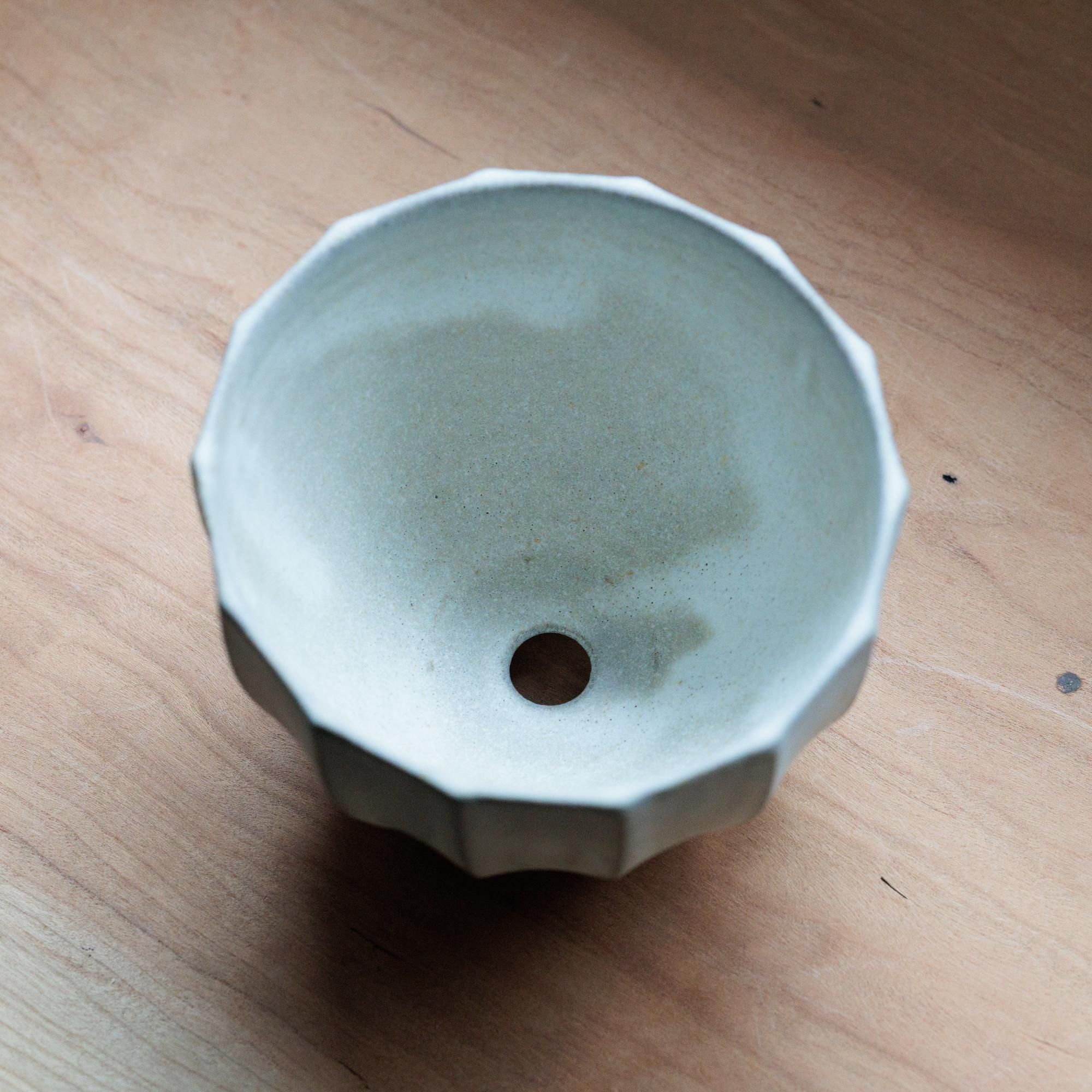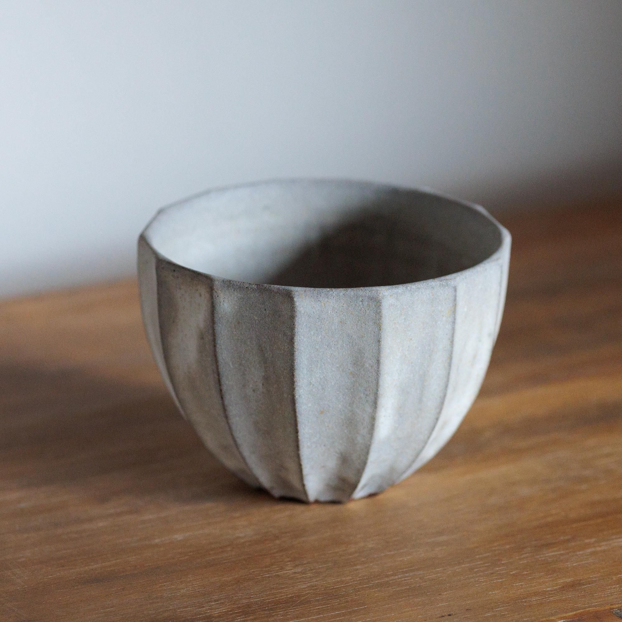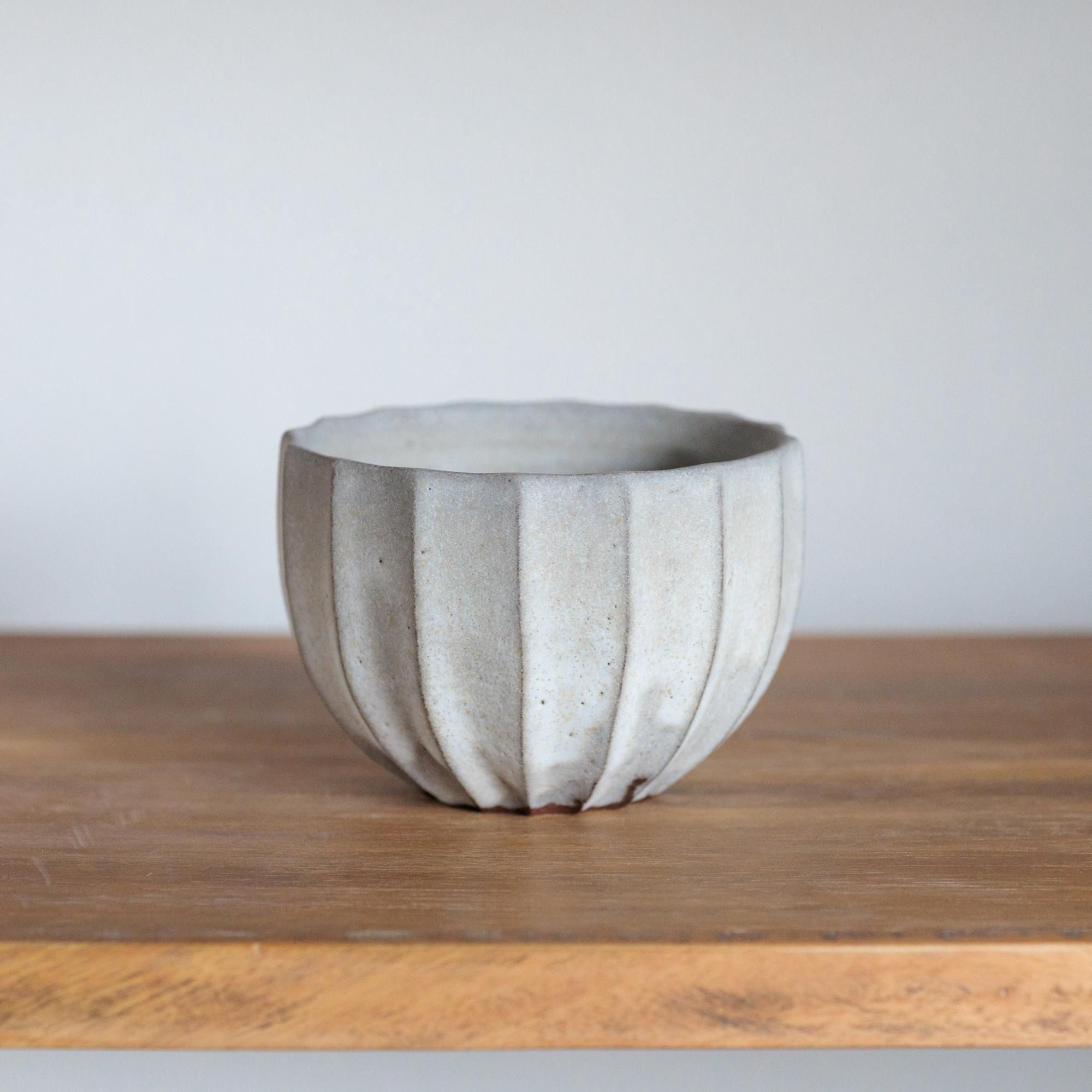 釉薬はオリジナルの調合で、白のなかにグレーだったり黄味を帯びた部分があったり。