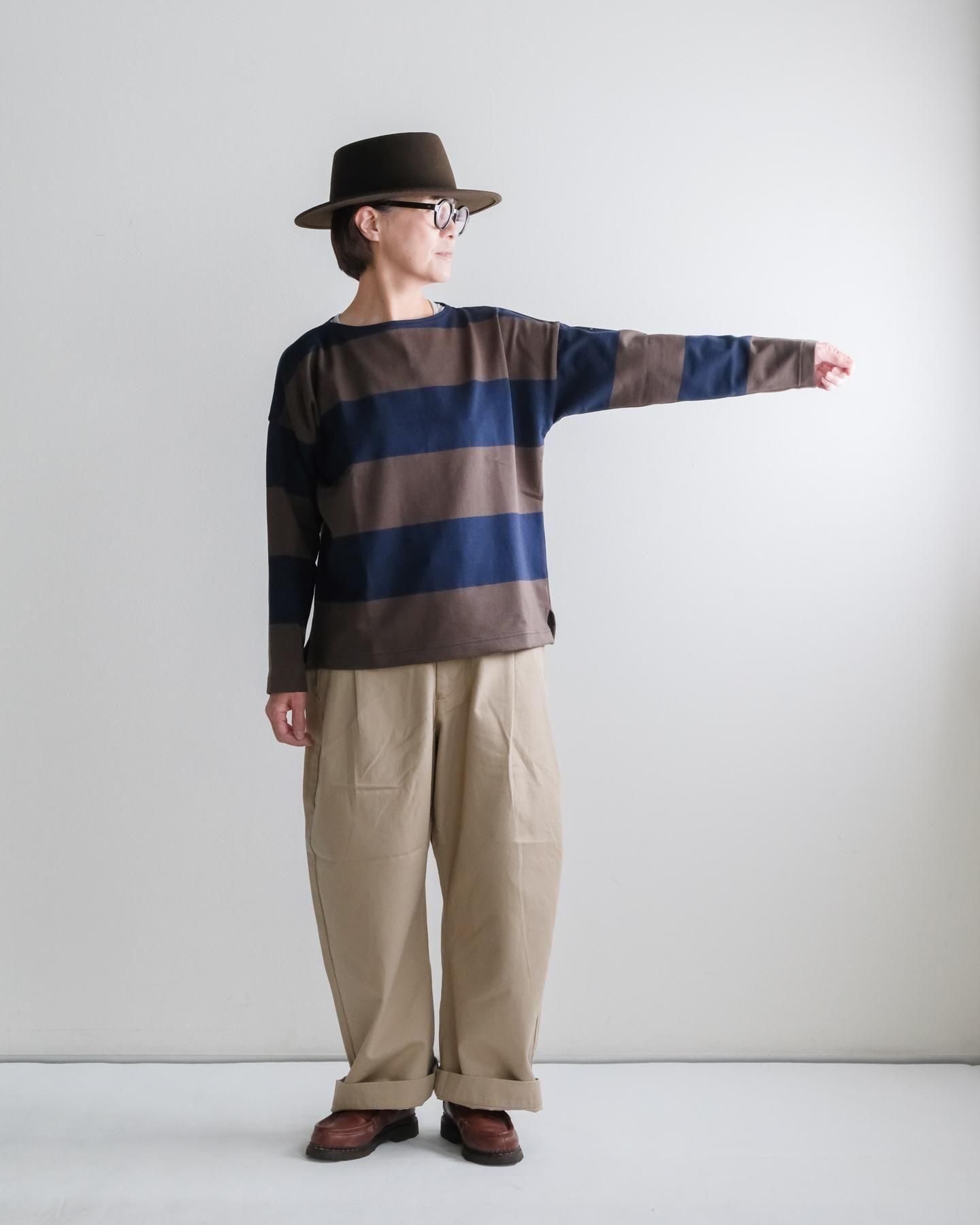 着丈を少し長めにつくることで、ラフな印象のなかに上品さを感じる大人のためのボーダーです。
