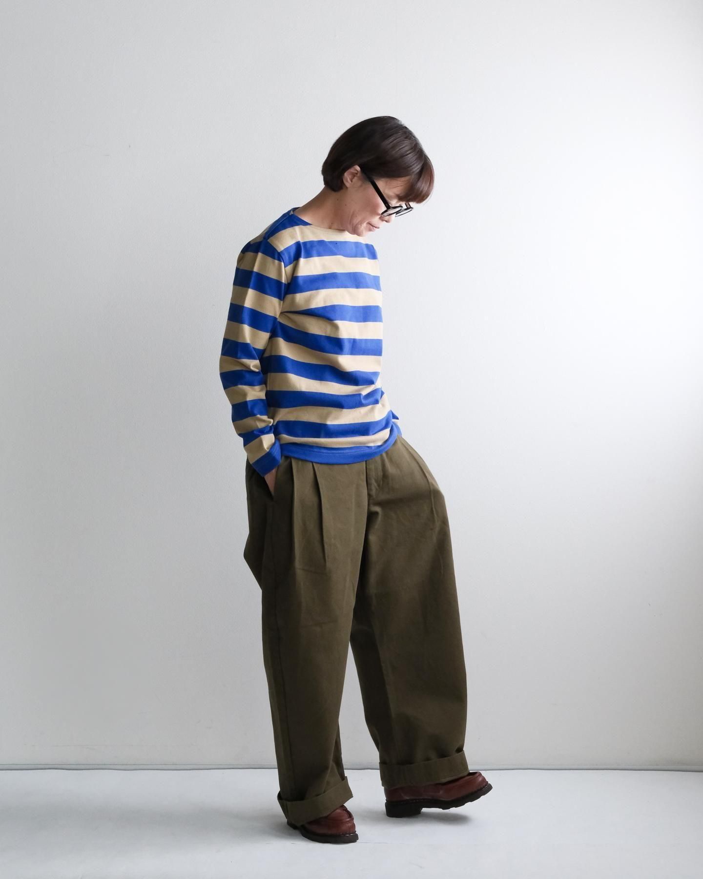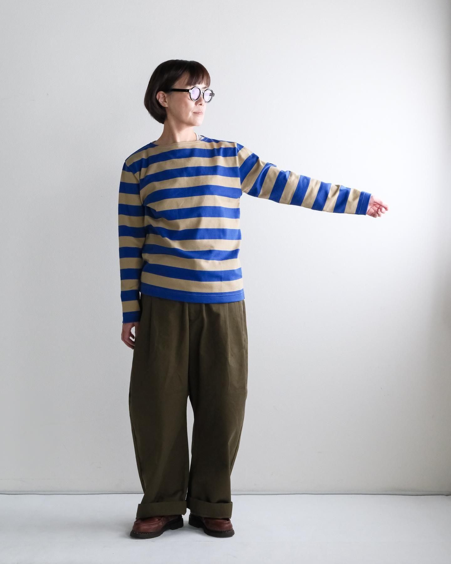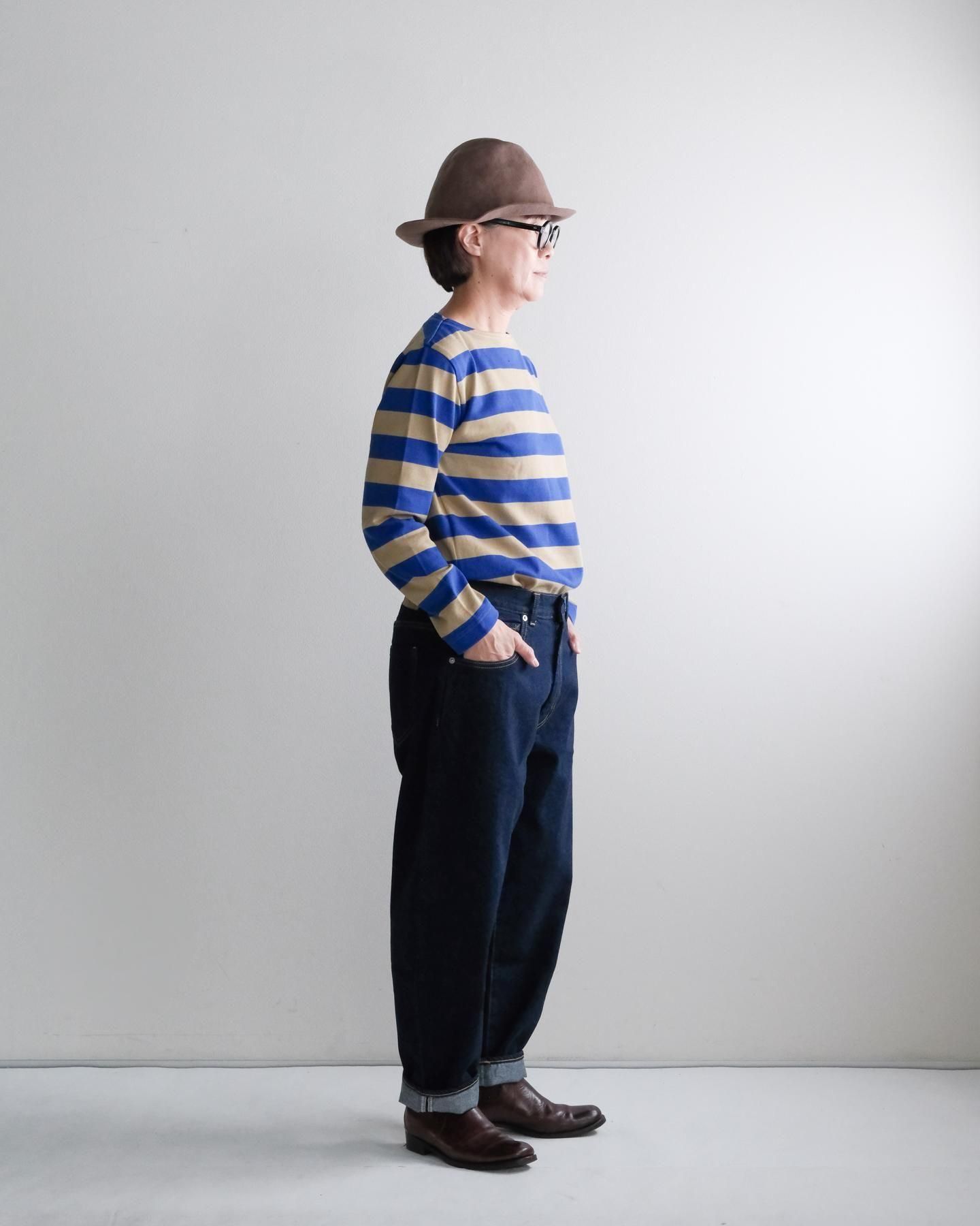 リブのないデザインにボーダーをあわせることで、ラフすぎず、ほどよい抜け感を楽しめます。