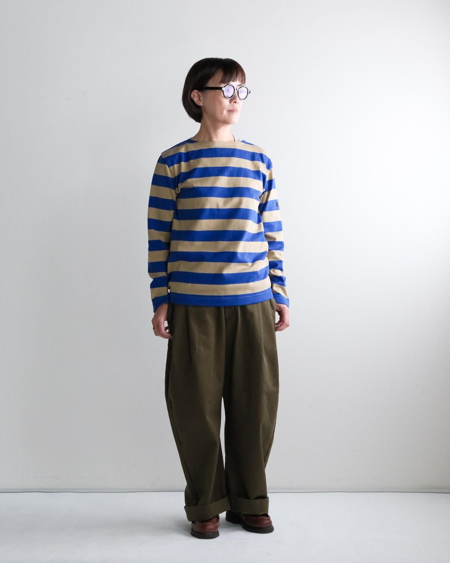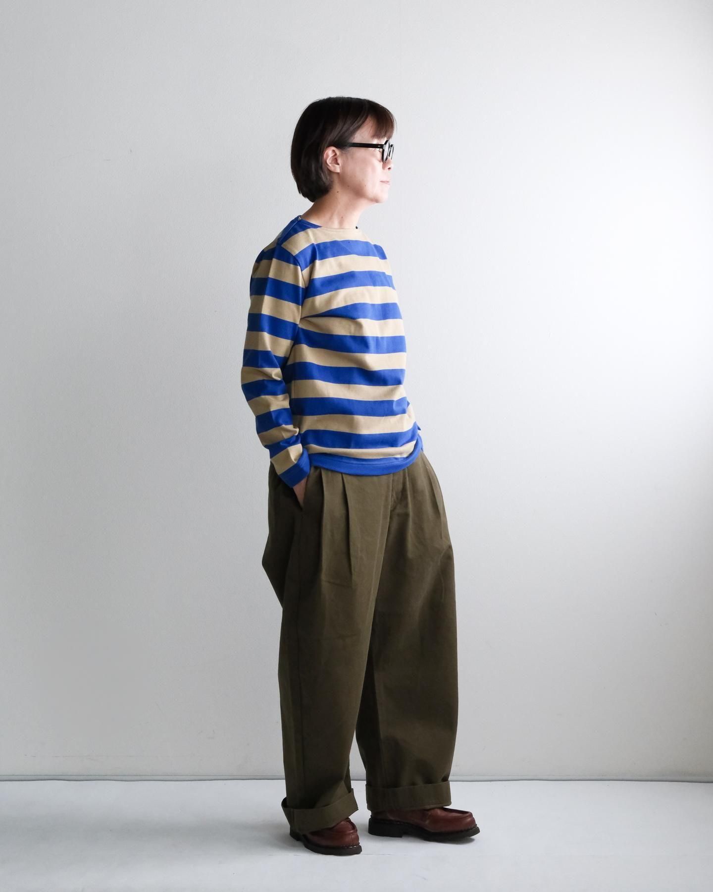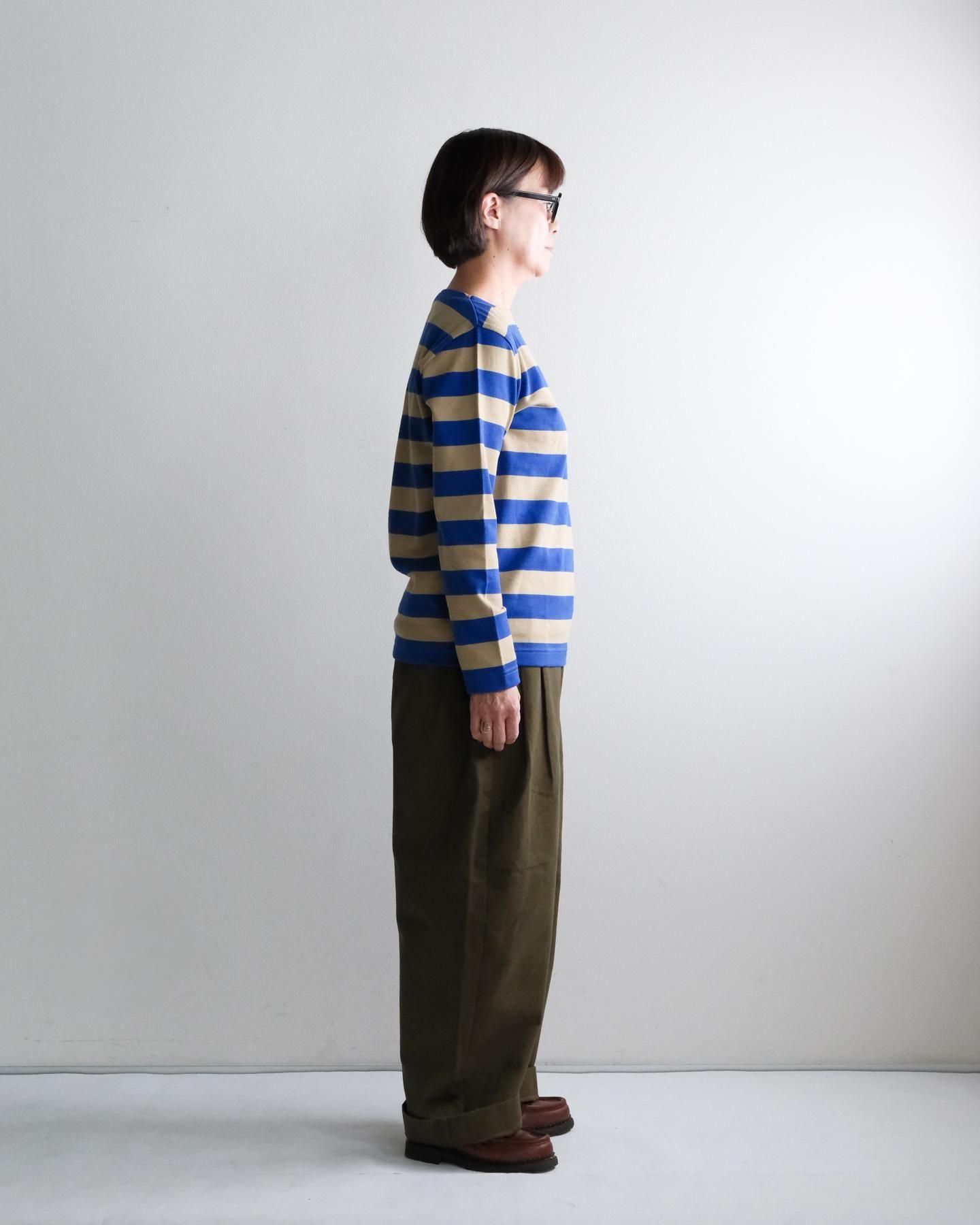 リブのないデザインにボーダーをあわせることで、ラフすぎず、ほどよい抜け感を楽しめます。