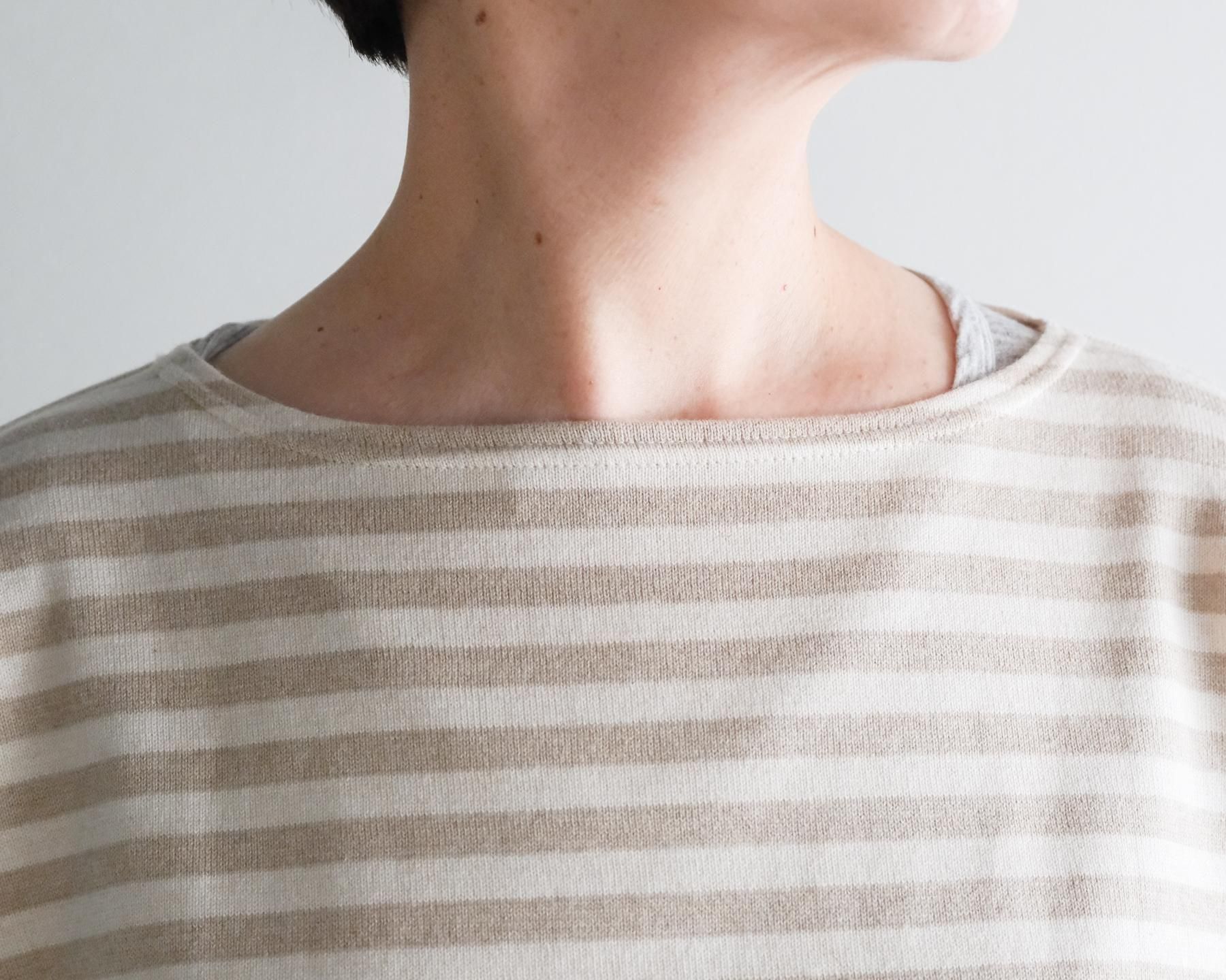 身幅がボートネックリラックスよりもすっきりとした作りの「ボートネック」の形。