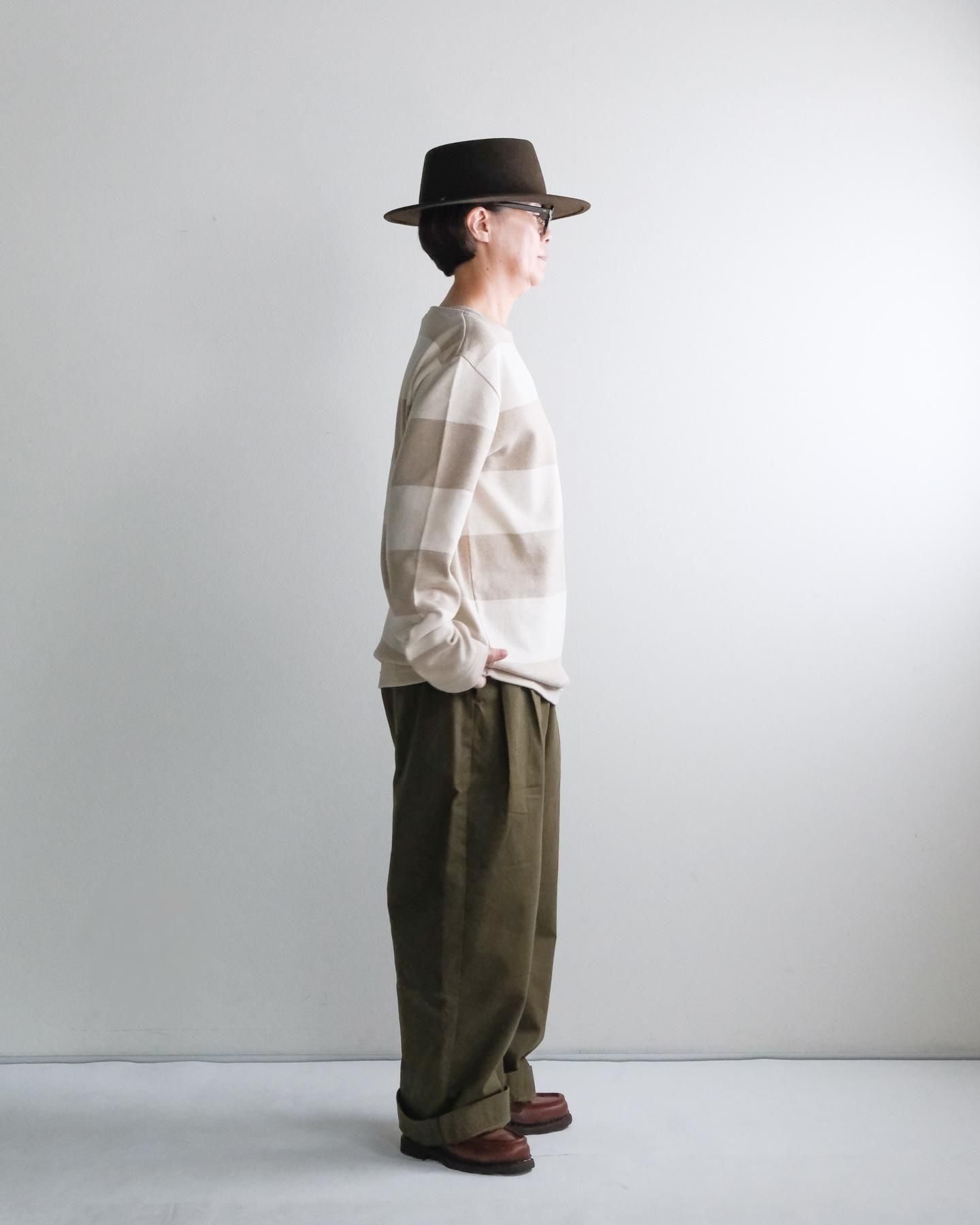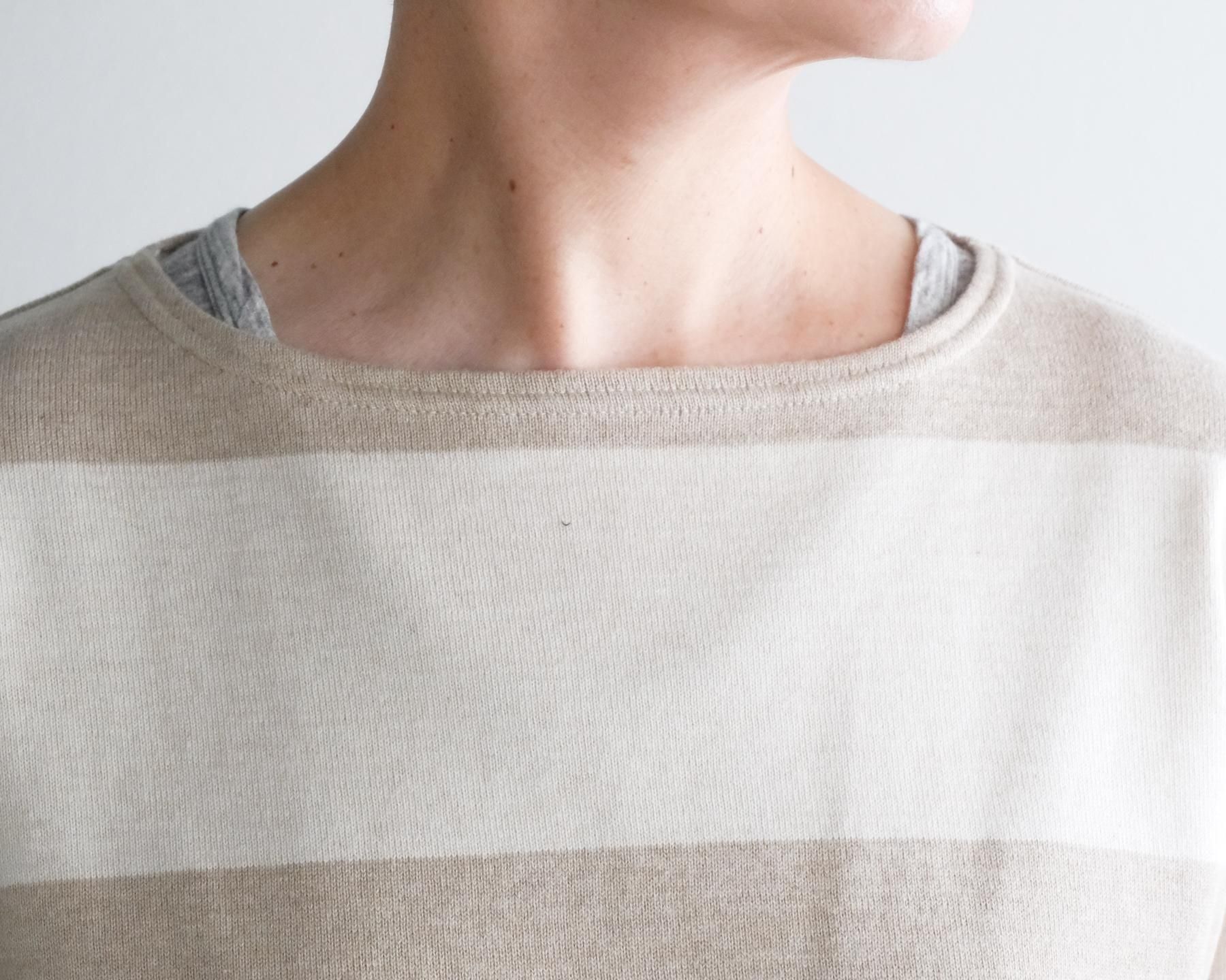 リブのないデザインにボーダーをあわせることで、ラフすぎず、ほどよい抜け感を楽しめます。