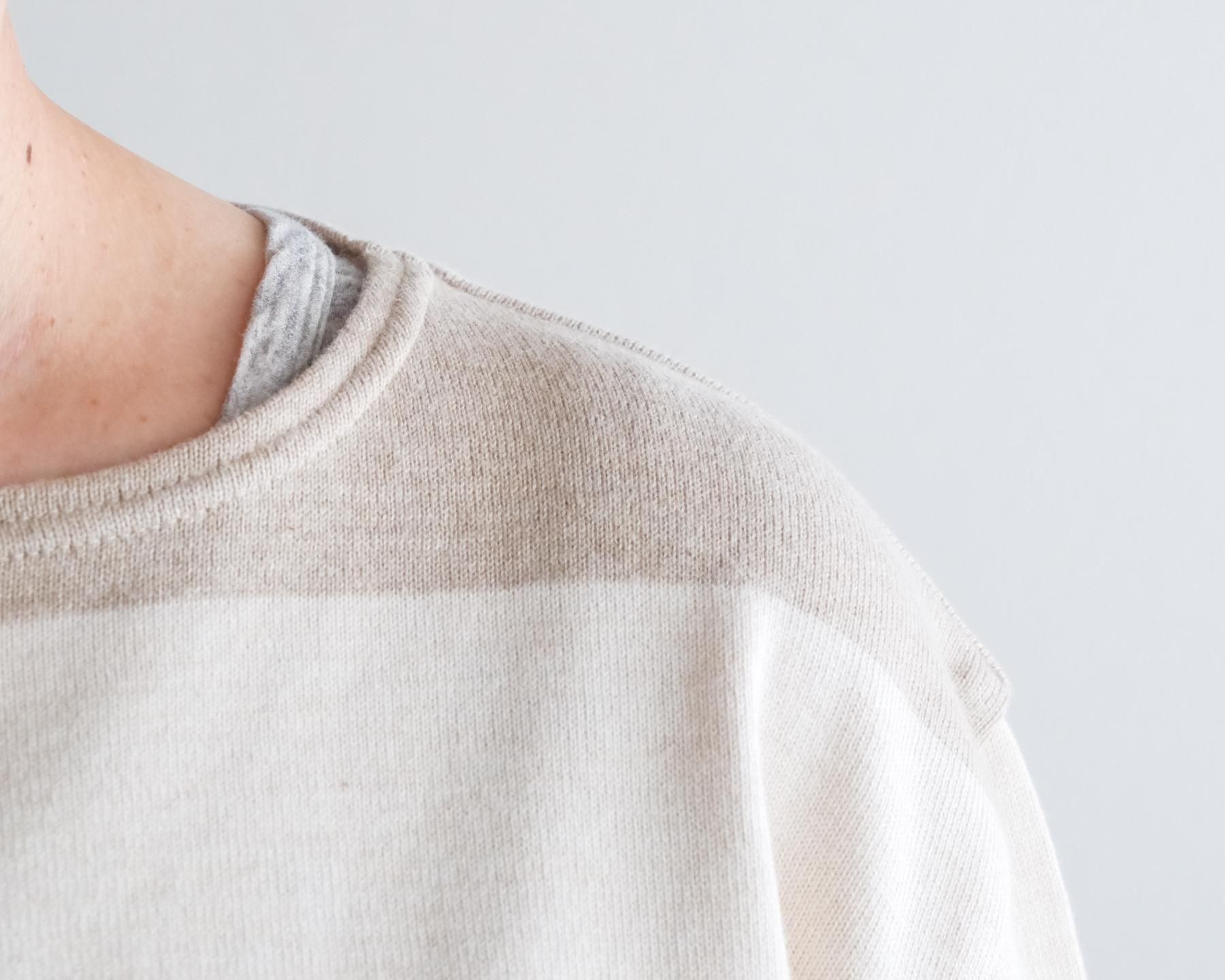 ニットの産地として知られる加茂市の技術と、顔の見えるものづくりのあたたかさから一枚のボーダーはできているのです。
