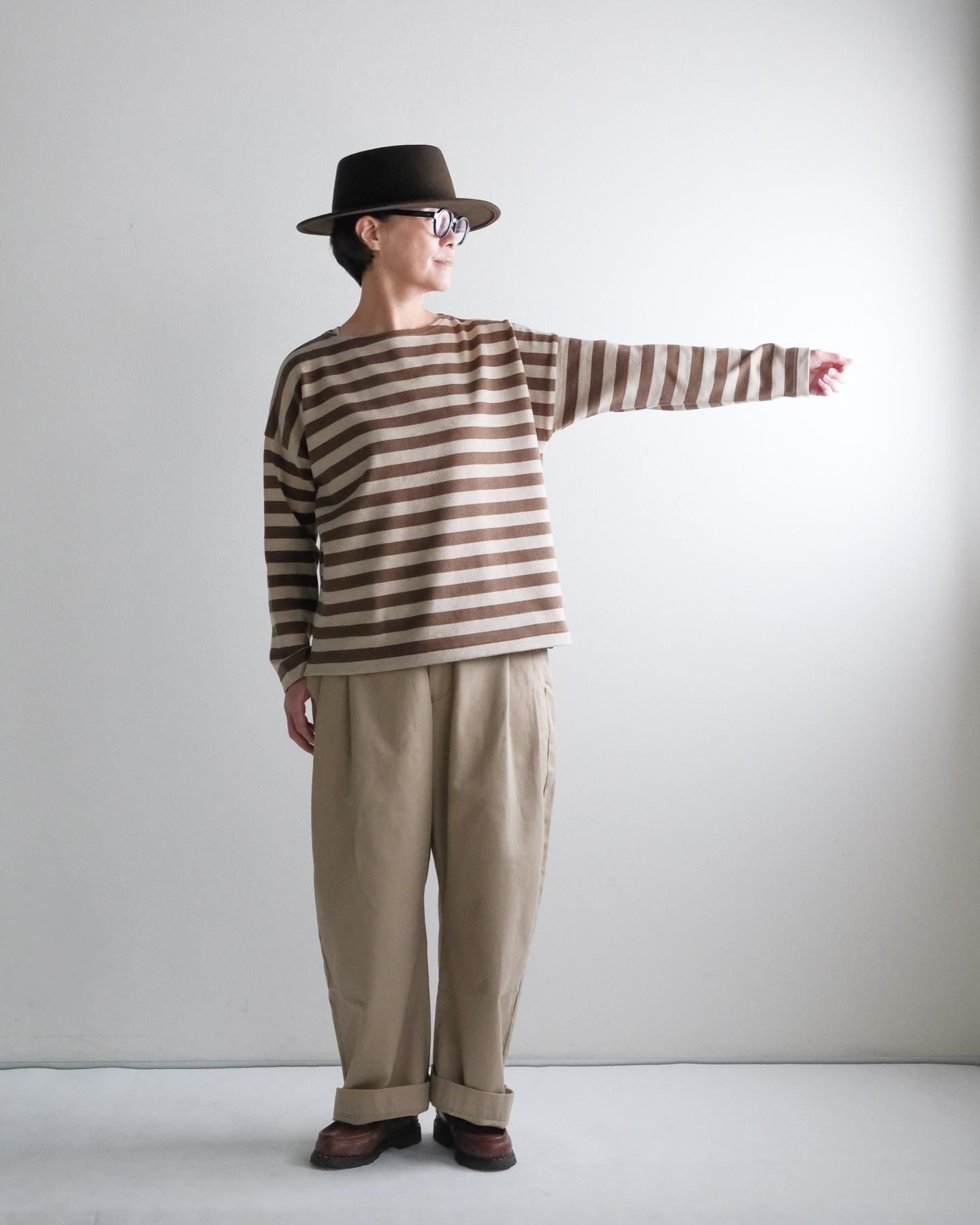 着丈を少し長めにつくることで、ラフな印象のなかに上品さを感じる大人のためのボーダーです。