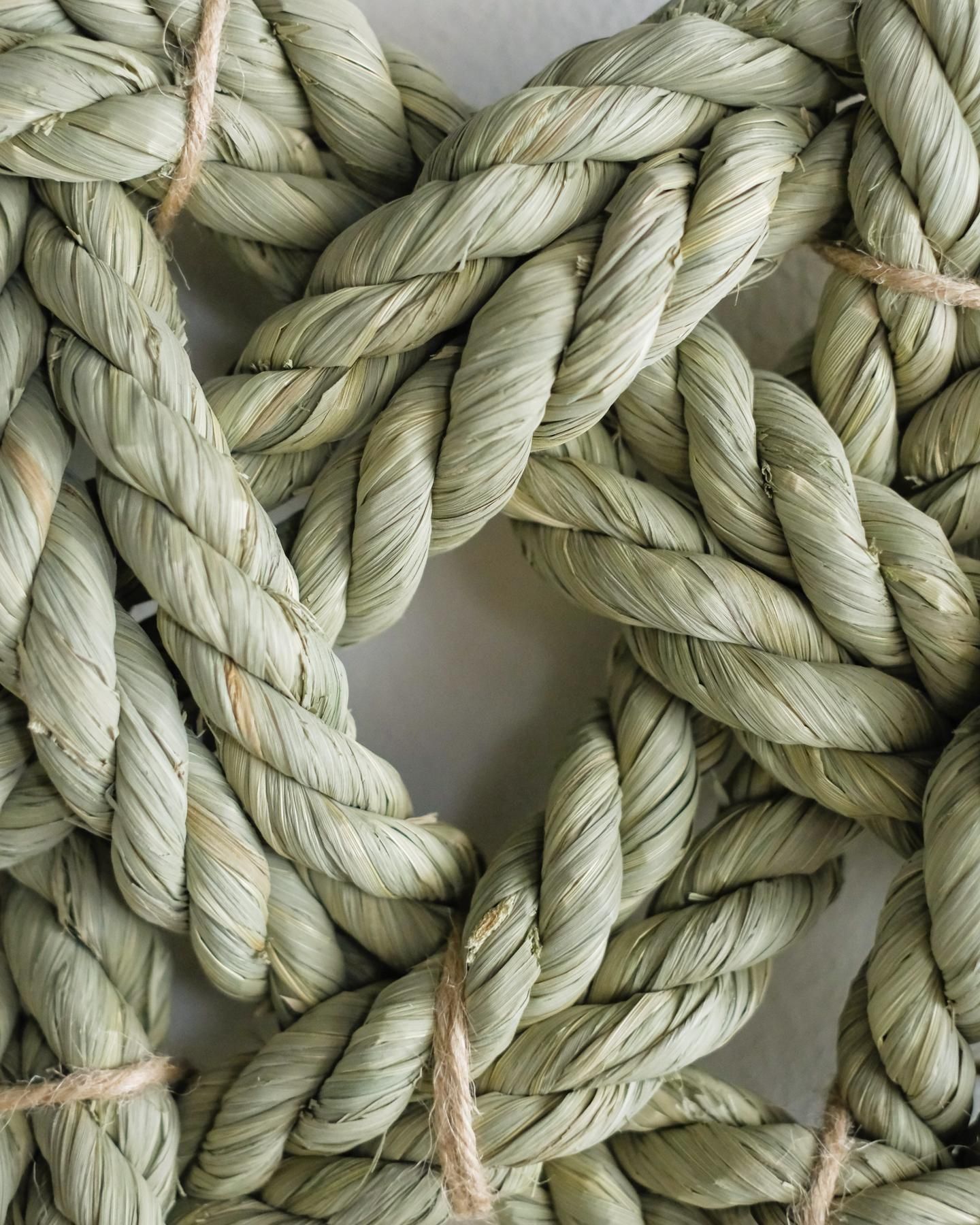 ひとつひとつ丁寧に手でより合わせて作る縄の、素朴な美しさとゆらぎ。