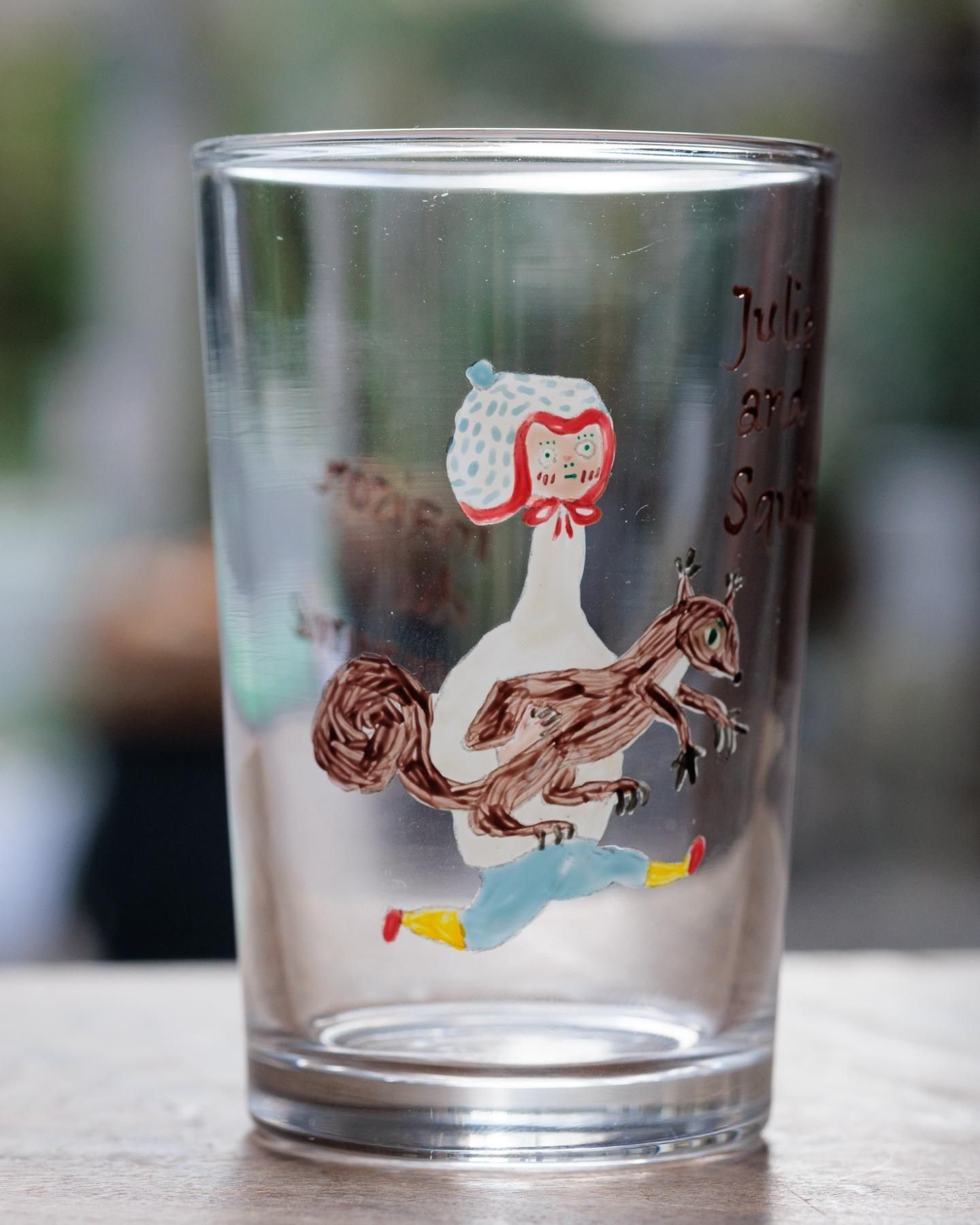 日本の古いガラス瓶や、陶器、コップなどに絵を描いた作品やブローチをつくっています。