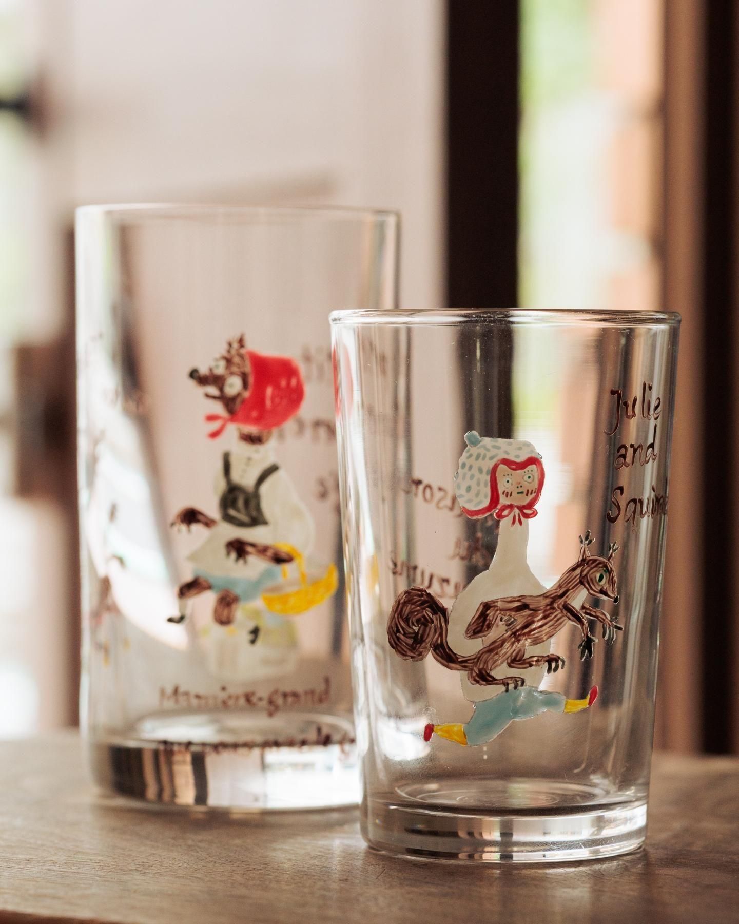 日本の古いガラス瓶や、陶器、コップなどに絵を描いた作品やブローチをつくっています。