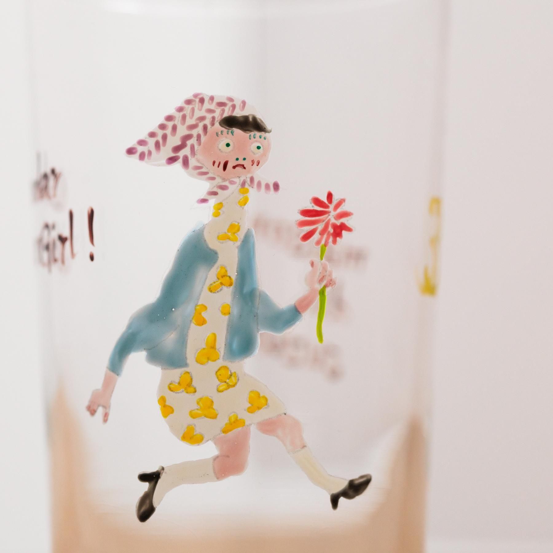 日本の古いガラス瓶や、陶器、コップなどに絵を描いた作品やブローチをつくっています。
