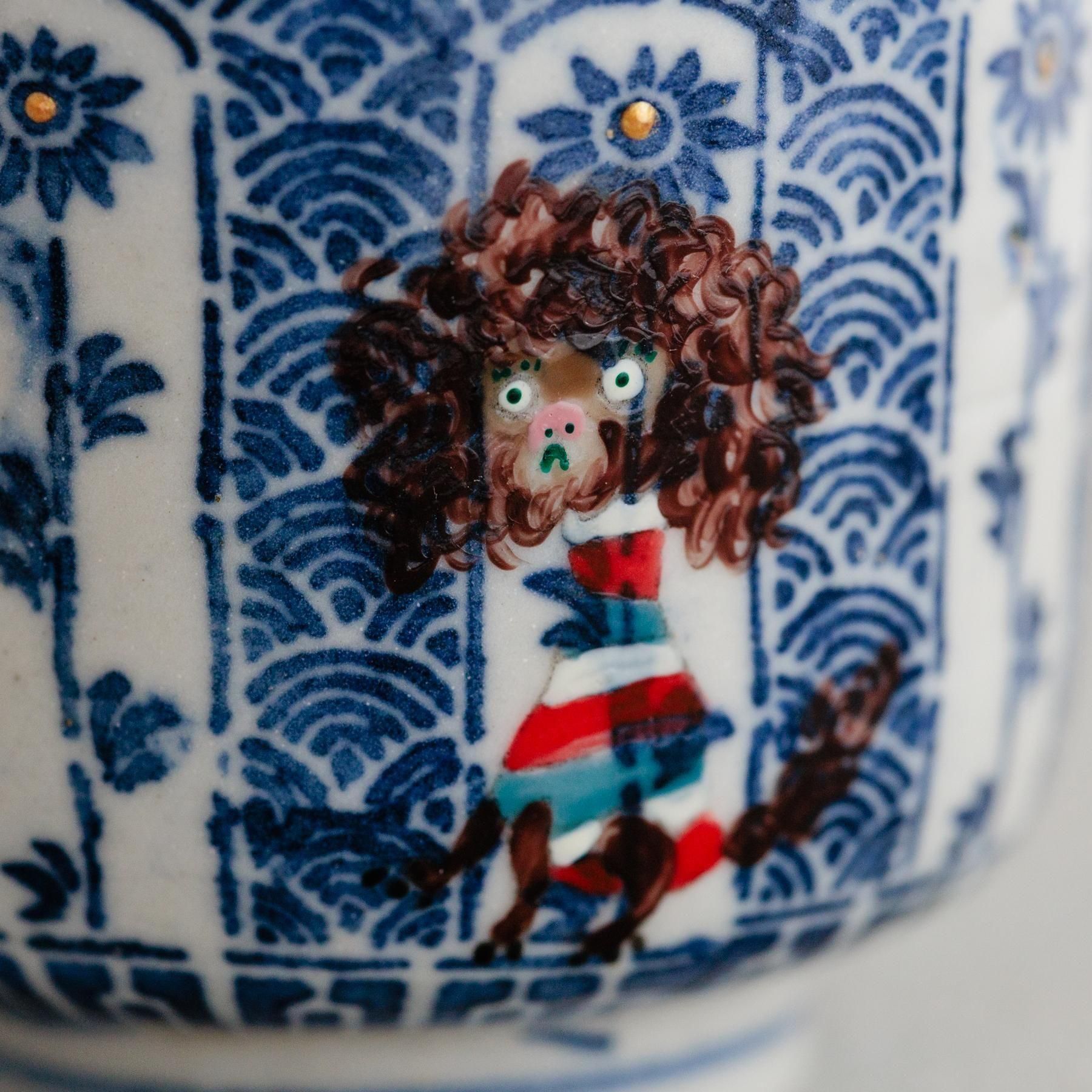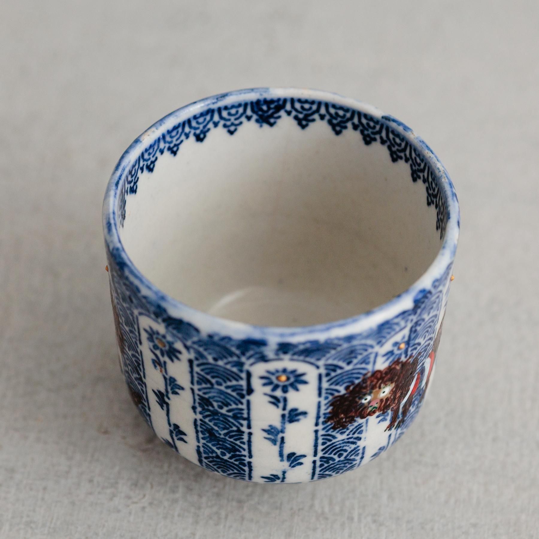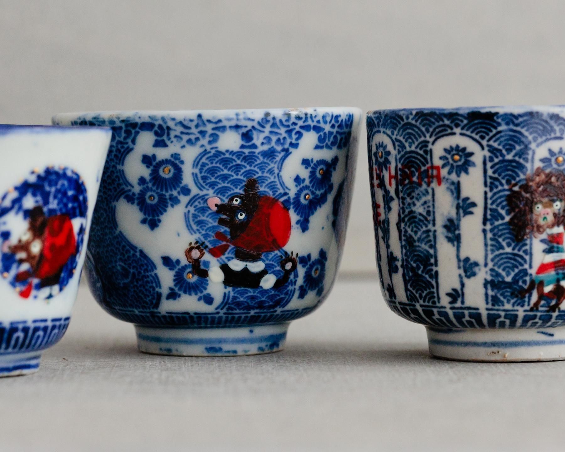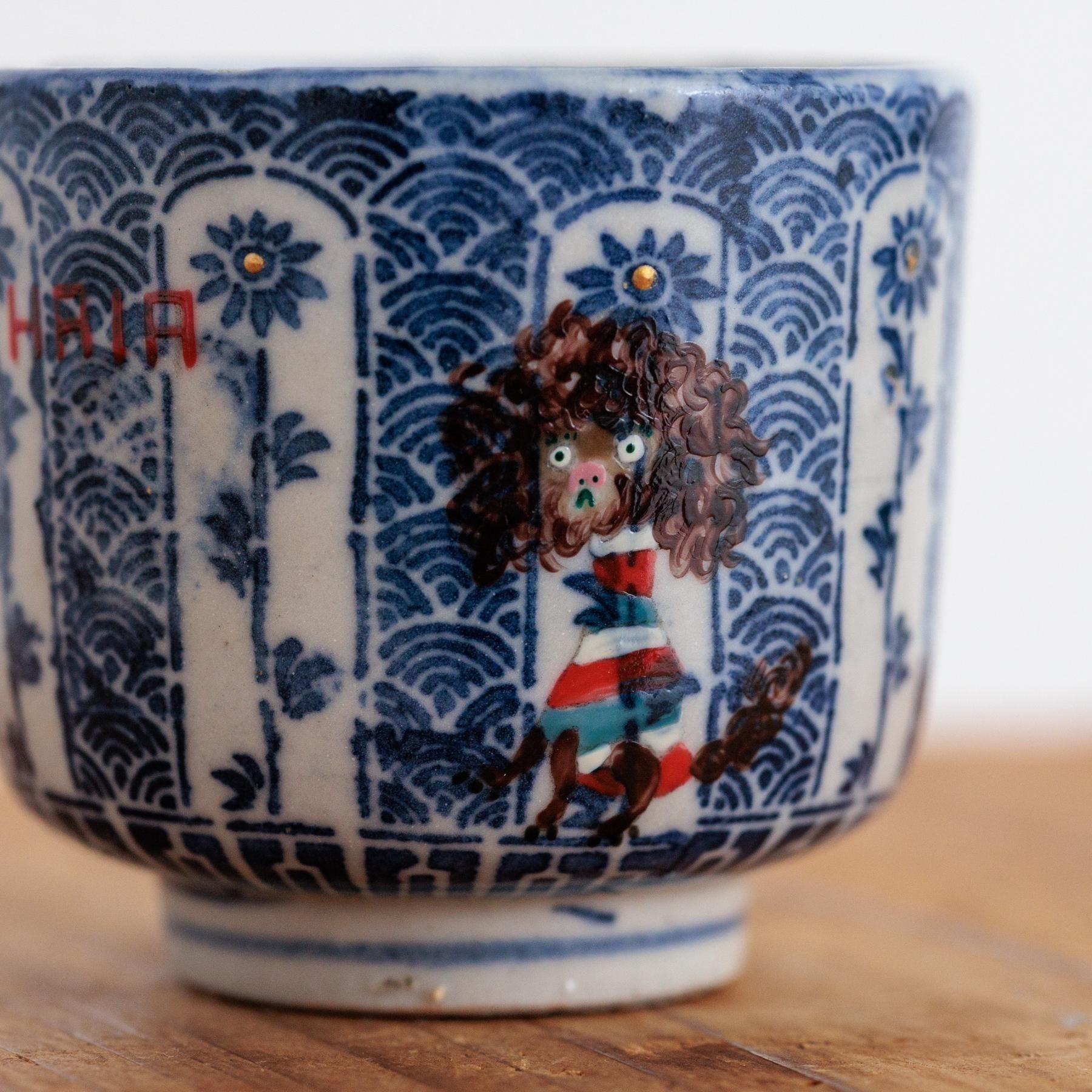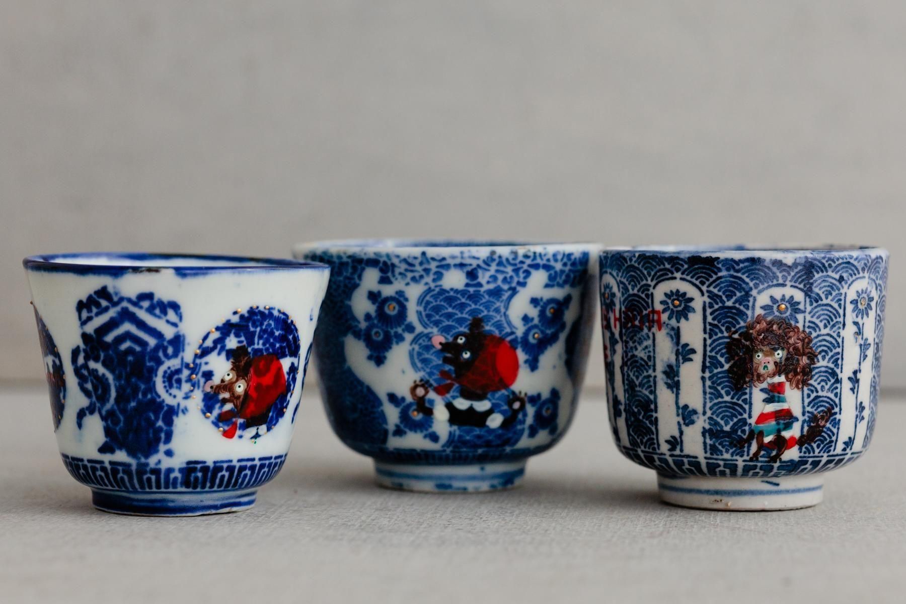 日本の古いガラス瓶や、陶器、コップなどに絵を描いた作品やブローチをつくっています。
