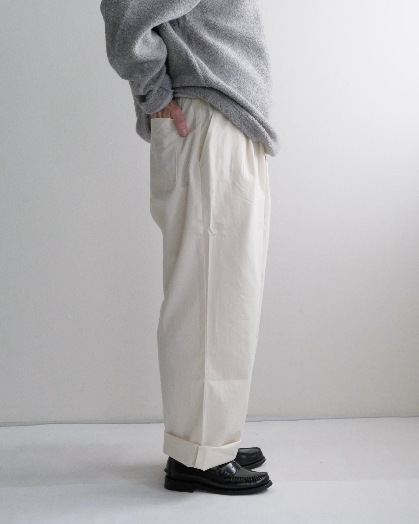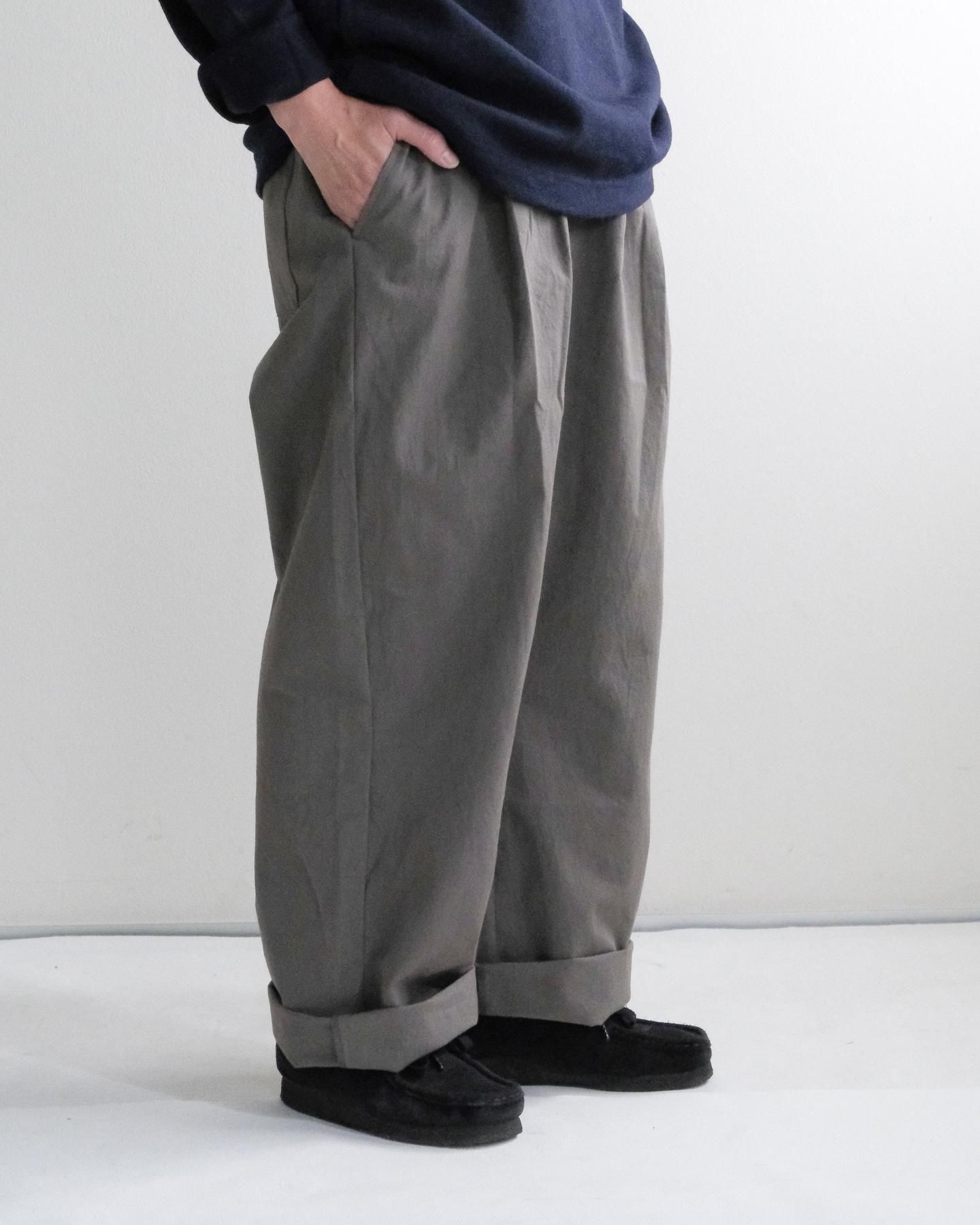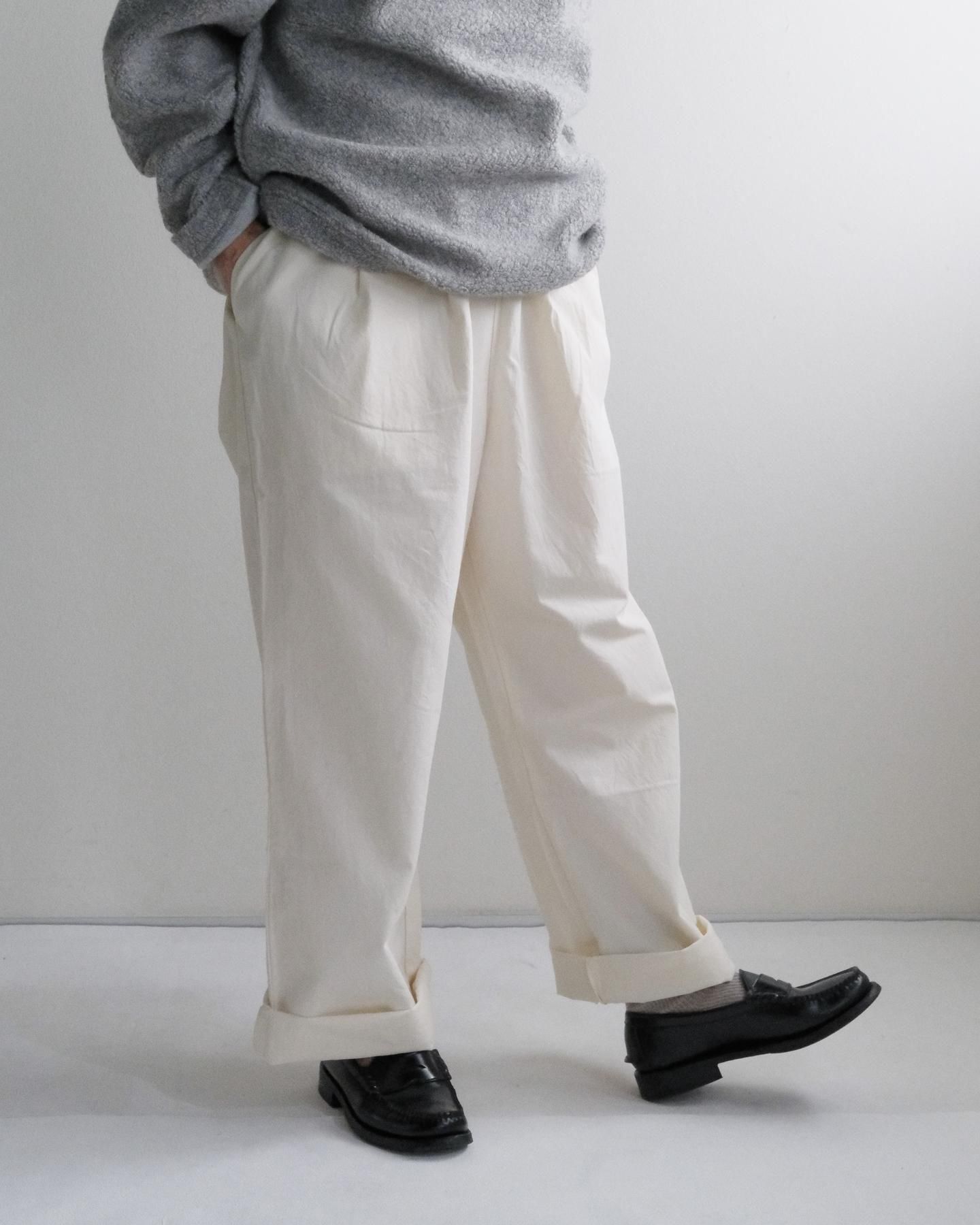 ゆったりとしたストレートシルエットに、ツータックが入ったセミワイドパンツ。