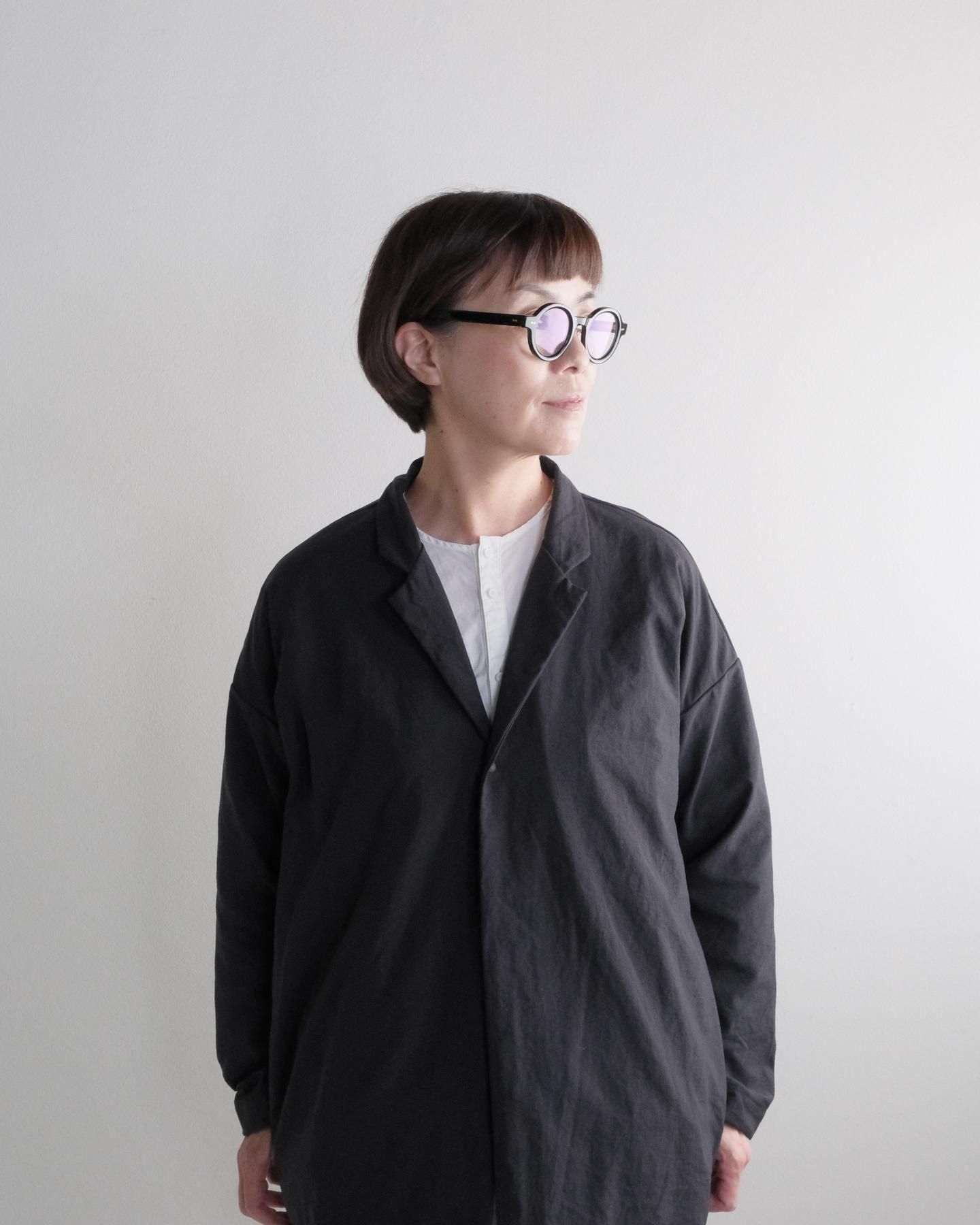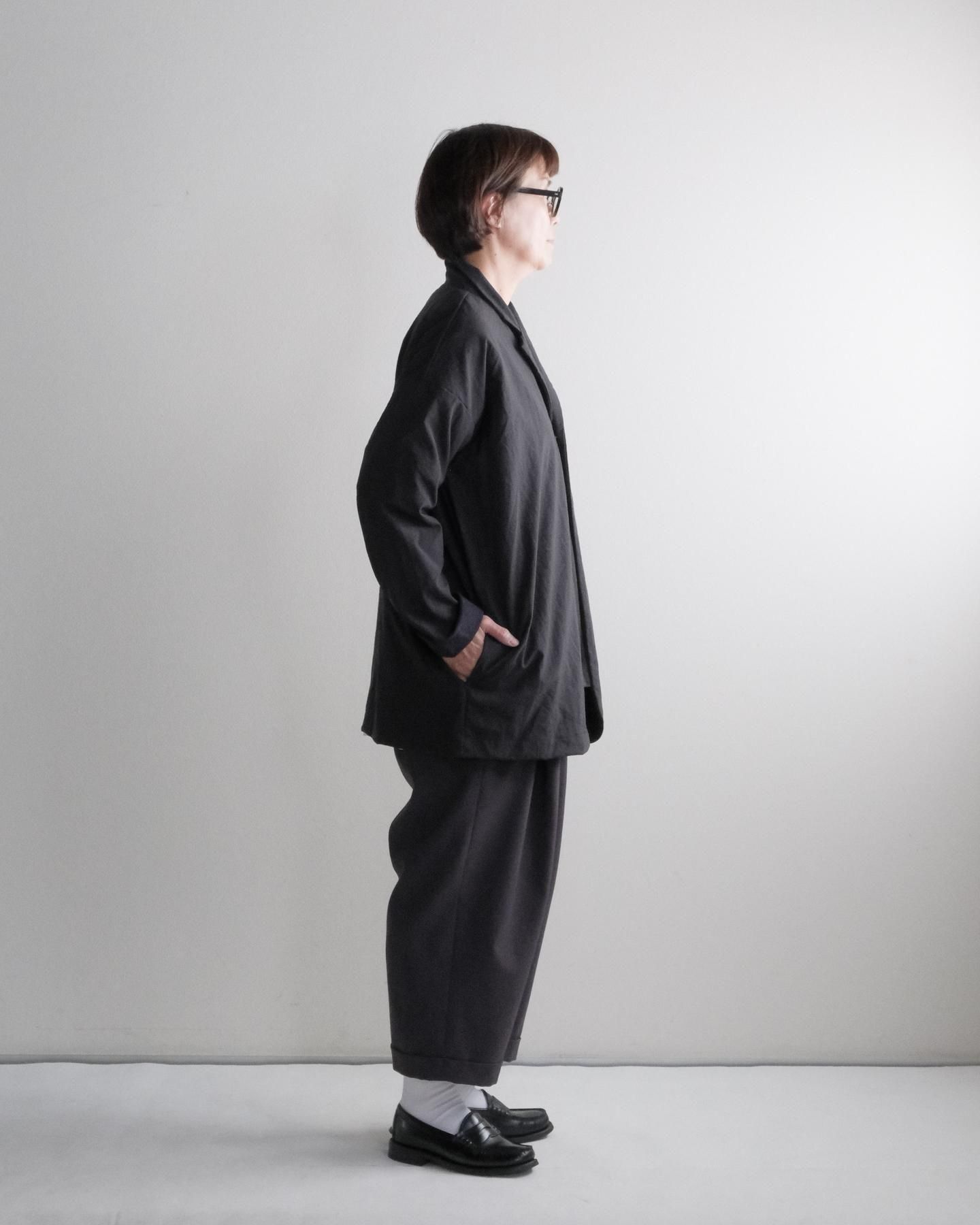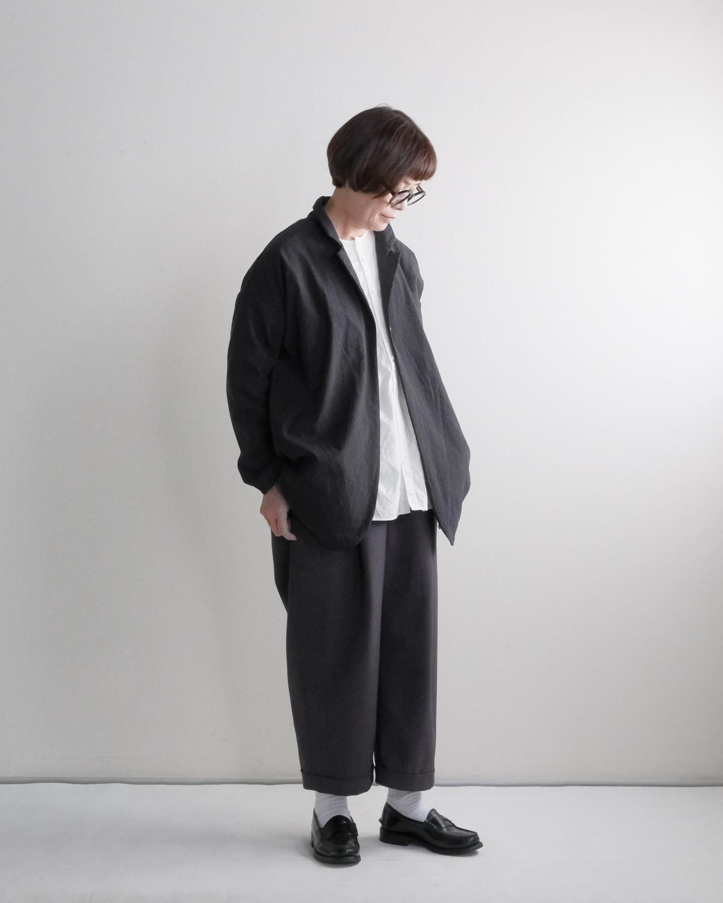 きれいなテーラードカラー、ラウンドした裾、ゆったりシルエット、ドロップショルダー。