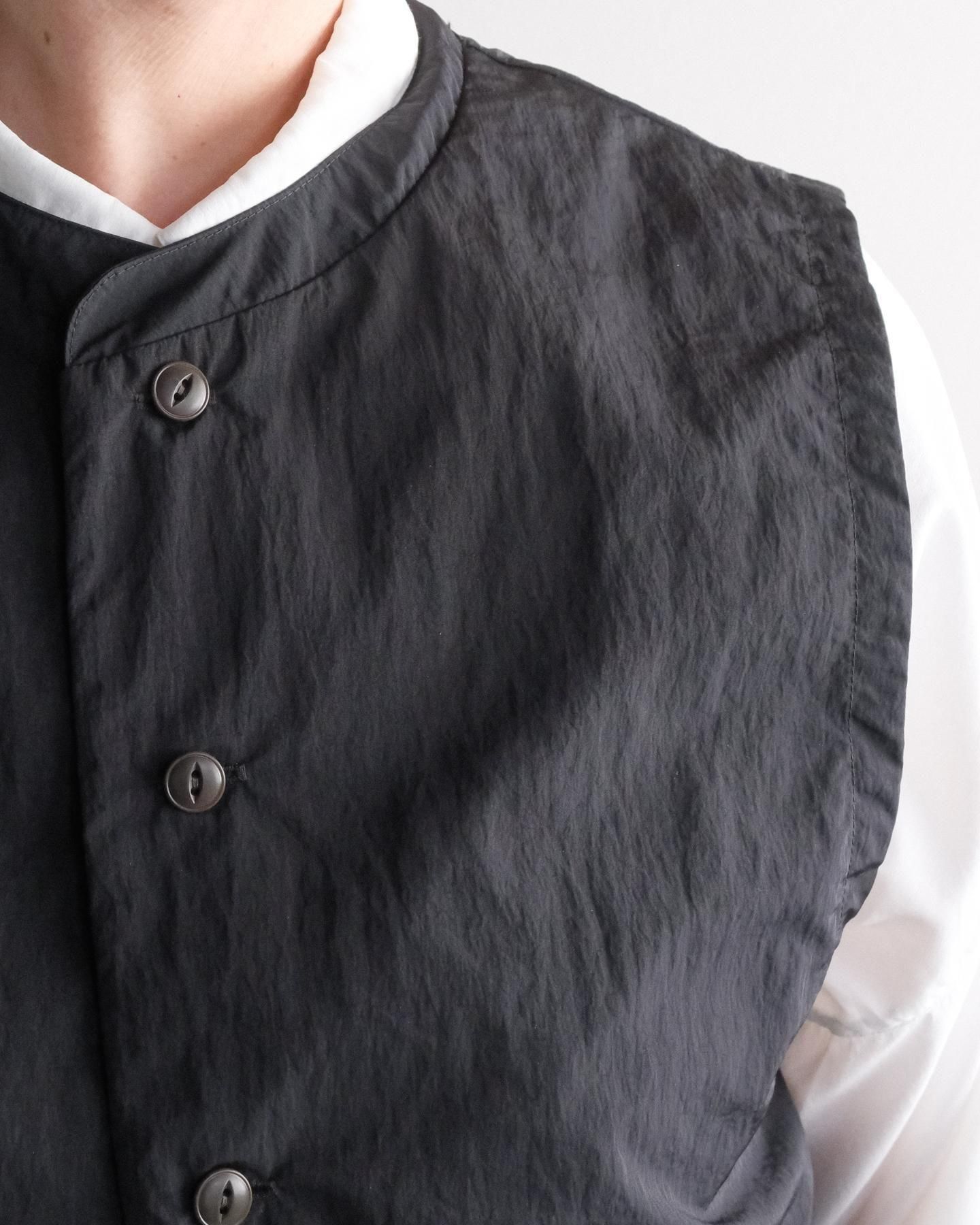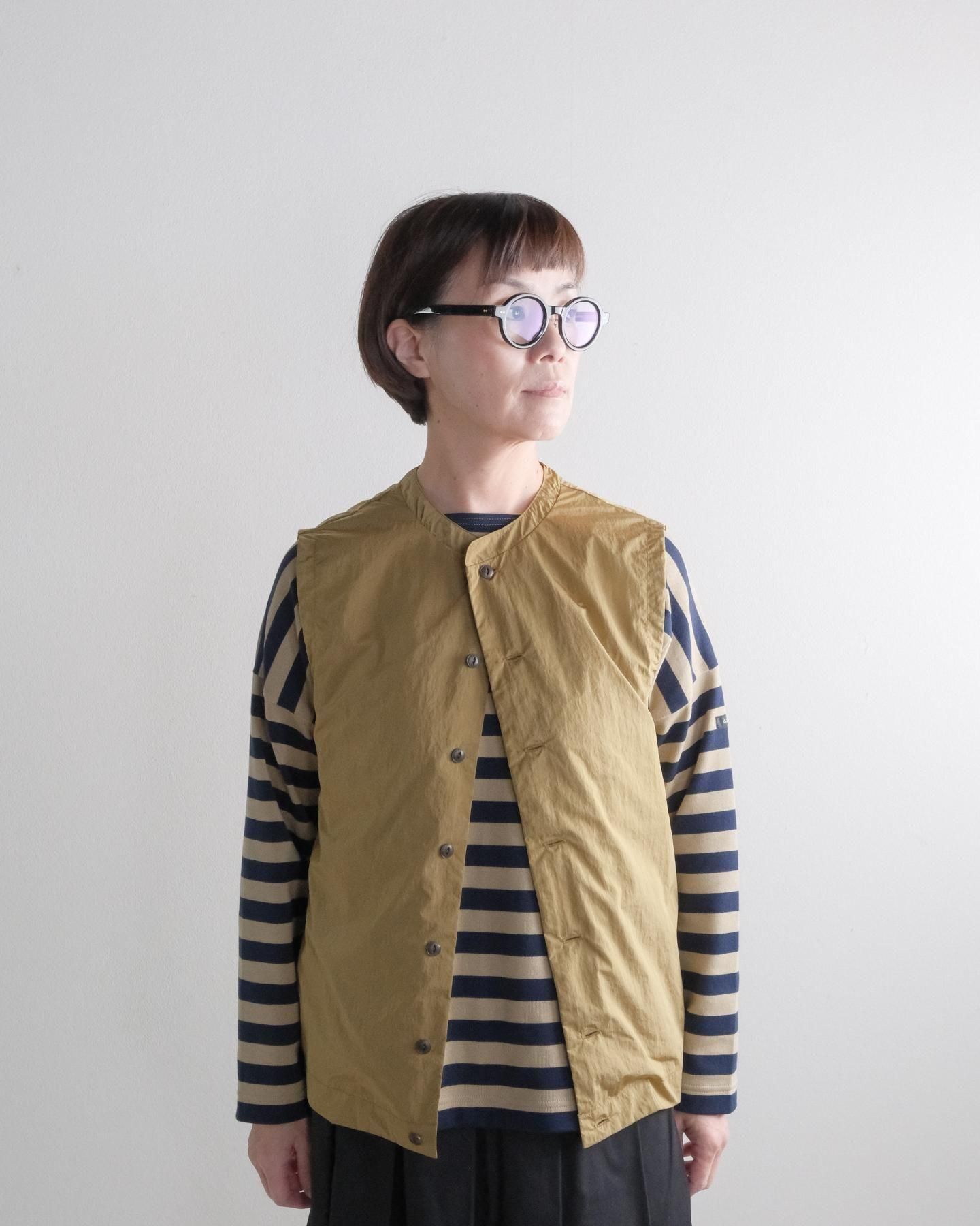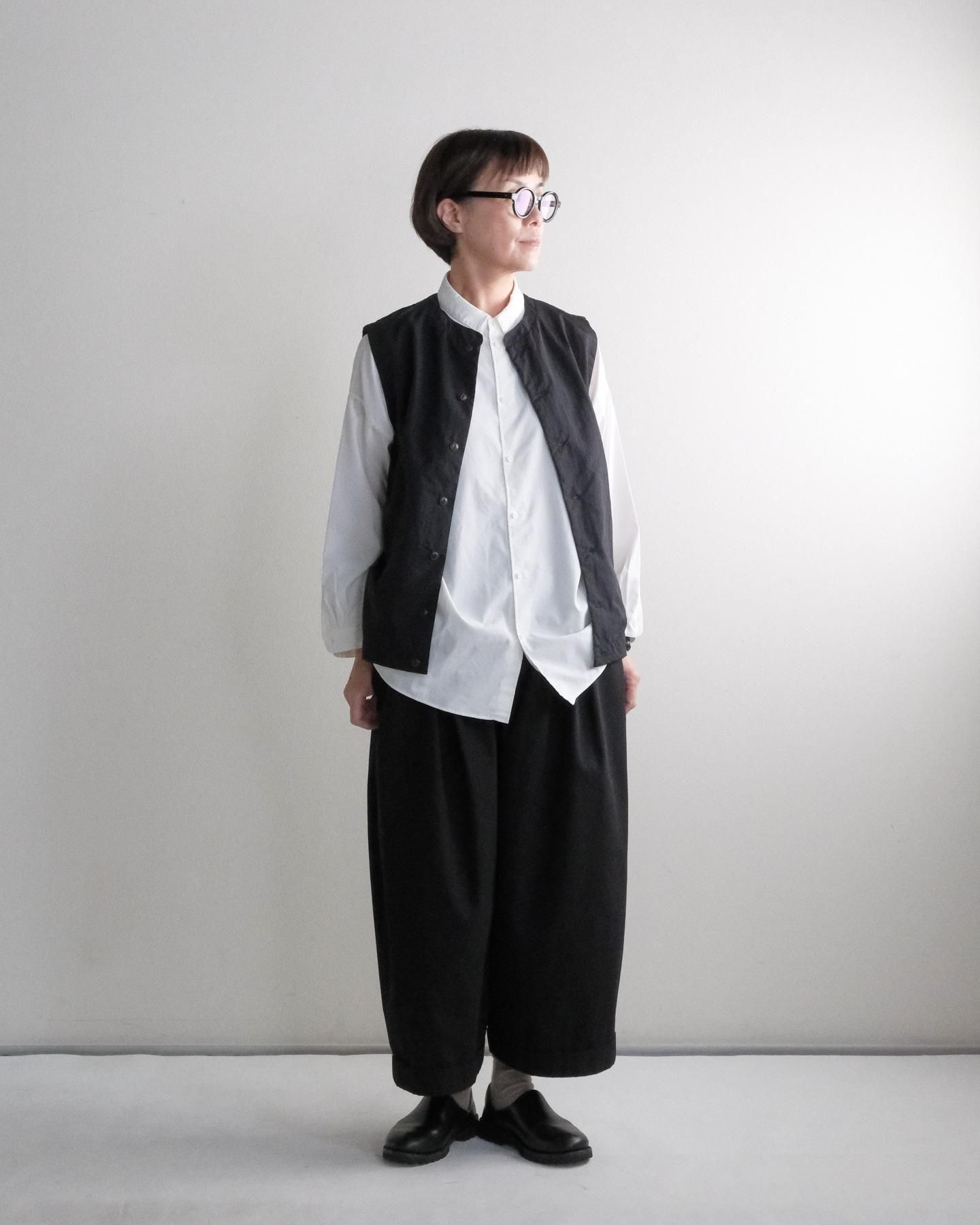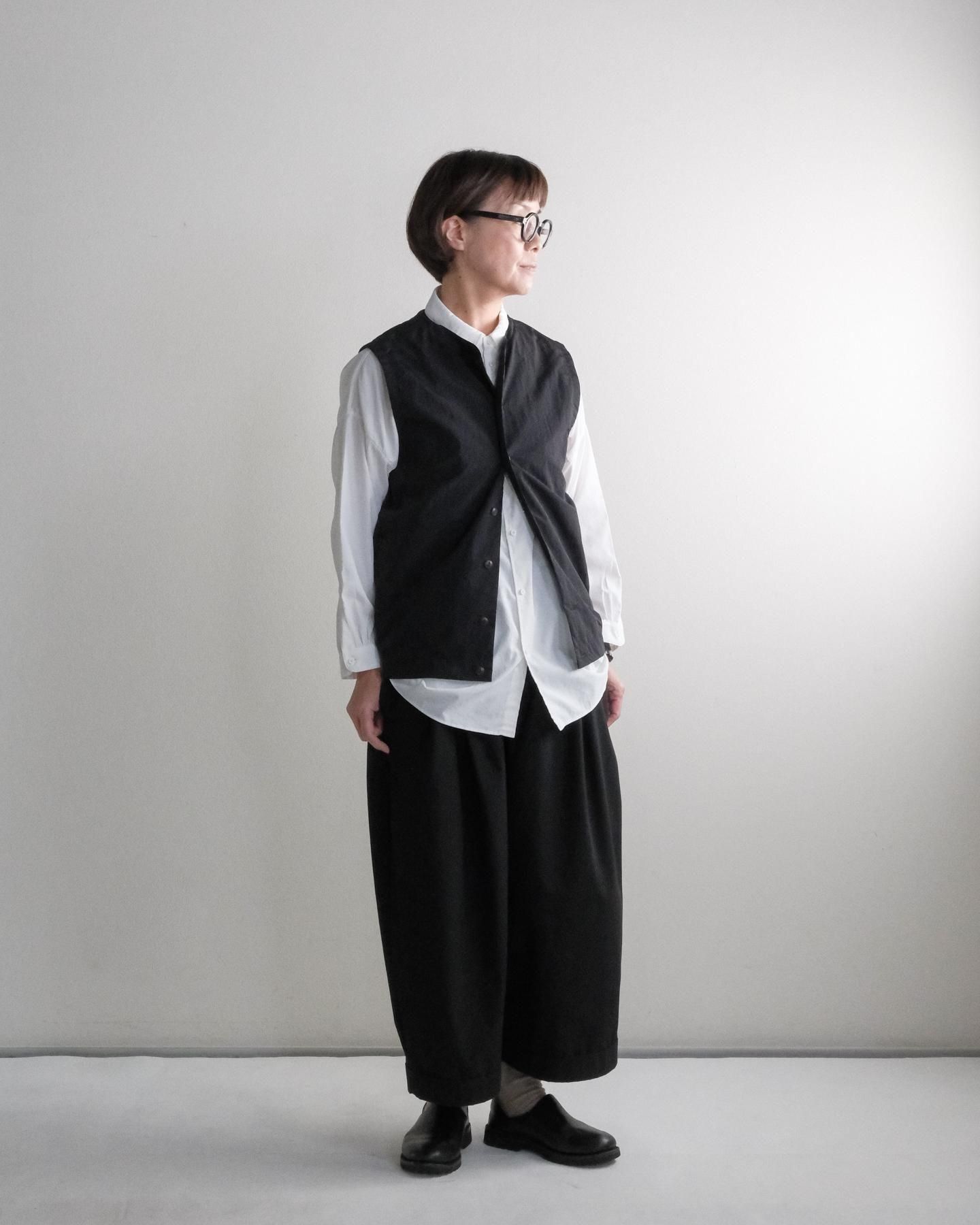 ゆったりとしたサイズ感の前開きベスト。