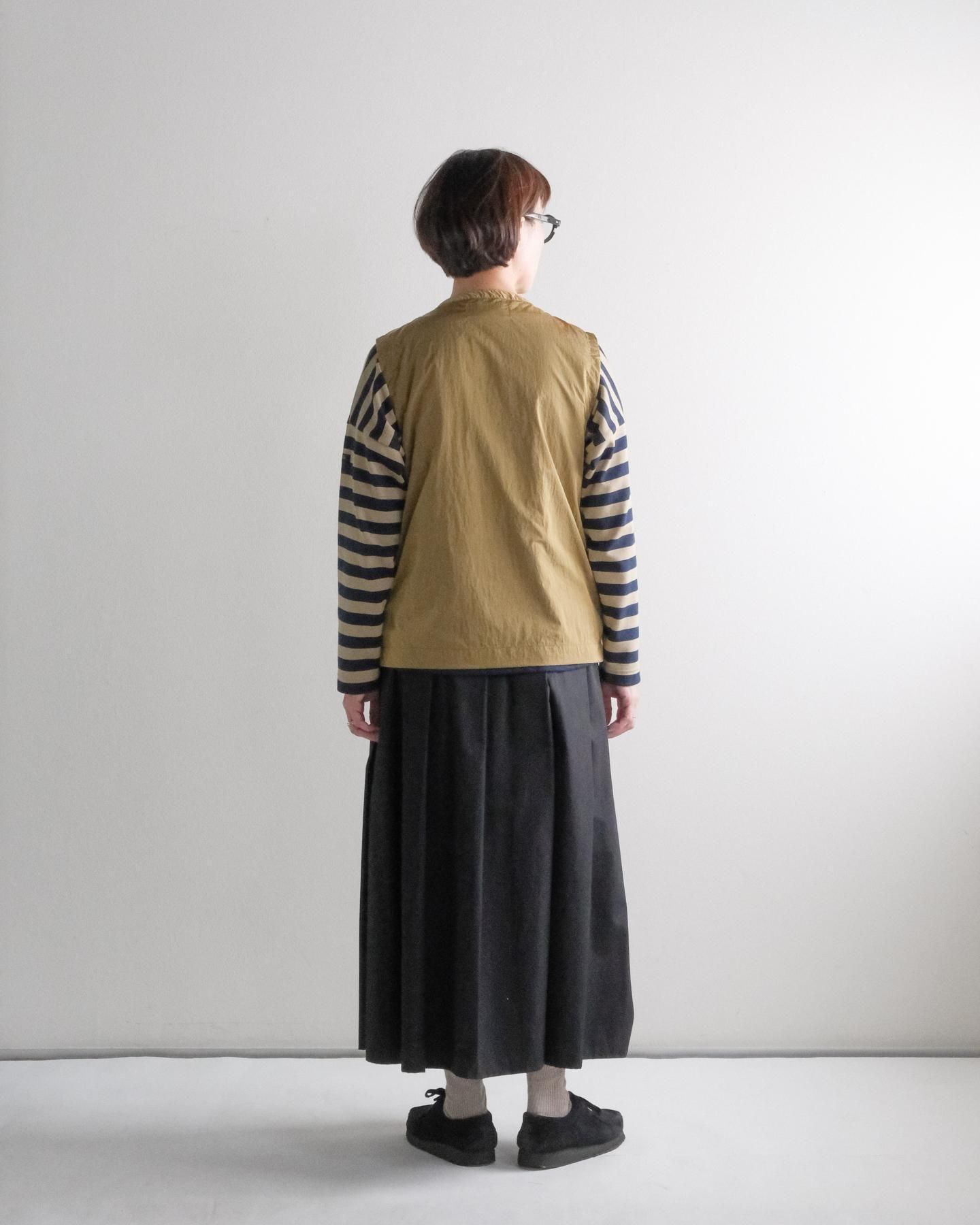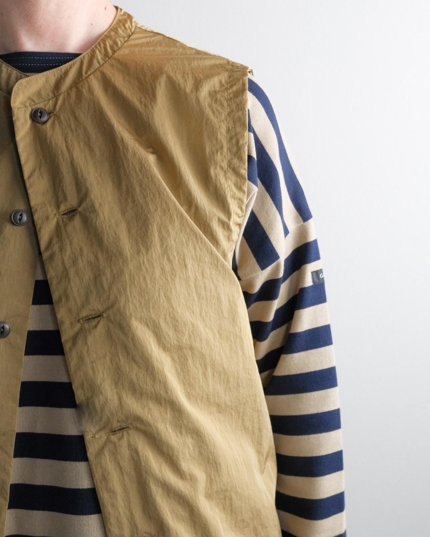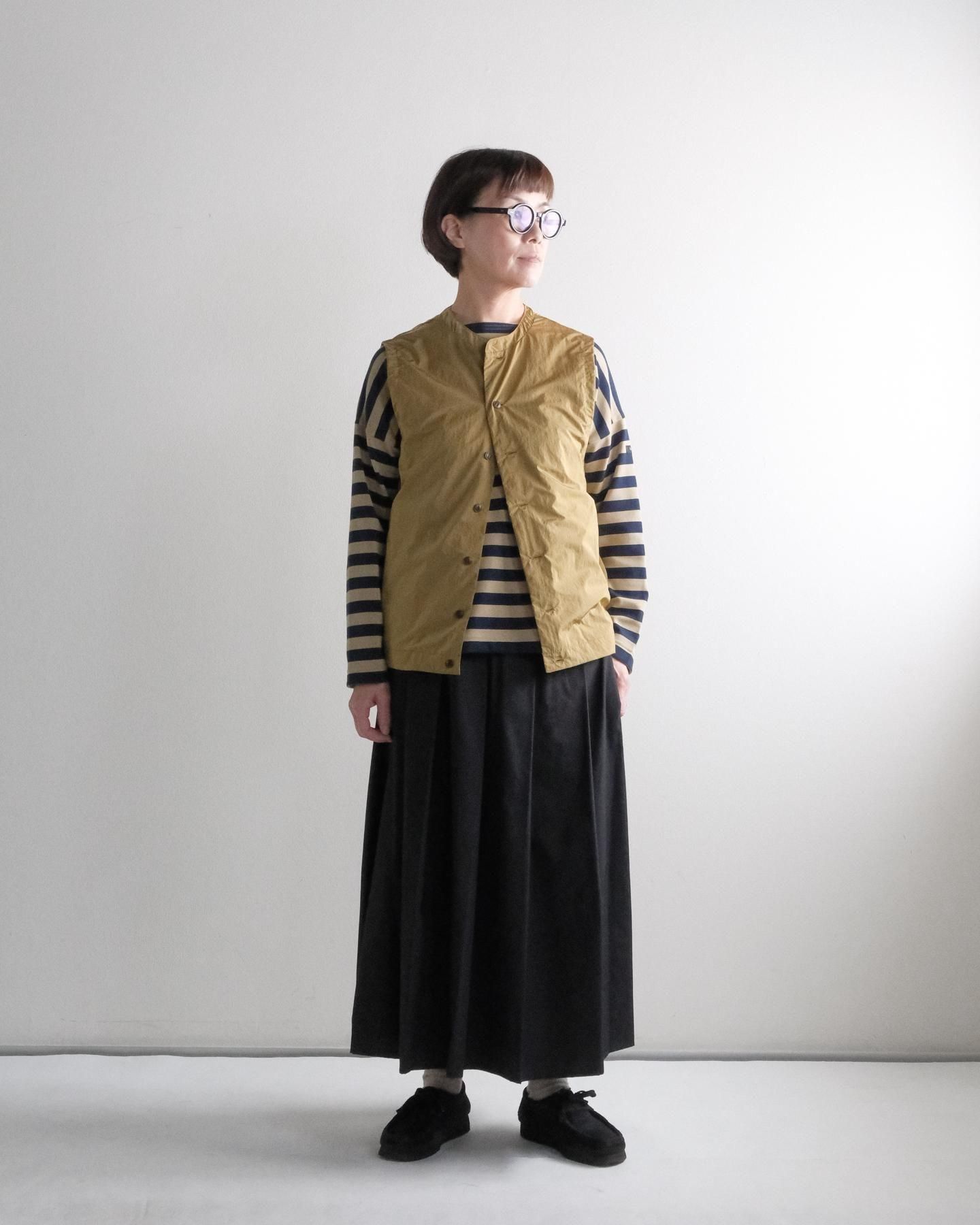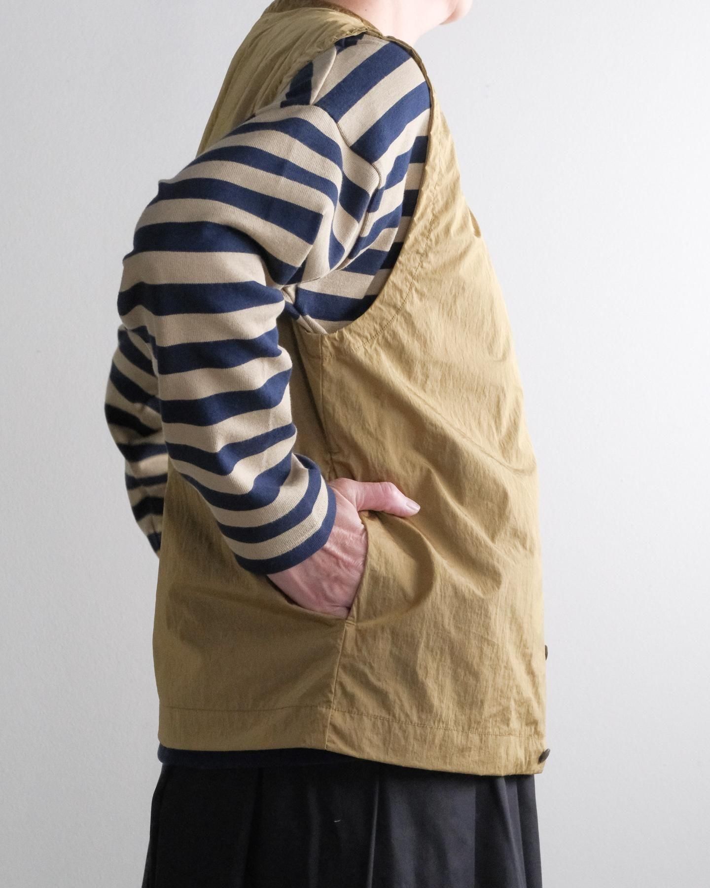 ゆったりとしたサイズ感の前開きベスト。