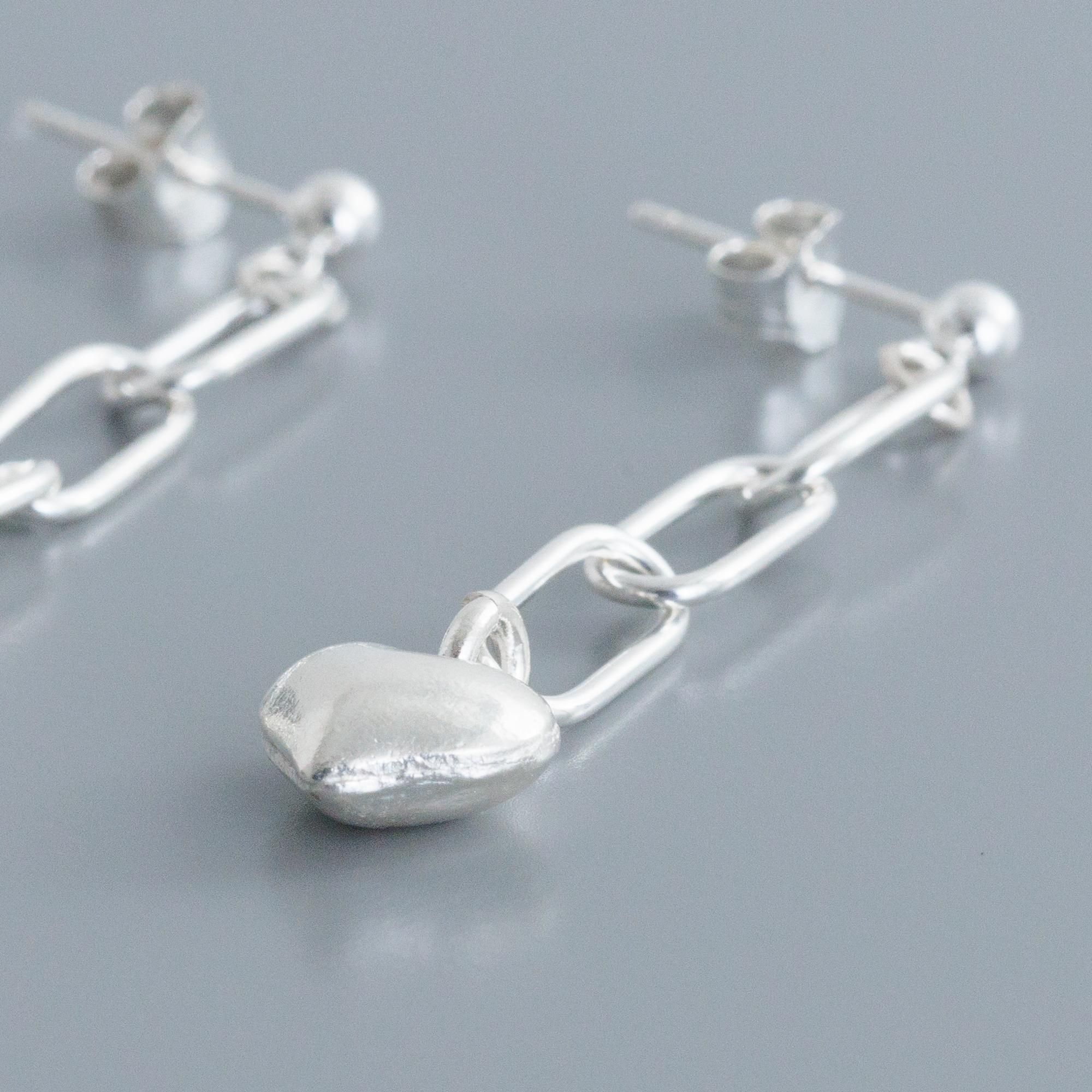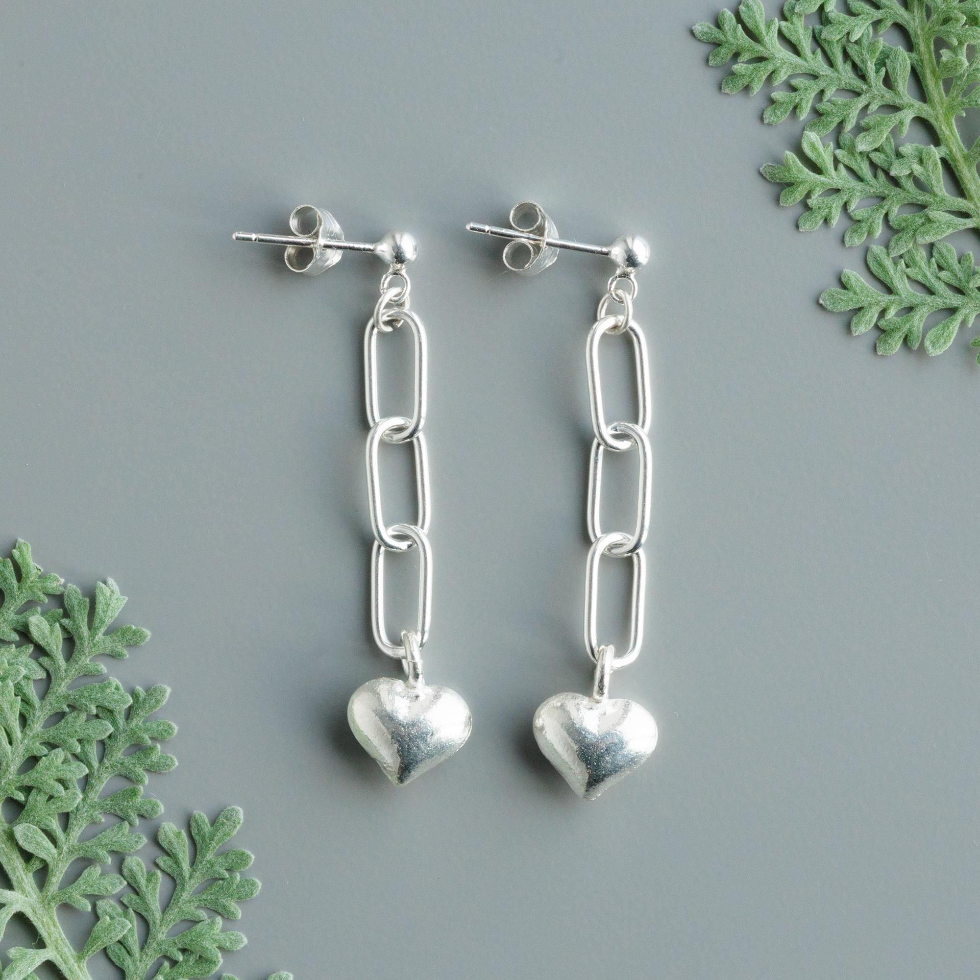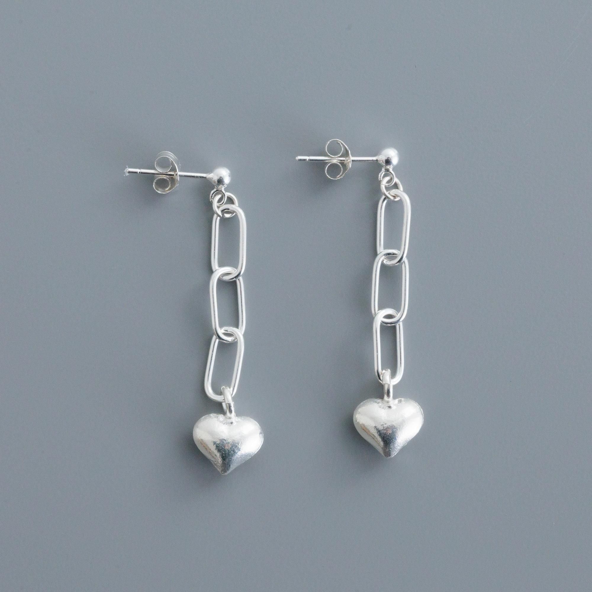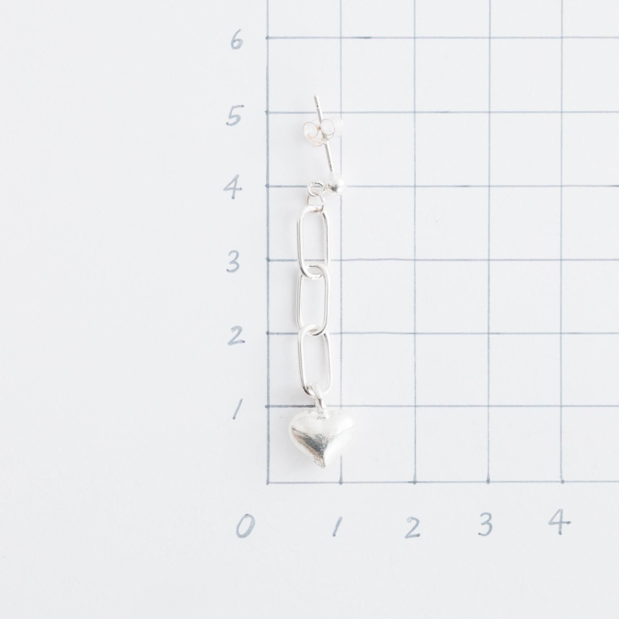 長さのあるチェーンに、ぷっくりとしたハートのモチーフがかわいらしく揺れる「ハートチェーン ピアス」。