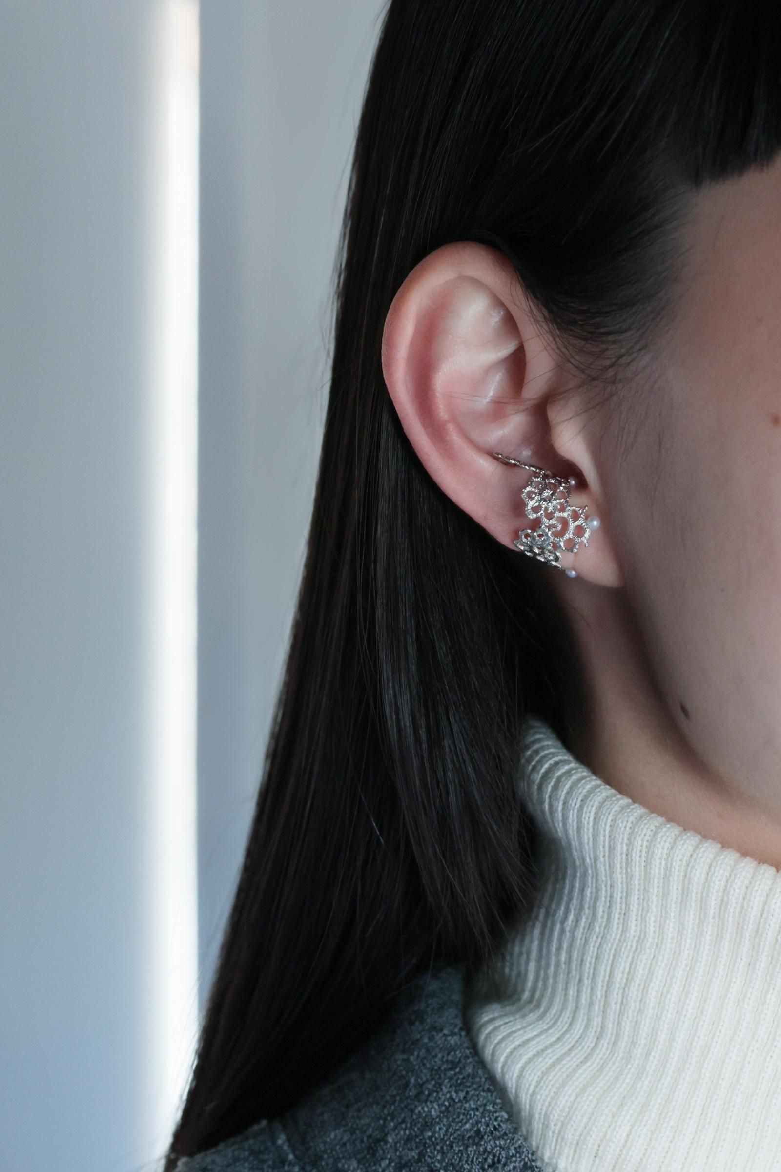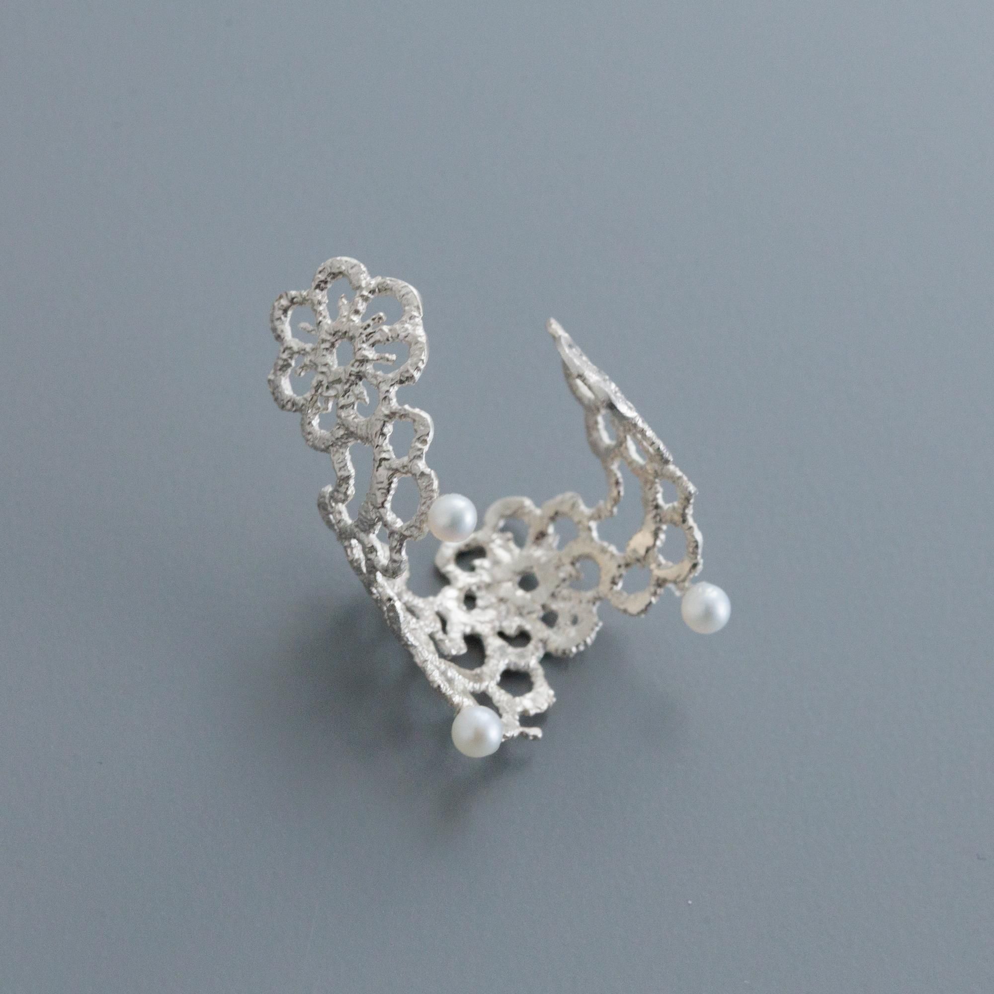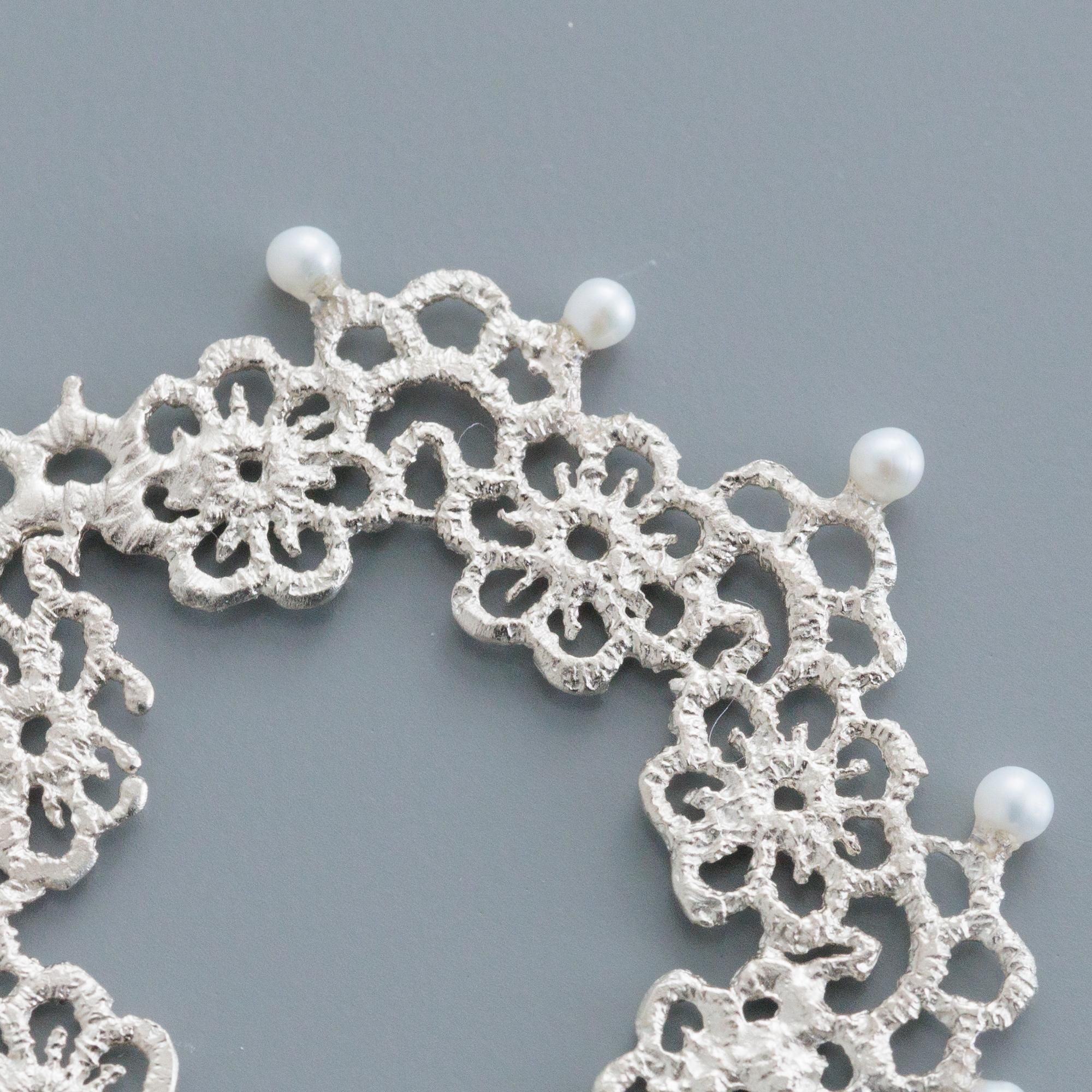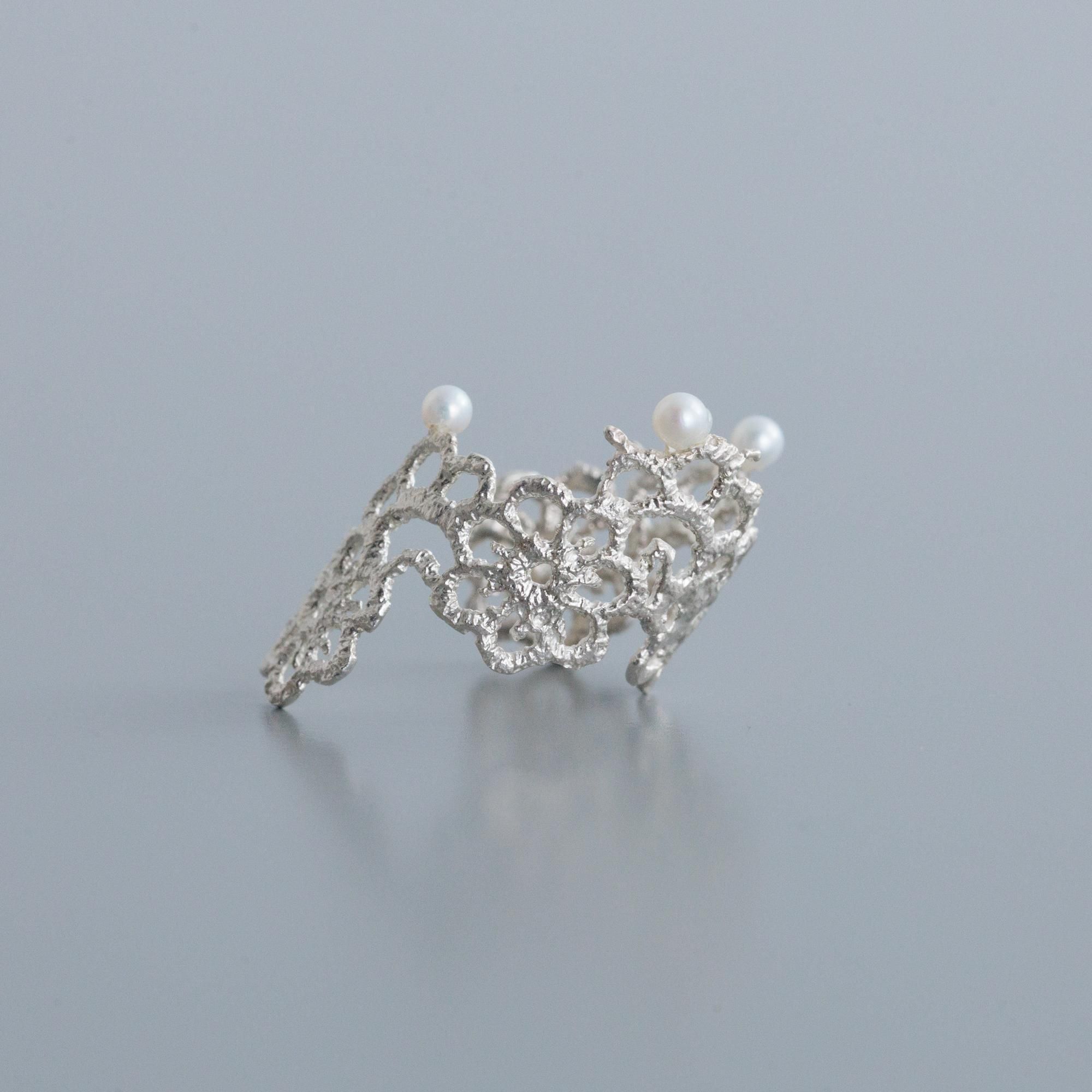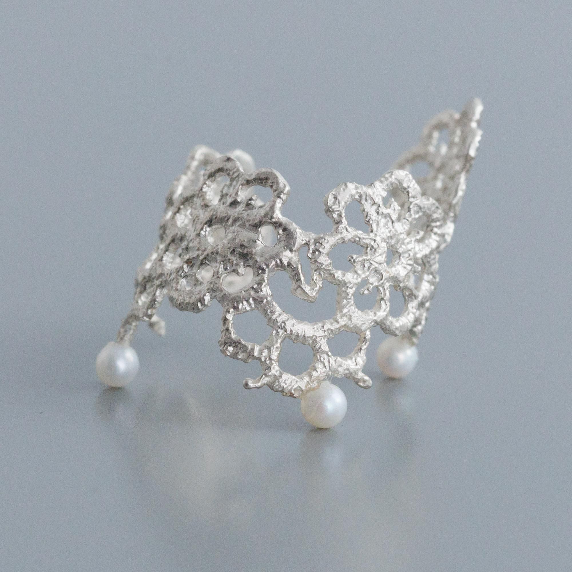 優美なレースの模様と、金属のやわらかなきらめきが合わさったアクセサリーは、