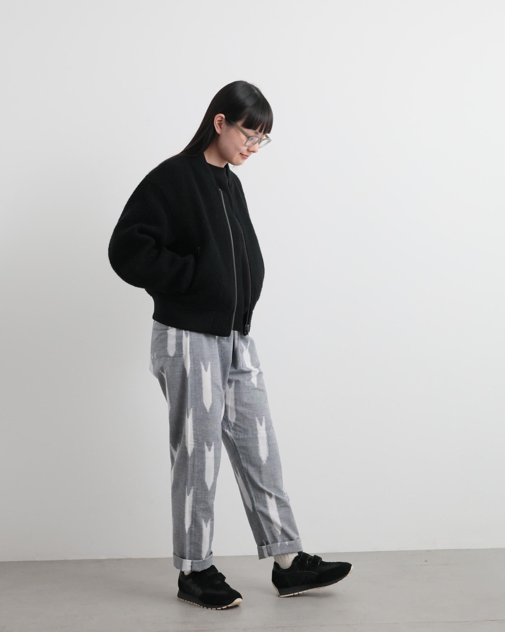 いつものトレーナーやセーターにも柄もんぺを合わせるだけで、個性のある自分だけのコーディネートに。
