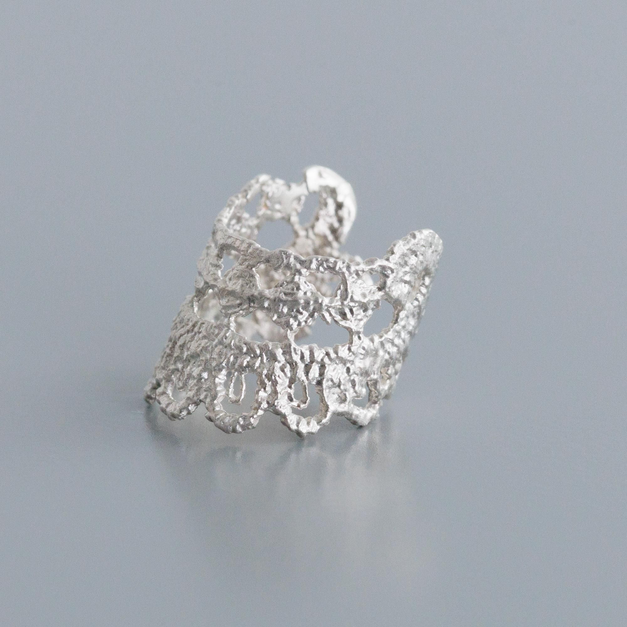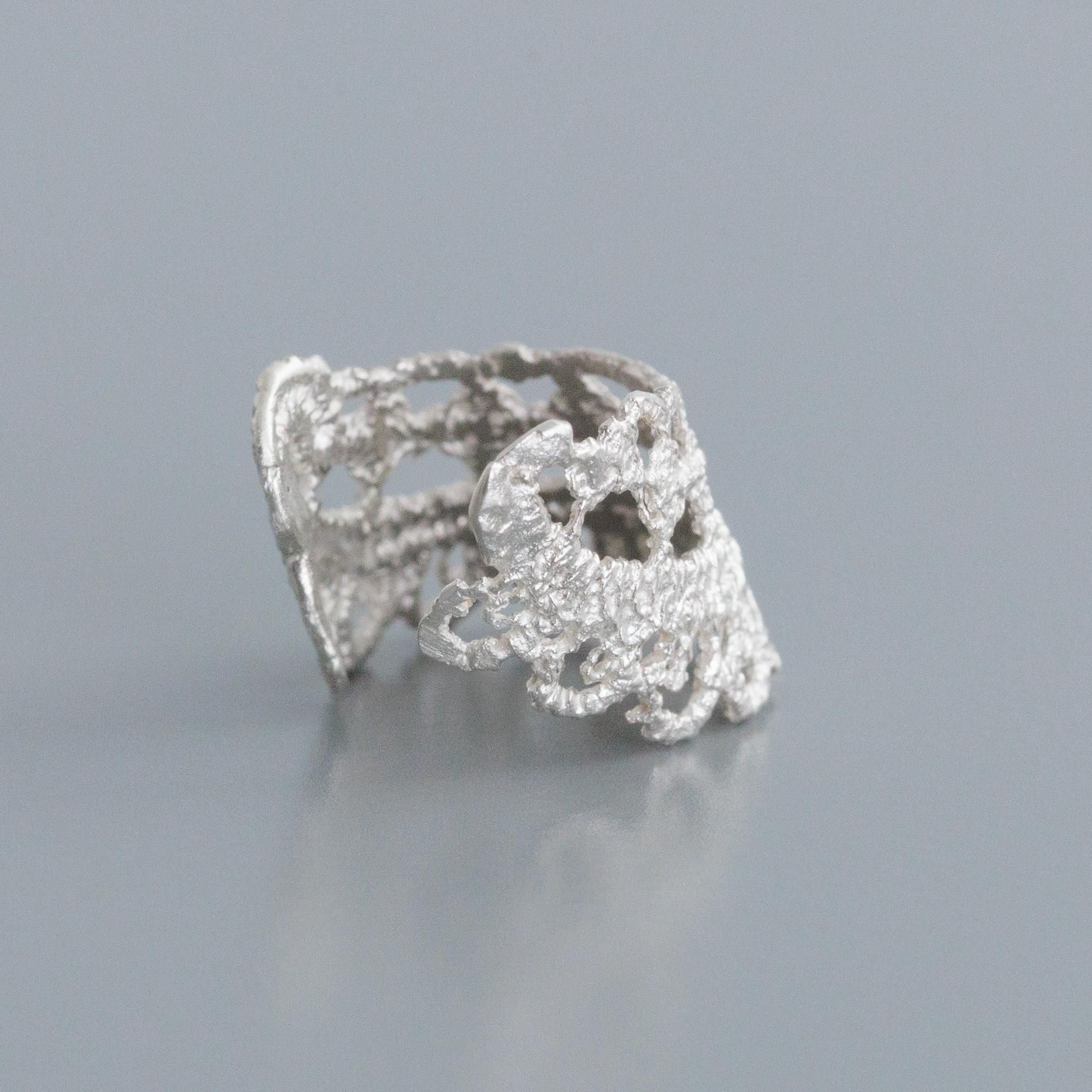 その後さらに何度も磨き上げることで、レースそのものの質感を金属で表現しています。