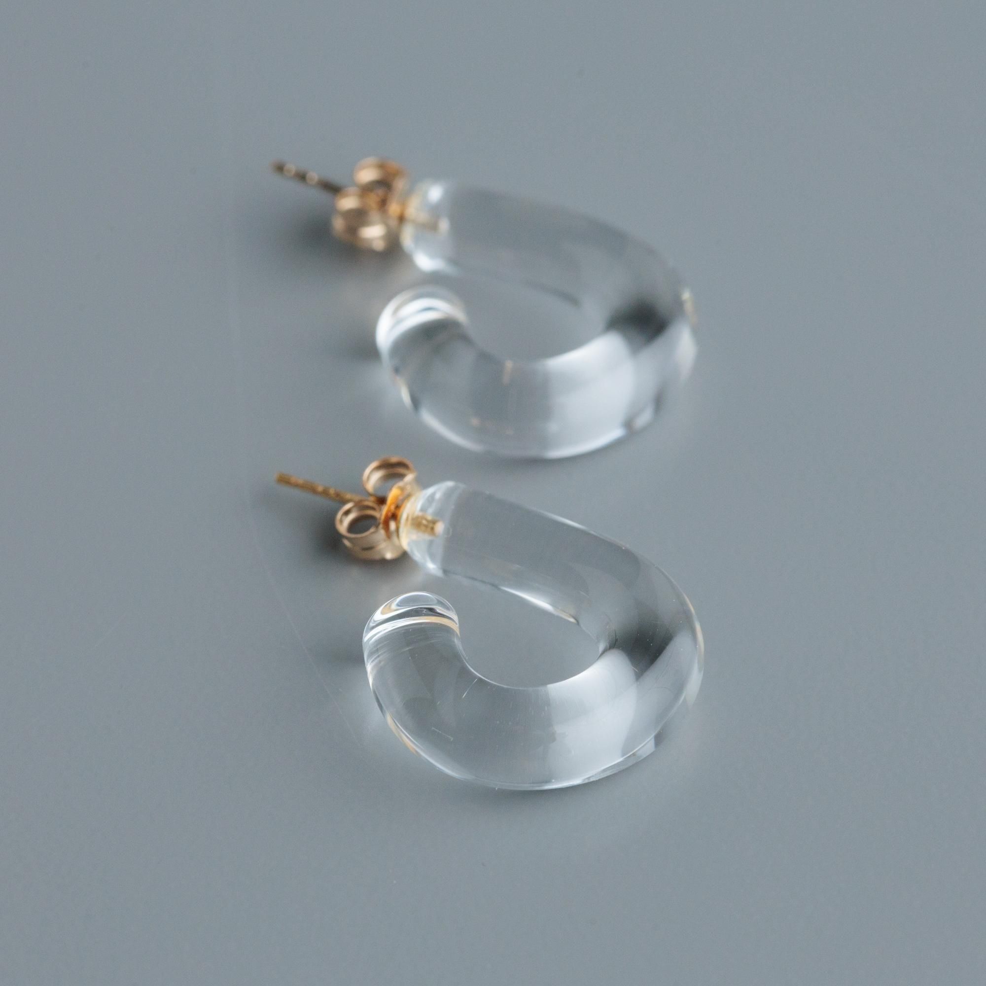 無垢な透明ガラスを用いた装身具は、空の青や木々の緑、風景の色や光をやわらかく取り込み、まるで景色と共鳴するようにそっと反射します。