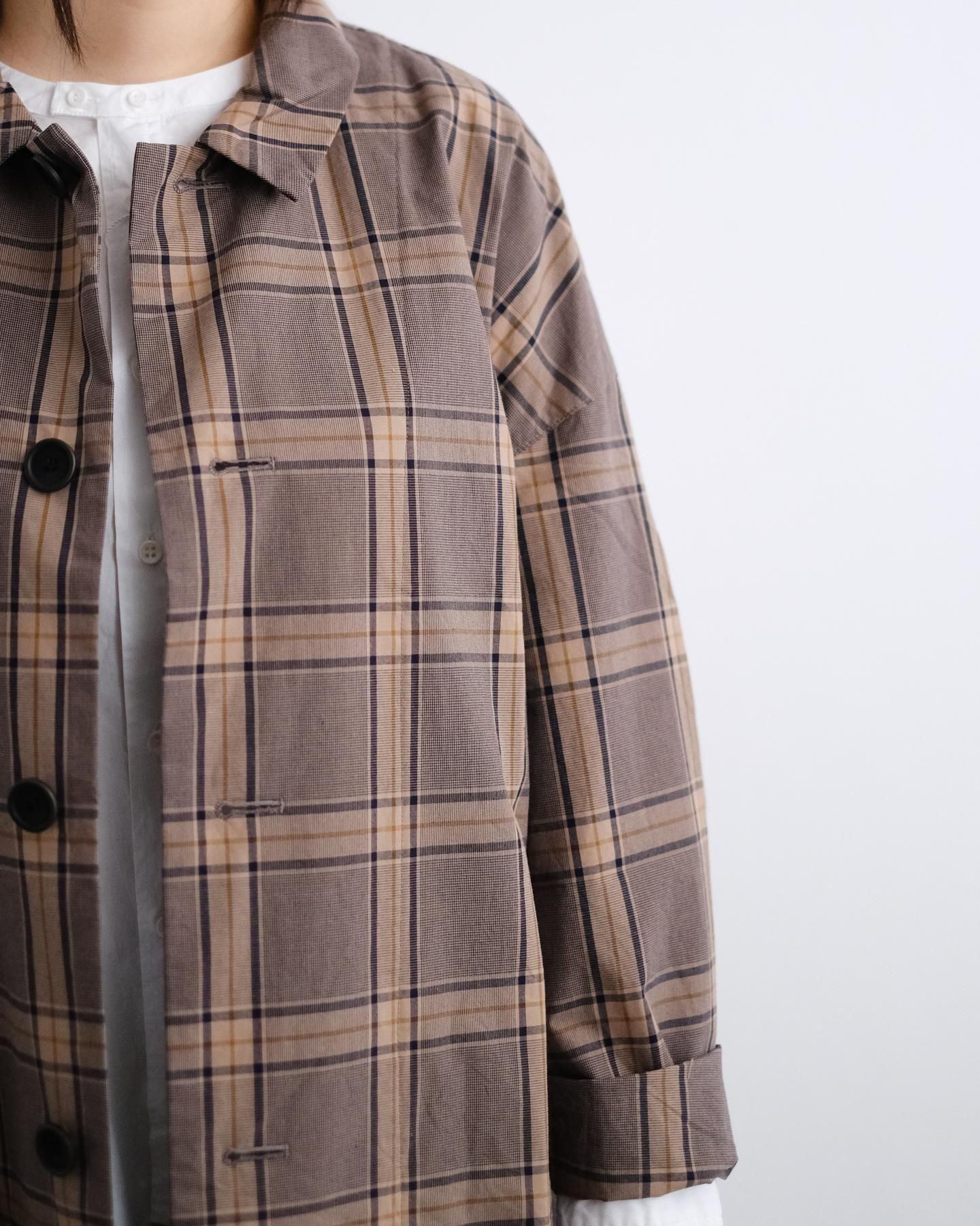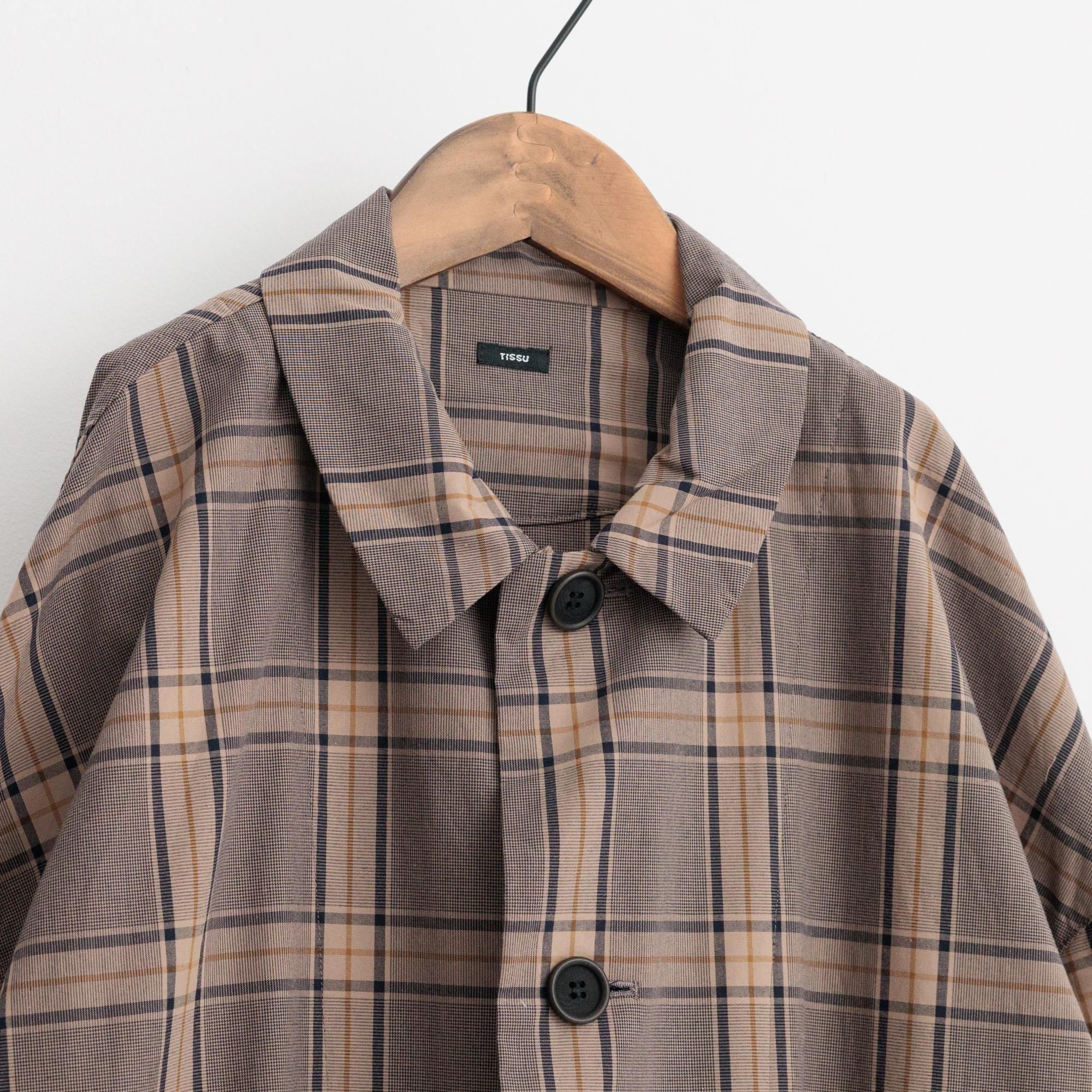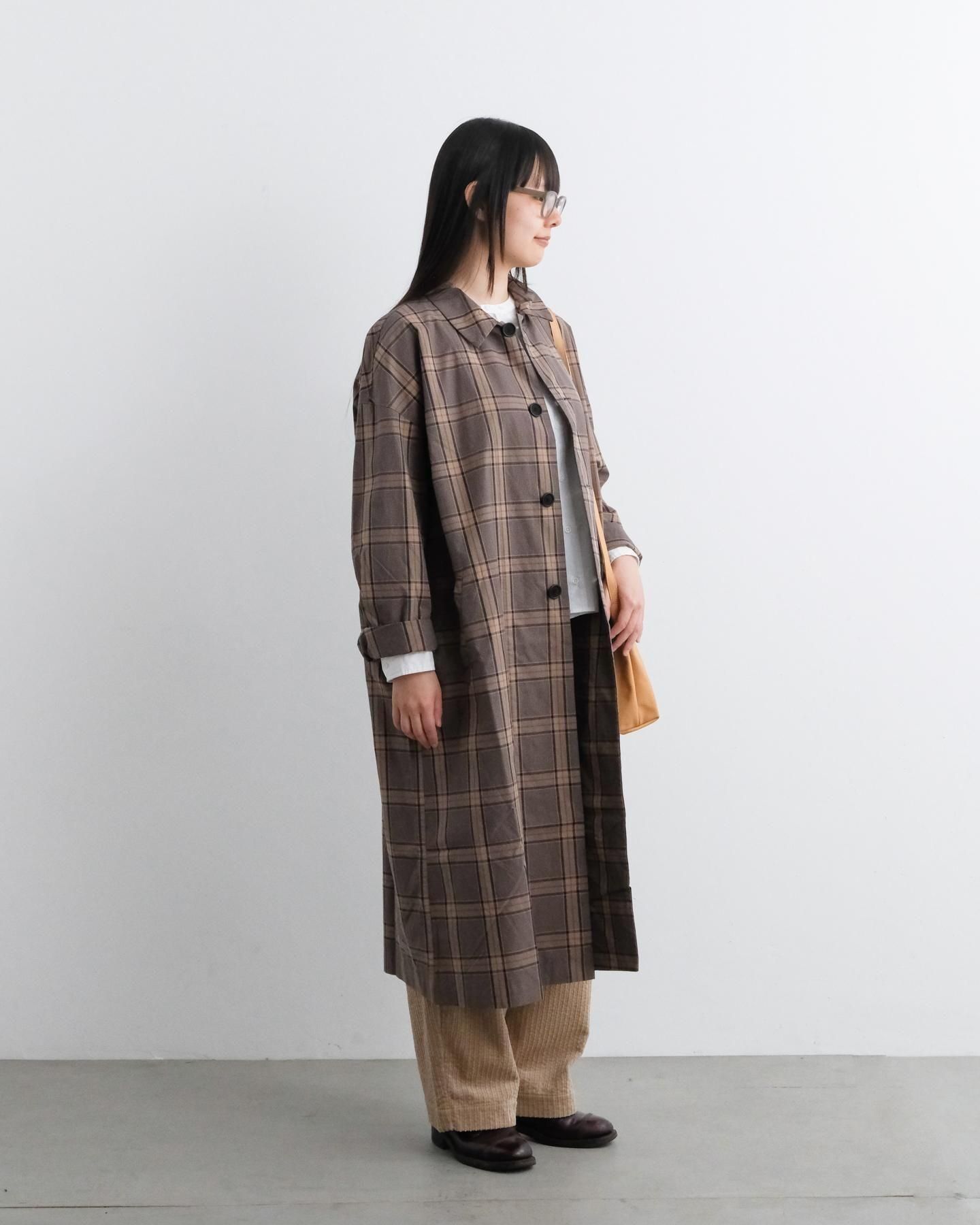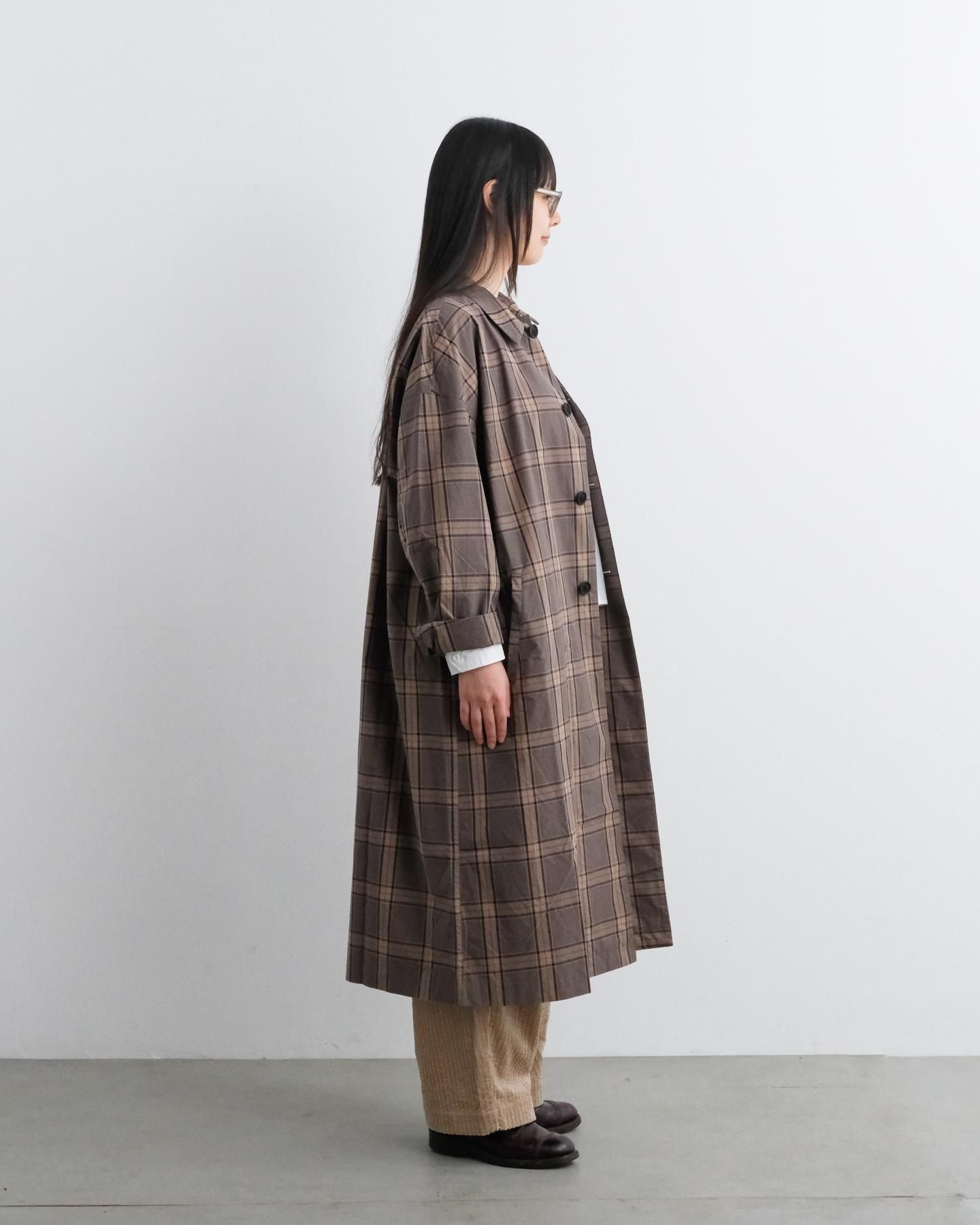 グレンチェック ステンカラーコート