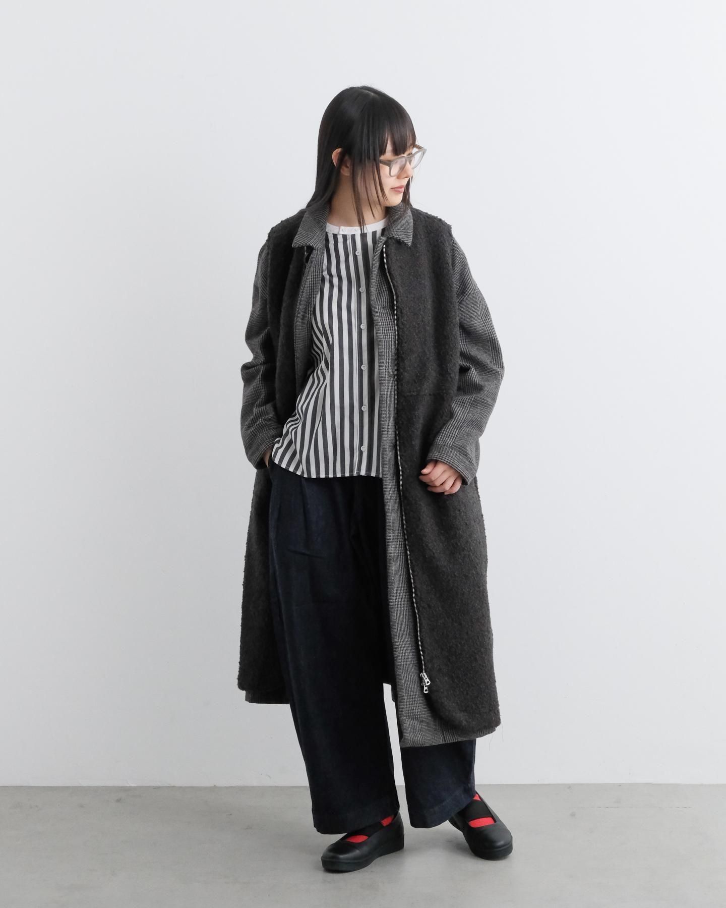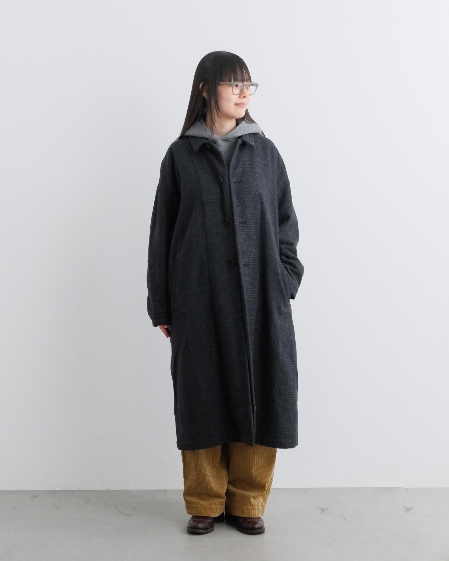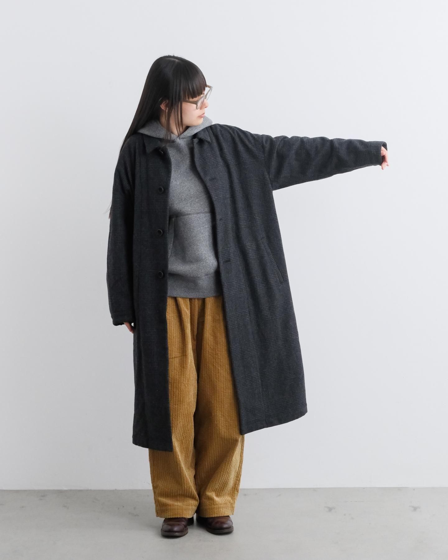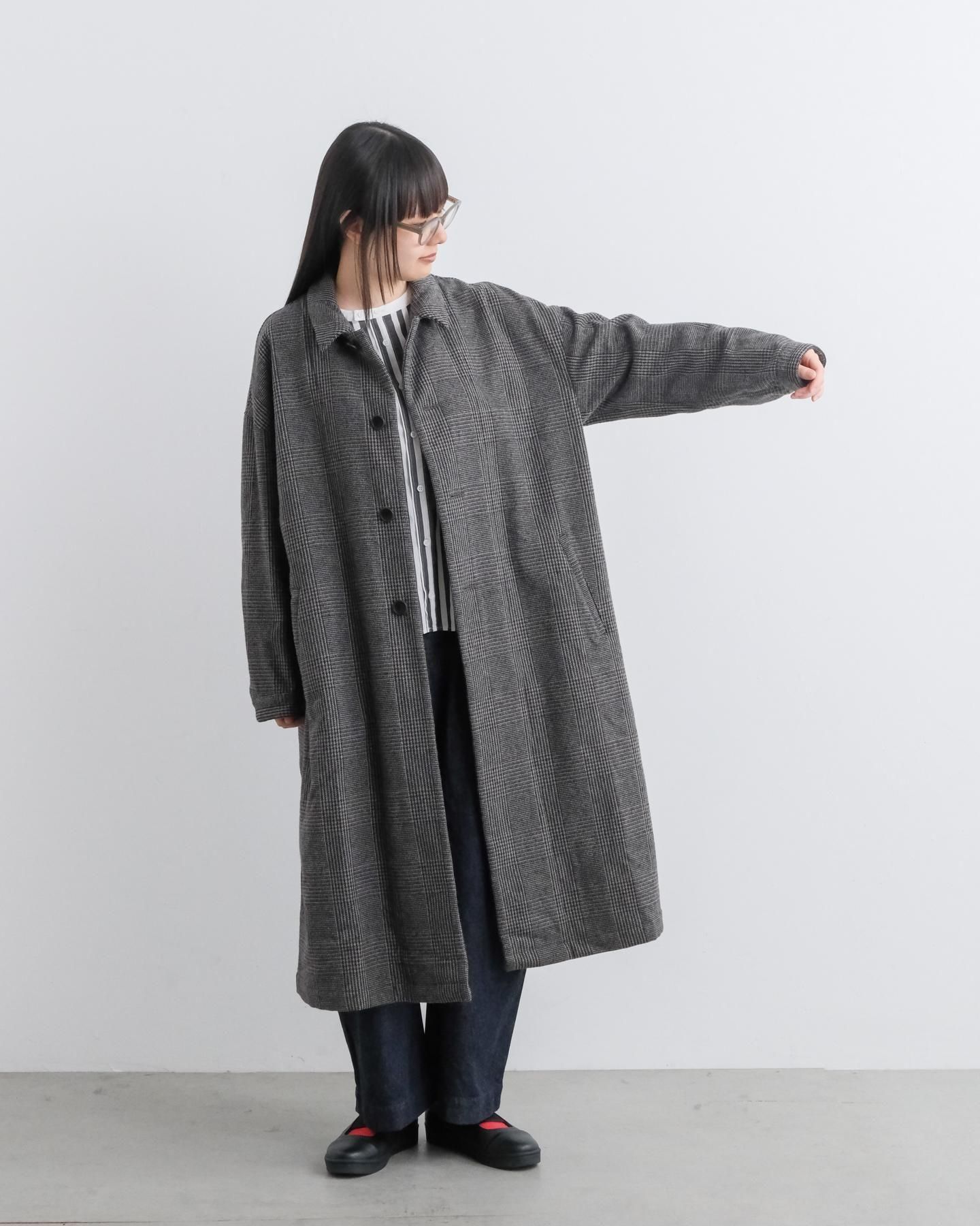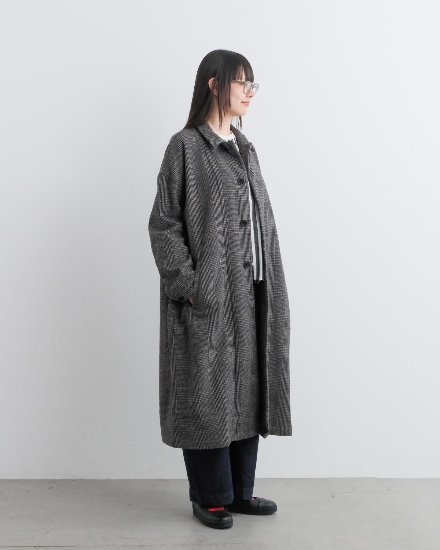 ミニマルなデザインで合わせやすく、コーディネートの主役としても映えるコートです。