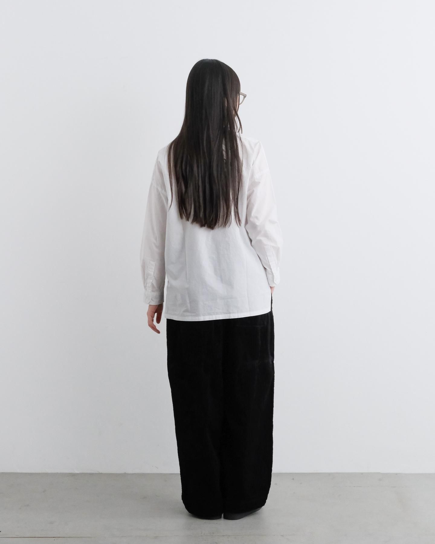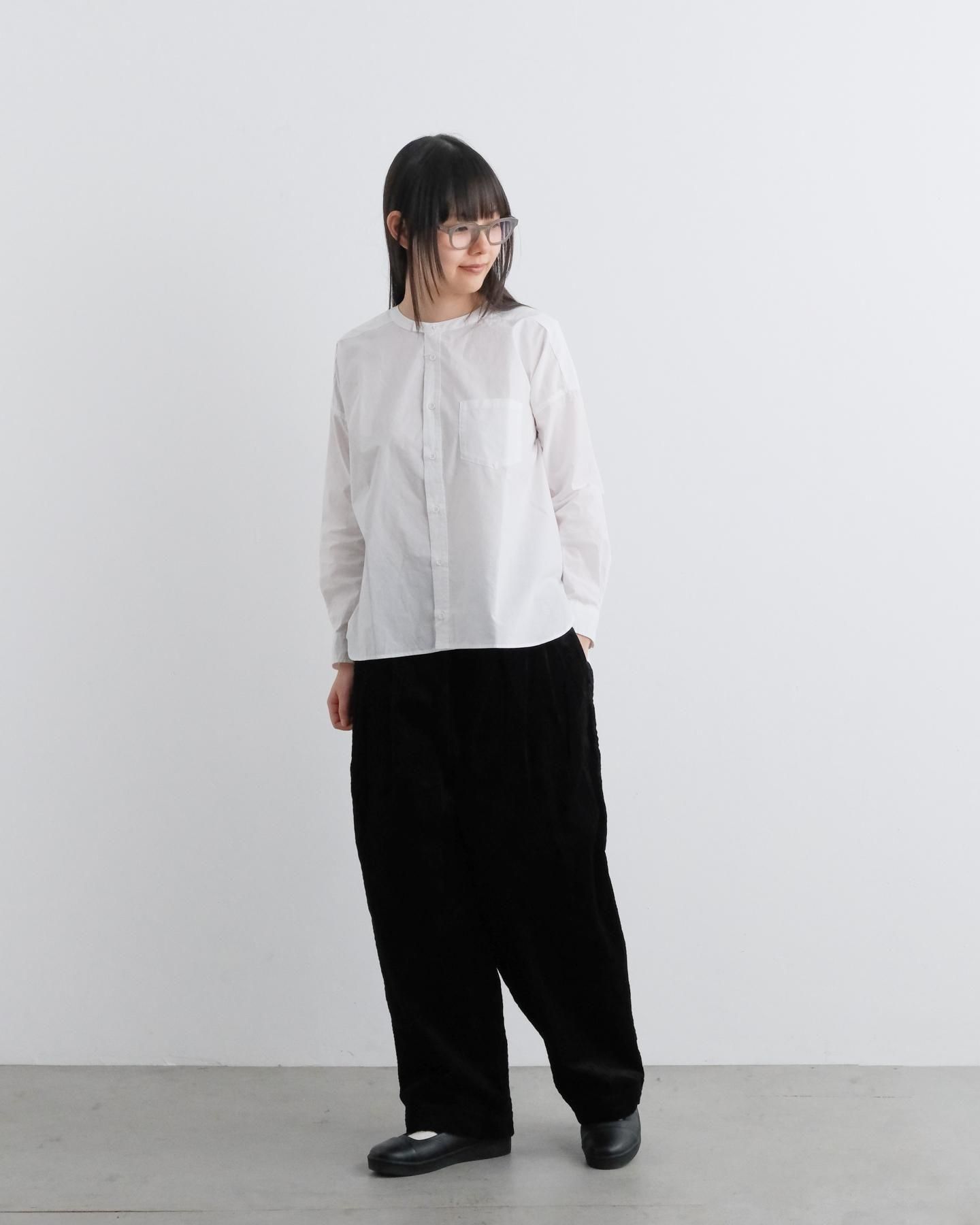 シンプルなトップスでも、タックの立体感がしっかり映えてくれます。
